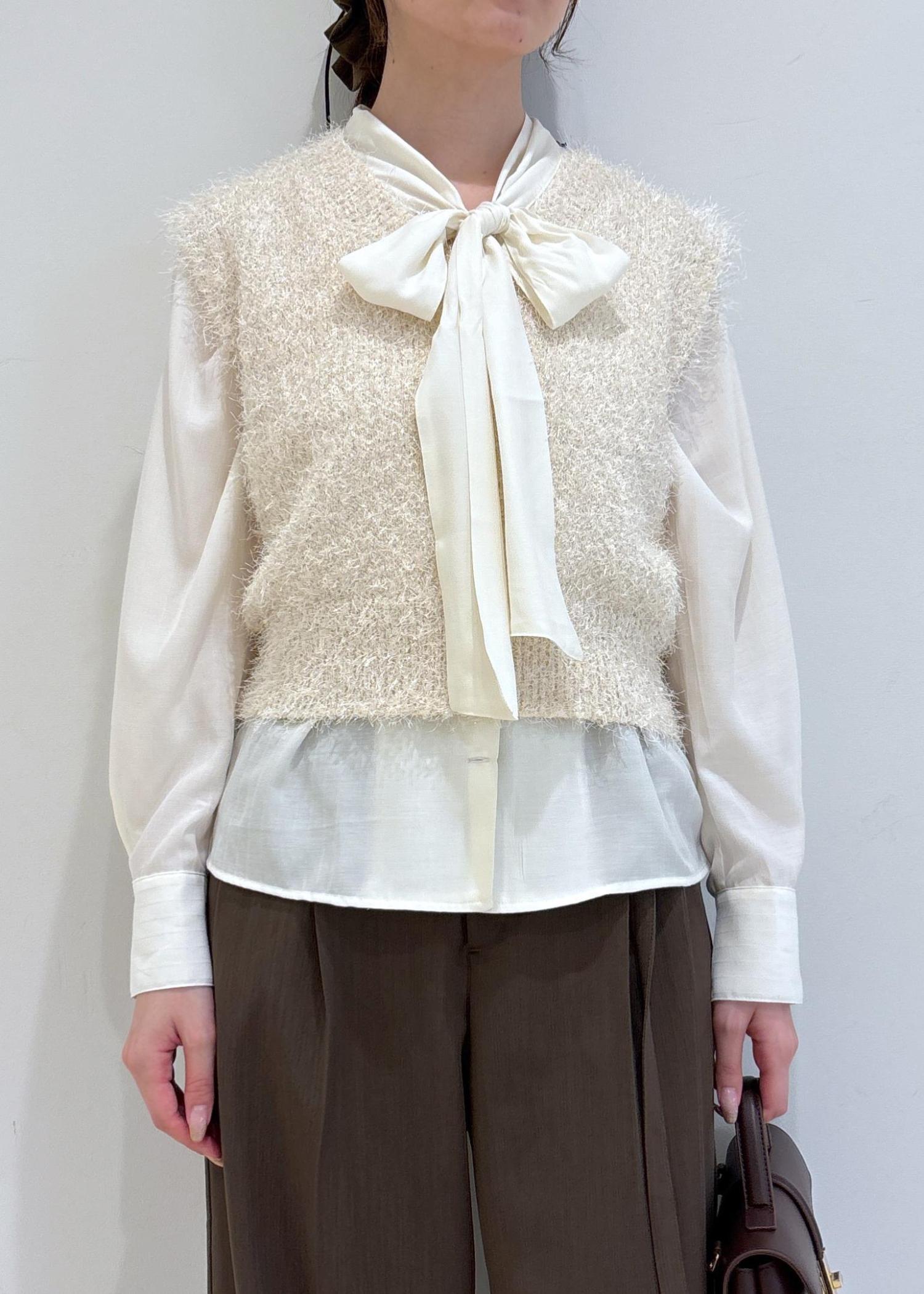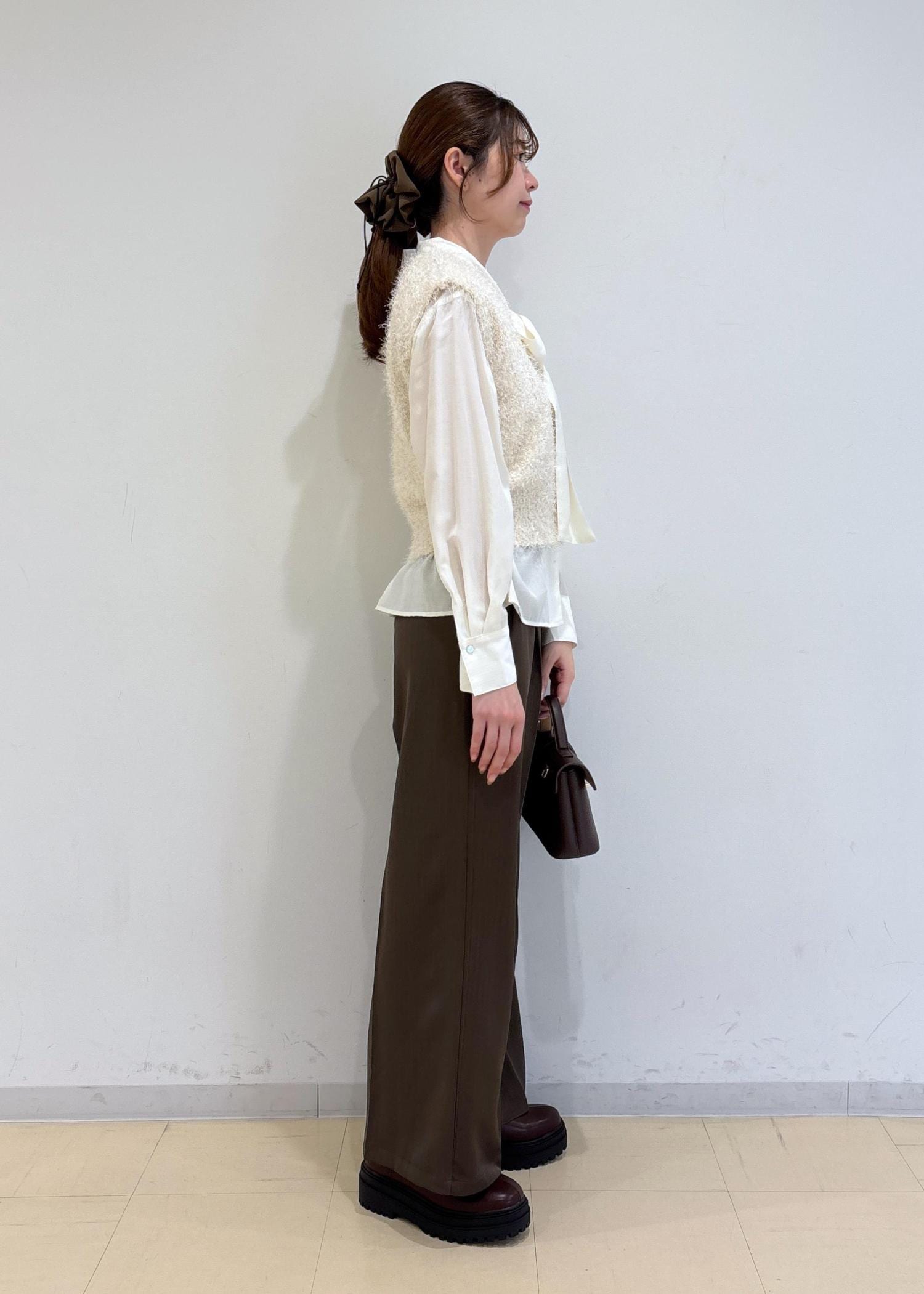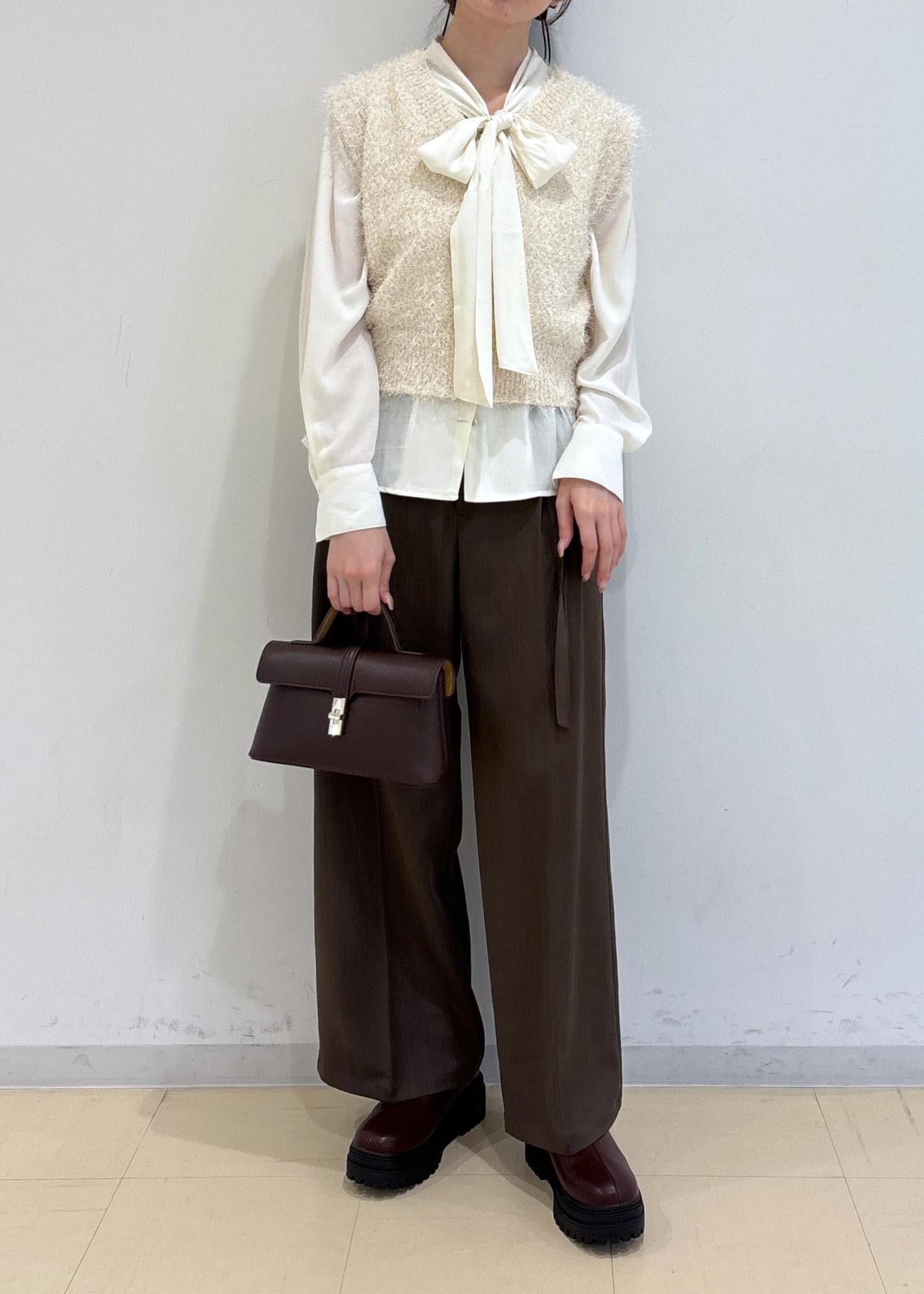 VISランダムピンタックボウタイブラウスホワイト系 / F¥6,589レビュー程よいボリューム感のボウタイがワンポイントで可愛いブラウス。