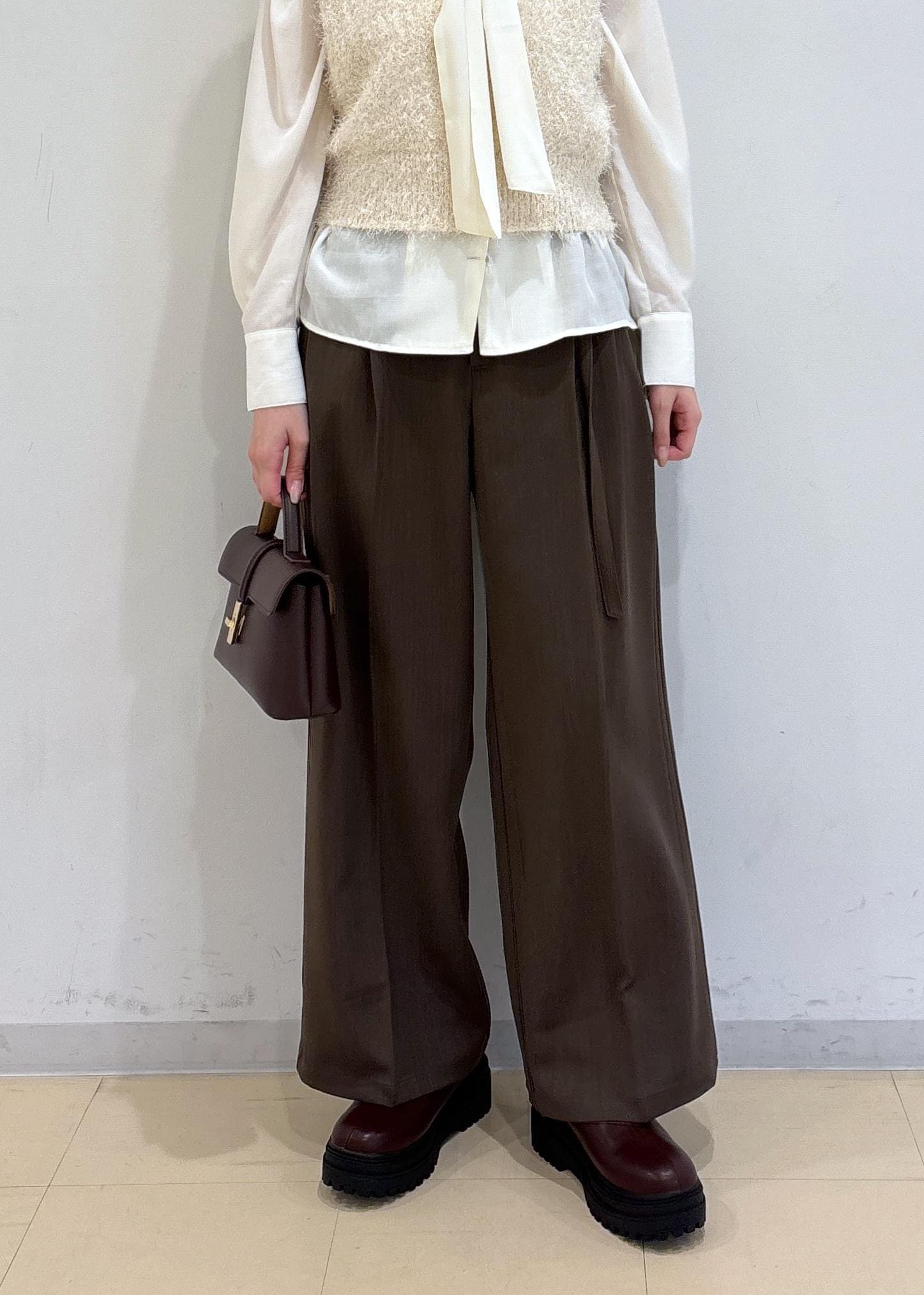 VISベルトディテールタックワイドパンツ/イージーケアブラウン / M¥6,589レビュー163cmでMサイズ着用。さらっとした素材感で履き心地が良かったです。ハイウエストで脚長効果があります!
