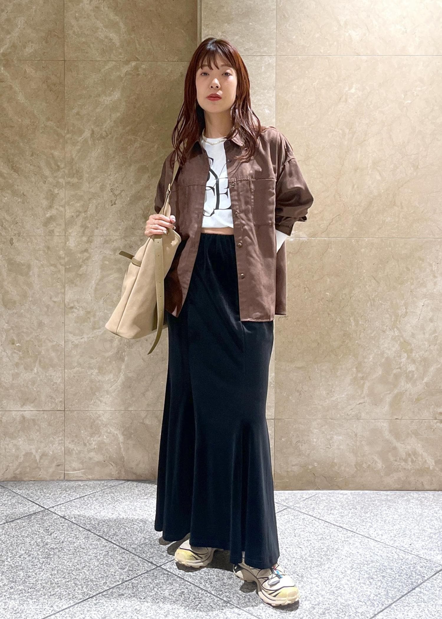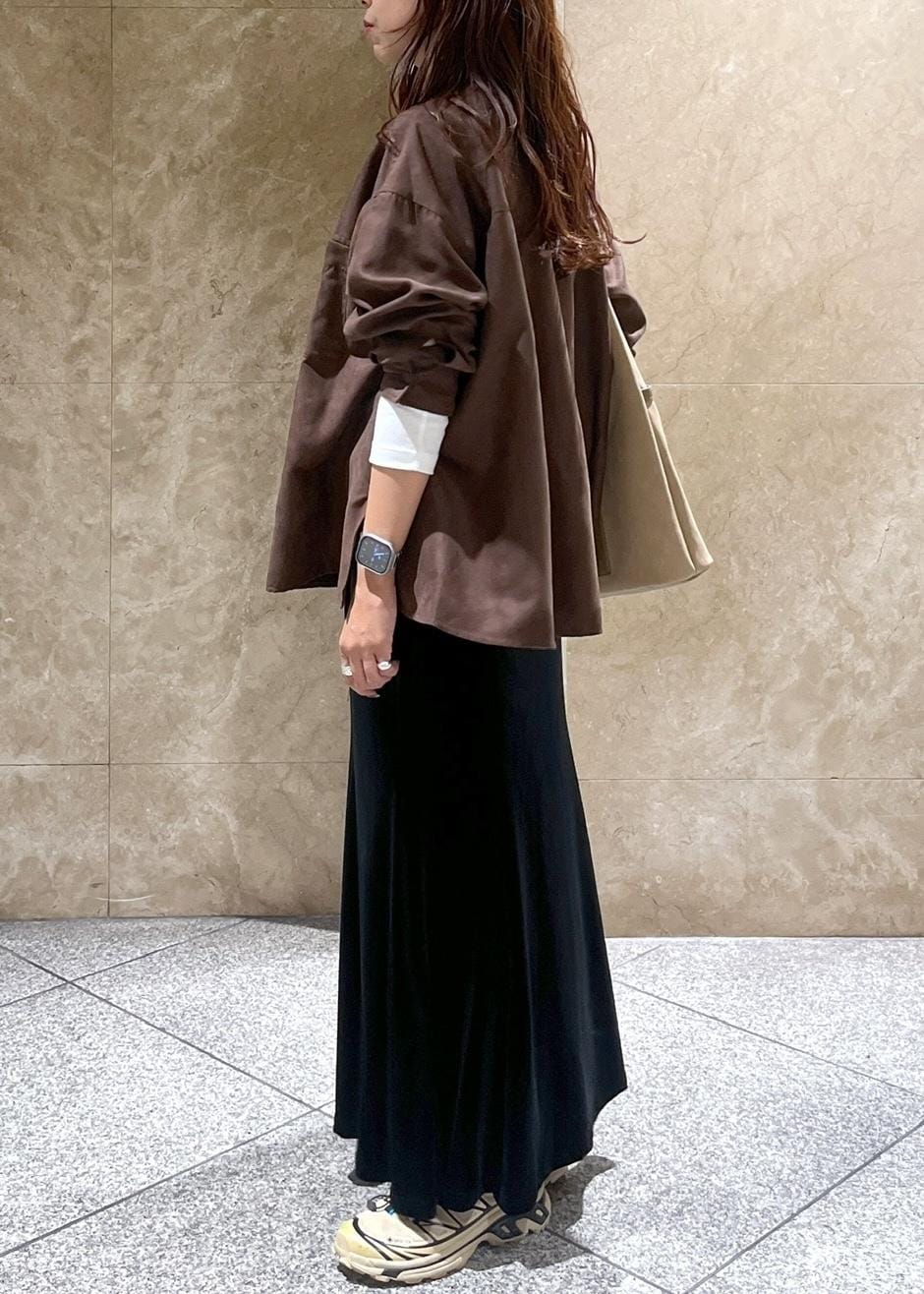 すっきりしているので、一枚での着用はもちろん、ニットの下になど、レイヤードスタイルにも重宝しそう、、!
