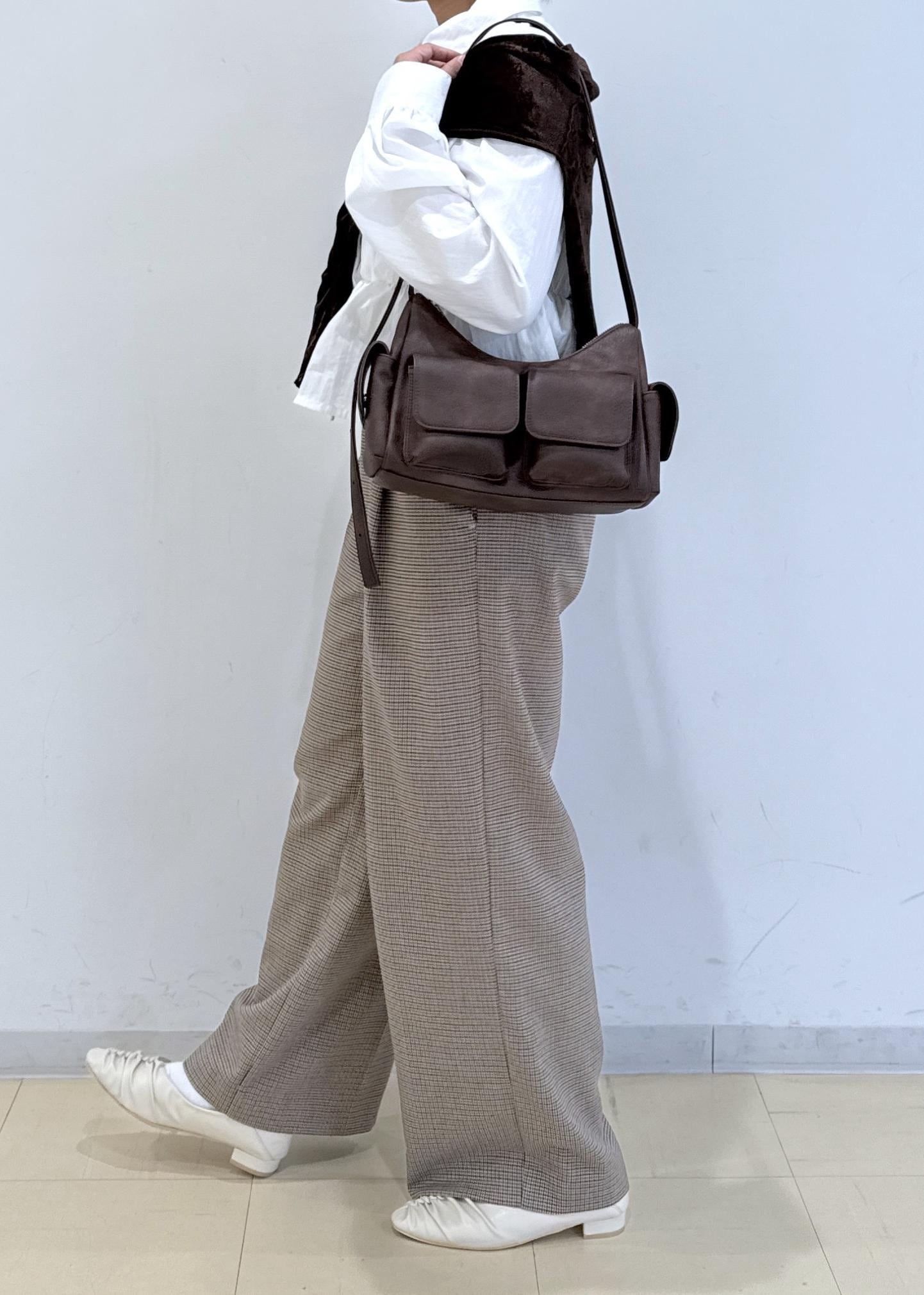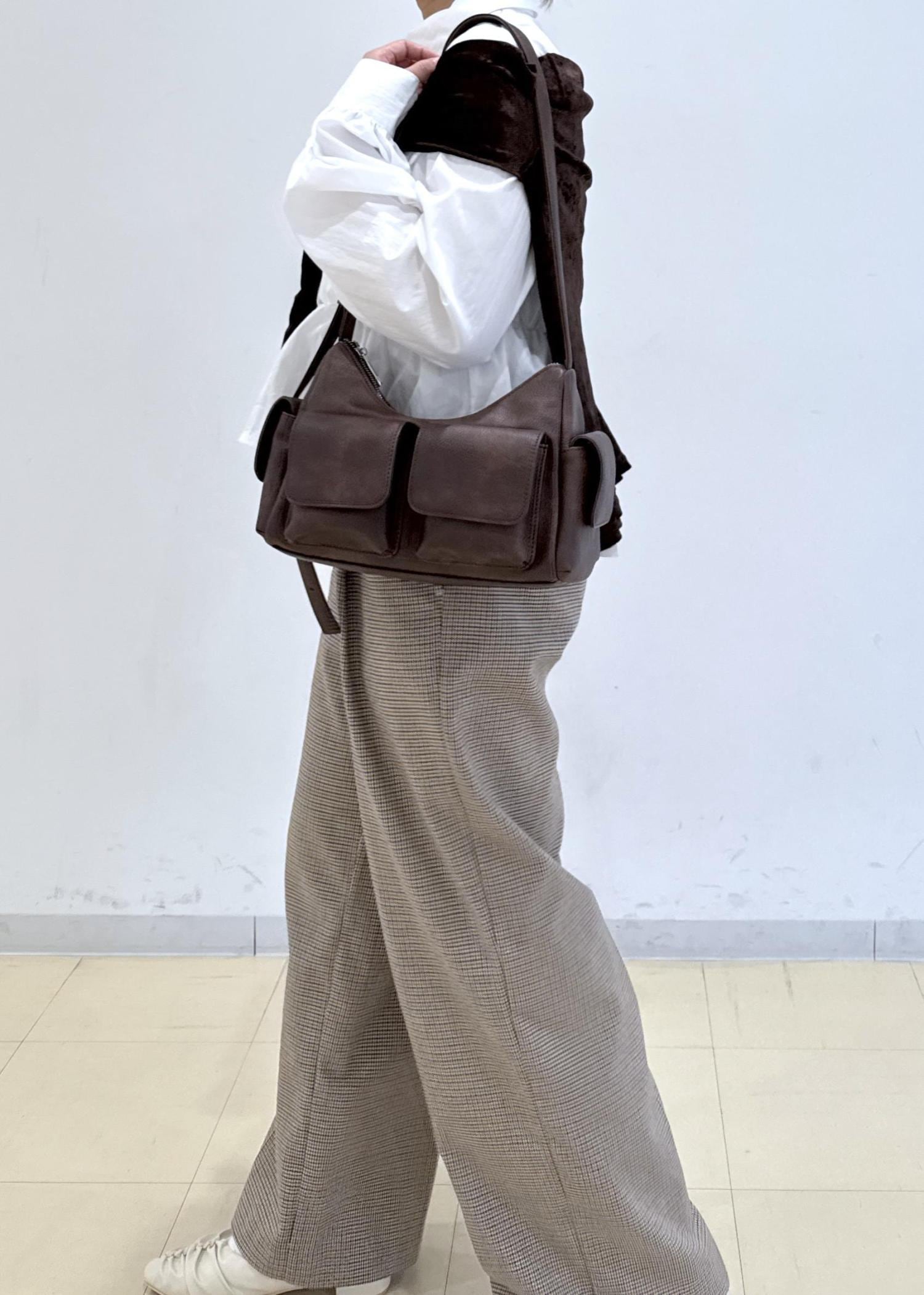 【2WAY】ビンテージ合皮クアトロポケットショルダーバッグ