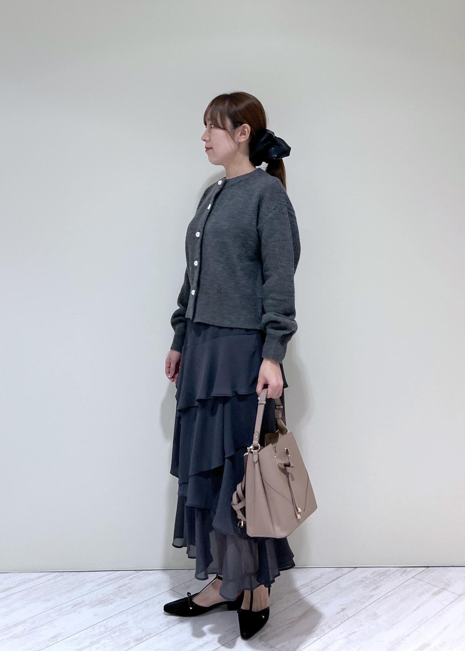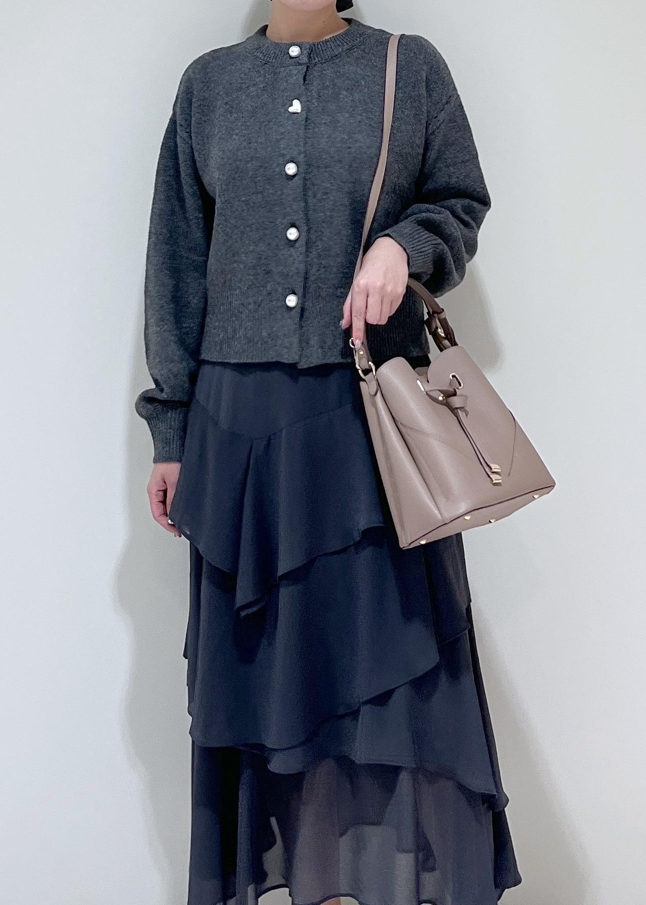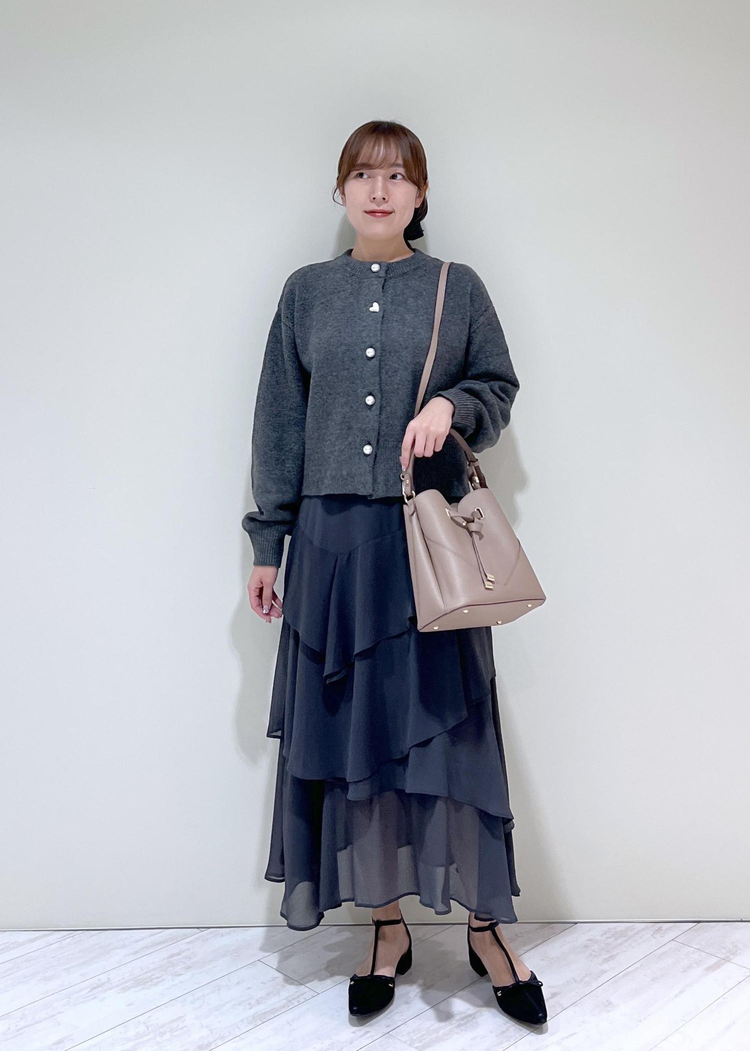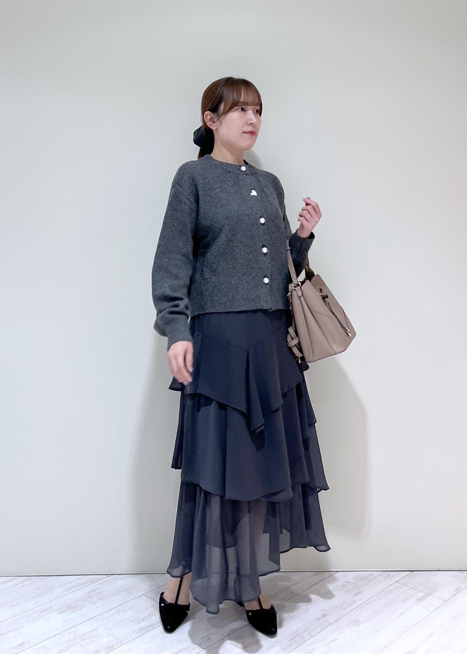 VISハートアソートパール釦ラメミックスカーディガン/イージーケア・一部WEB限定カラーチャコール / F¥5,489レビューウエストはゴムですが、前にはギャザーがなくすっきり着られます!身長164cmでくるぶし上の着丈ですが、膝下に透け感があり重たくなりすぎないです◎