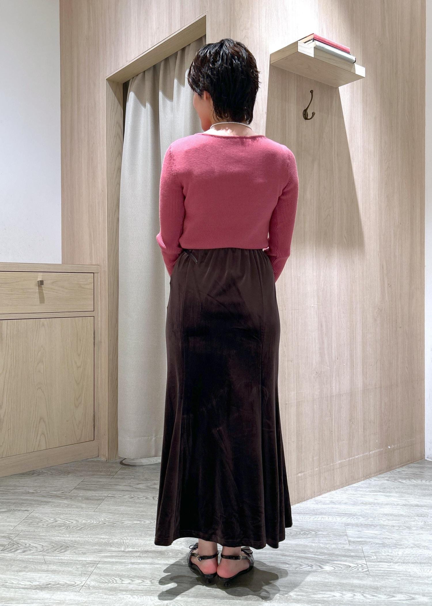 VISベロアナロースカートダークブラウン / S¥6,589レビュー身長155cm、Sサイズ着用で足首が見える丈感です。