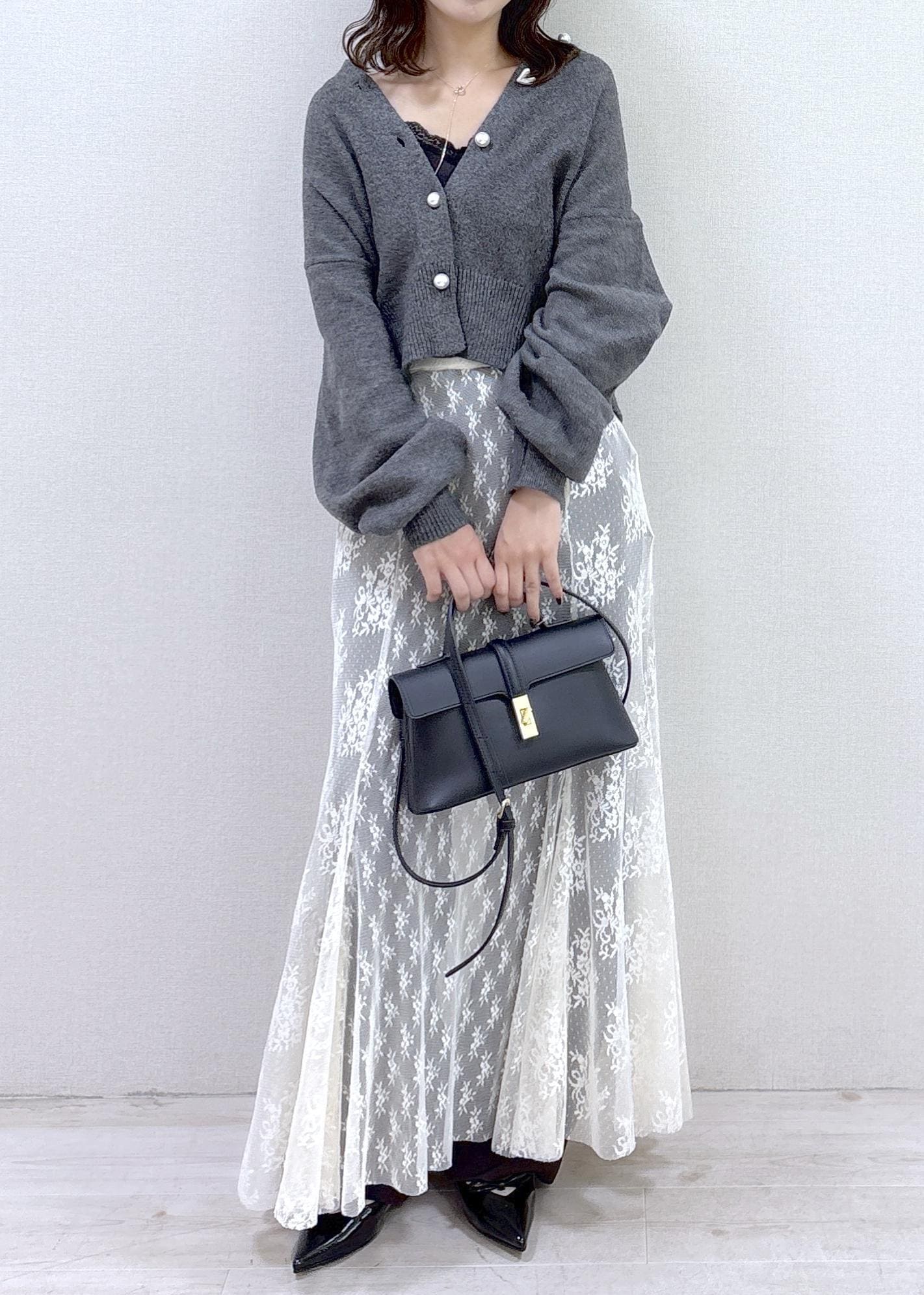 気温に合わせて調節のきくカーデが重宝する季節になってきたので、カーディガンを主役にしたフェミニンコーデを組んでみました☺︎
