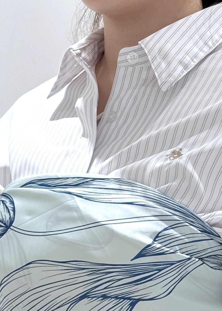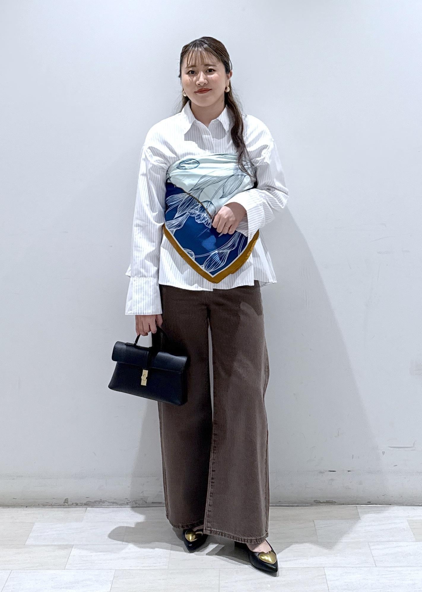 一見シンプルなデザインなシャツでも、小物使いで一段と見え方が変わるのでオススメですよ