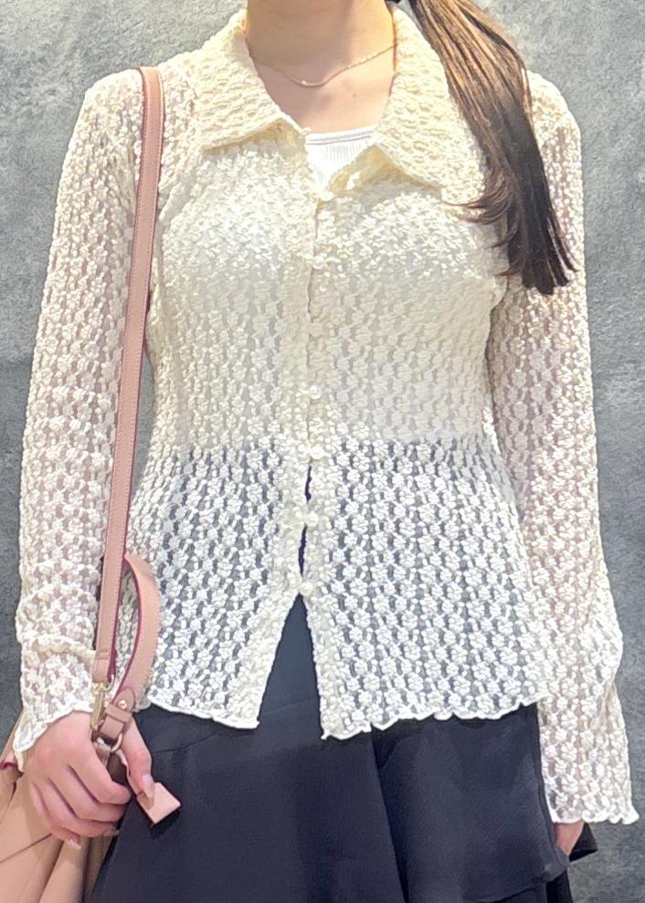 VISレースポロ襟カーディガンキナリ / F¥3,842レビュー身長155cmでおしりが隠れる丈です!