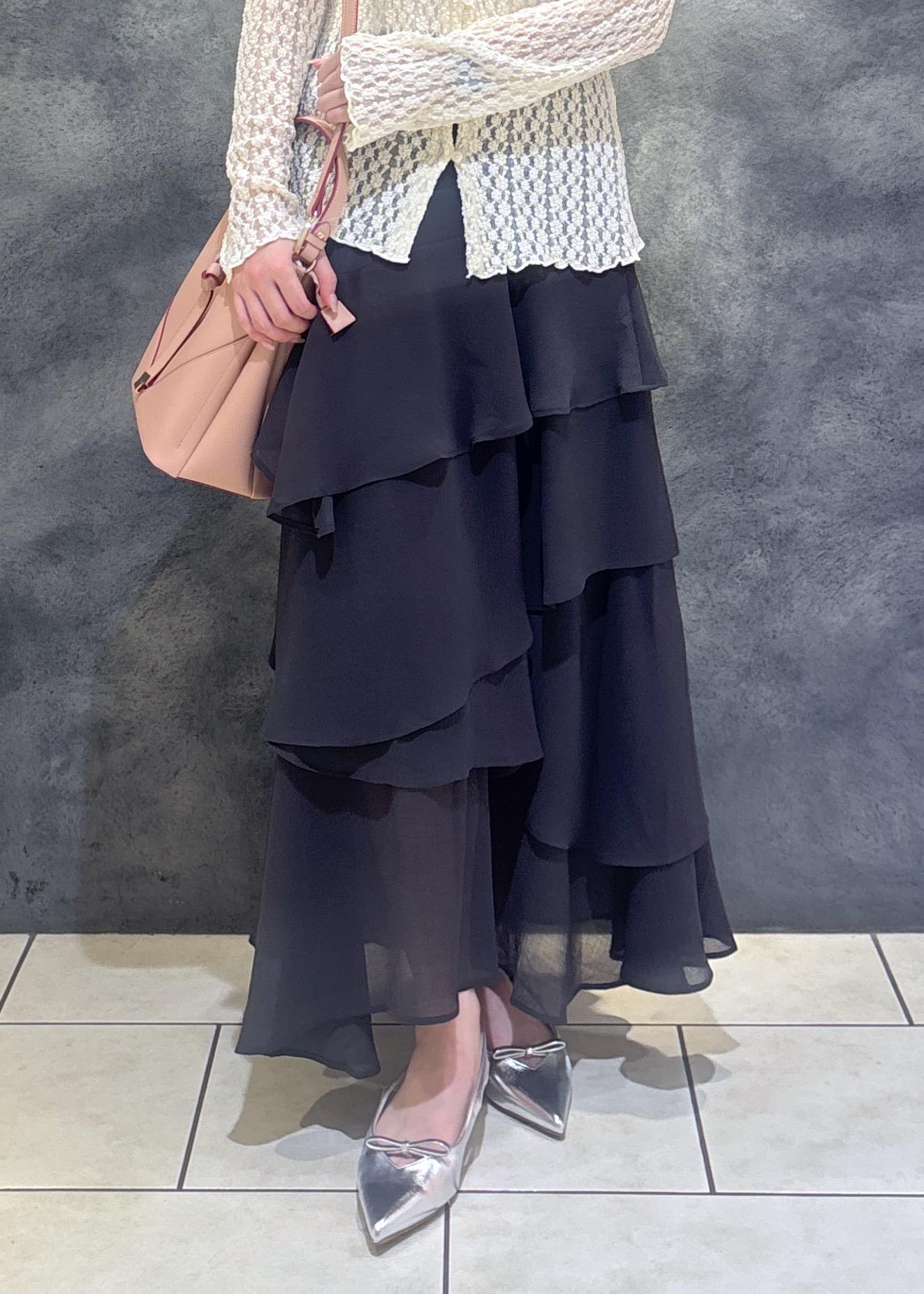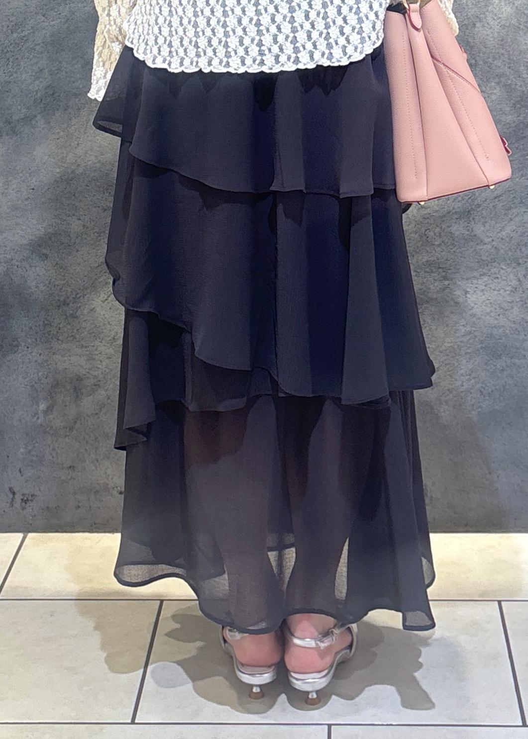 VIS花柄アソート楊柳ティアードスカートチャコール / F¥4,613レビュー155cmでかかとにかかる長さです。