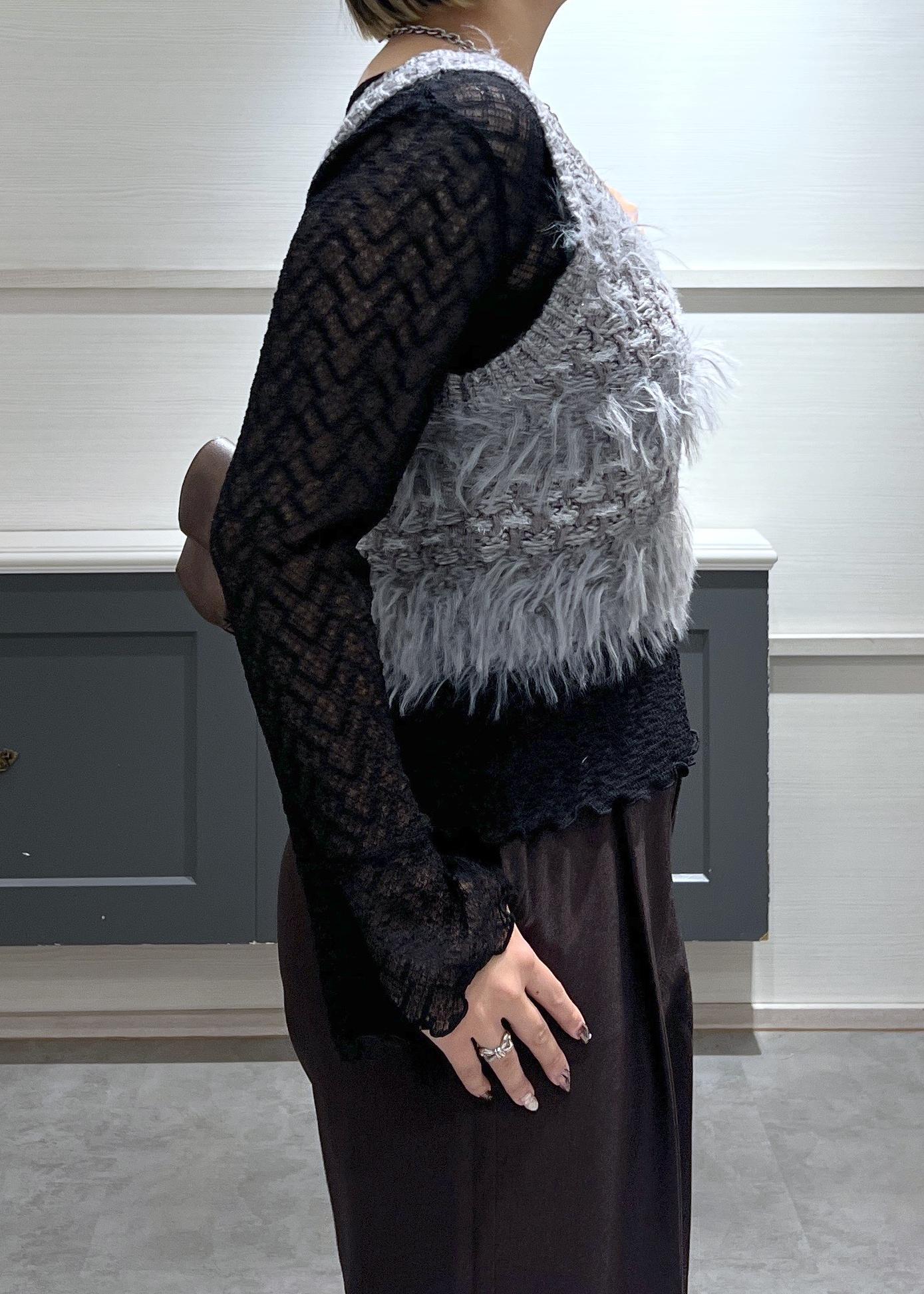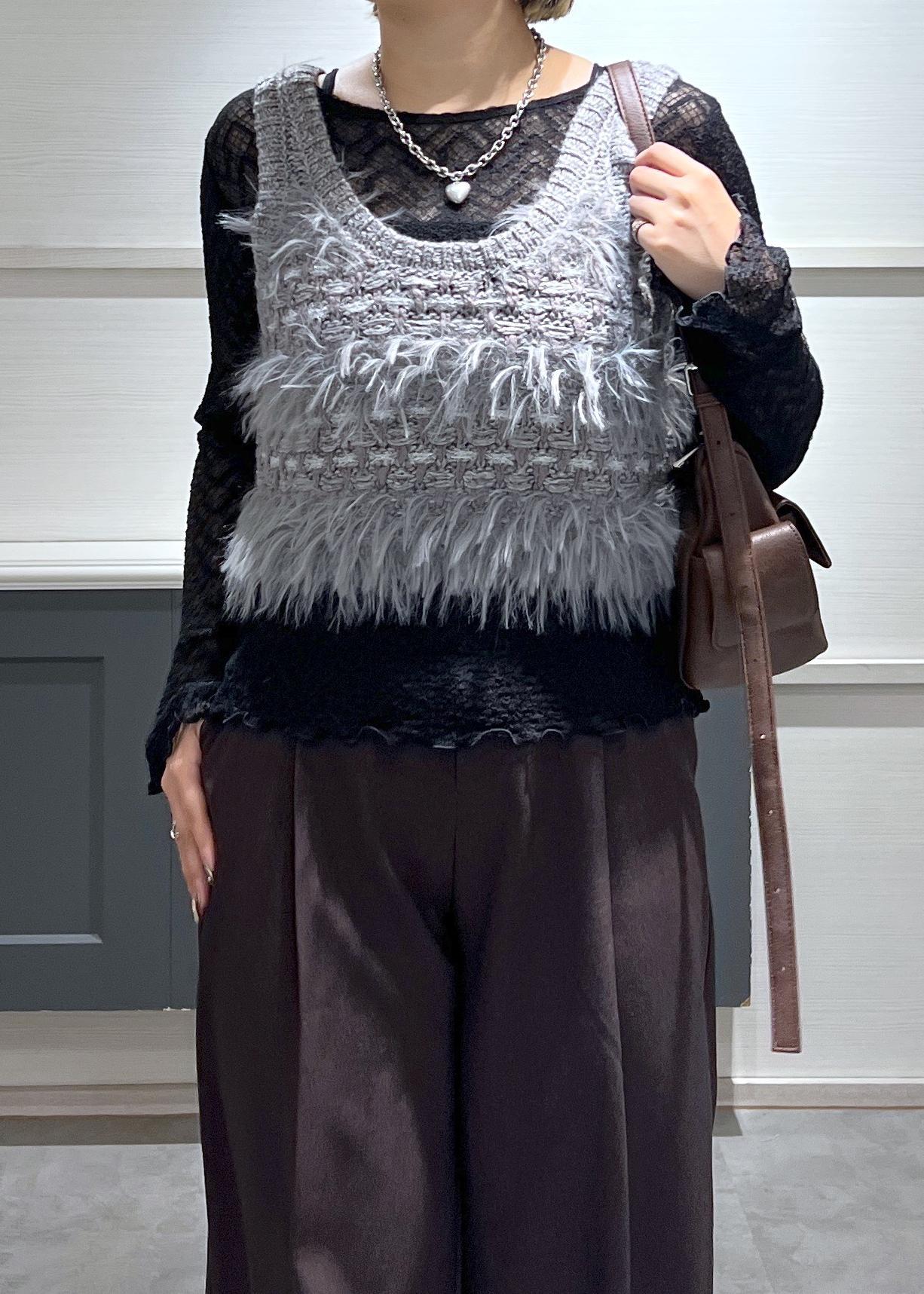 VISフェザーツイードニットビスチェ/2WAYグレー / F¥5,489レビューウエストくらいまでの長さです!