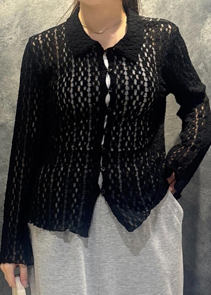 VISレースポロ襟カーディガンブラック / F¥3,842レビュー身長155cmでおしりが隠れる丈です!