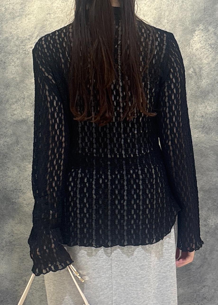 体のラインがほどよく出る+袖が長めなので、女性らしい印象になります◎ -
