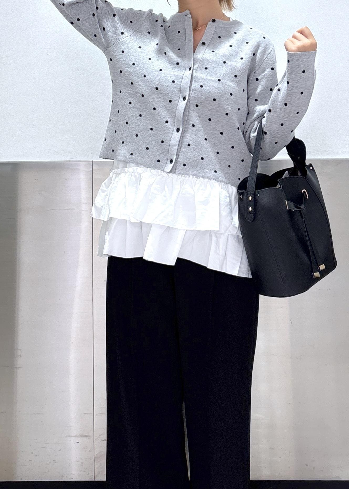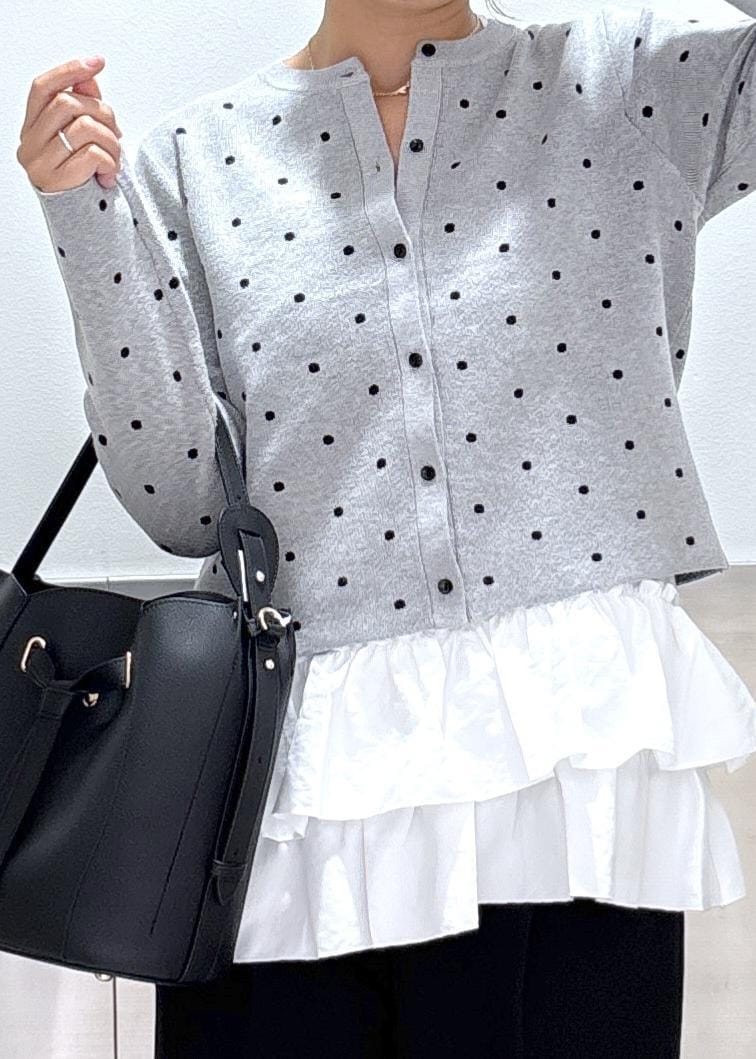 VISドットジャガードカーディガングレー系 / F¥5,929レビュー可愛すぎず大人っぽさもあるカーディガンです!コンパクトな丈感でスカートでもパンツでも合わせやすくなっています◎全くチクチクしないニットで着心地がすごく良いです!
