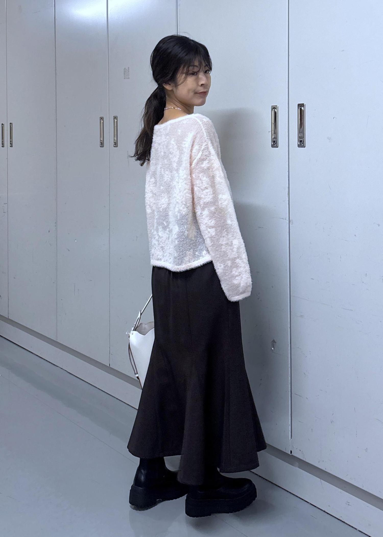 VIS美easyウーリッシュマーメイドスカート/セットアップ対応・イージーケアダークブラウン / S¥6,589レビュー156cm/Sサイズ着用。ウエストは両側詰めてちょうど良かったです◎SSもはけましたが、丈が少し短くSの方が好みでした。素材は光沢感があり、柔らかく透け感もない厚みです。洗濯機洗いOKが嬉しいです♪