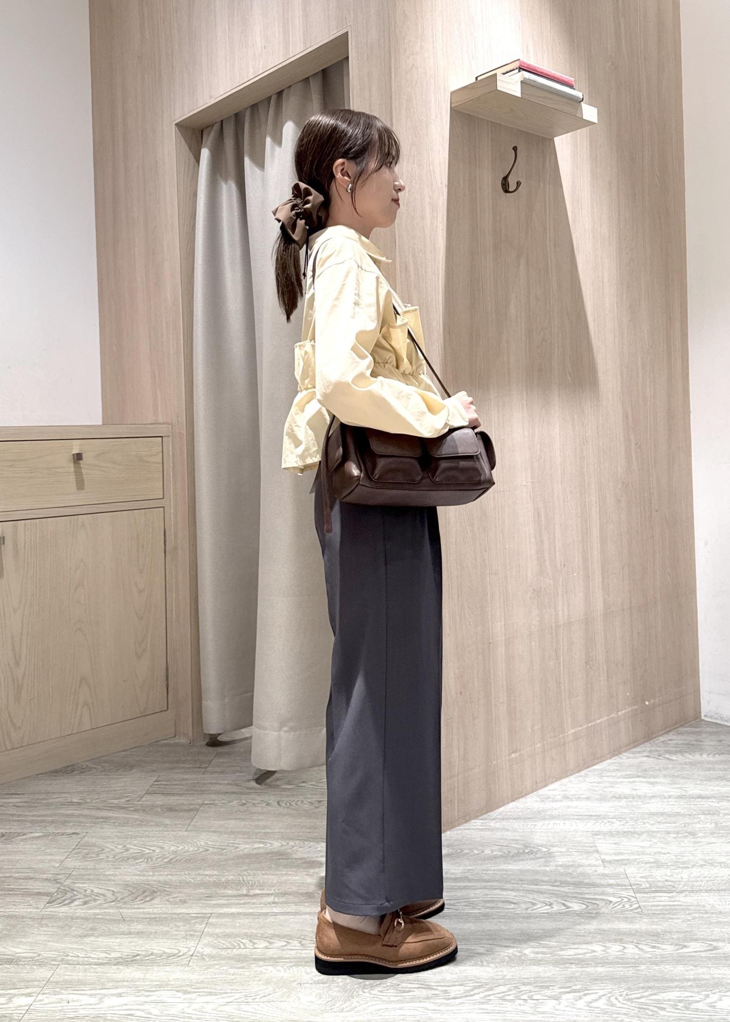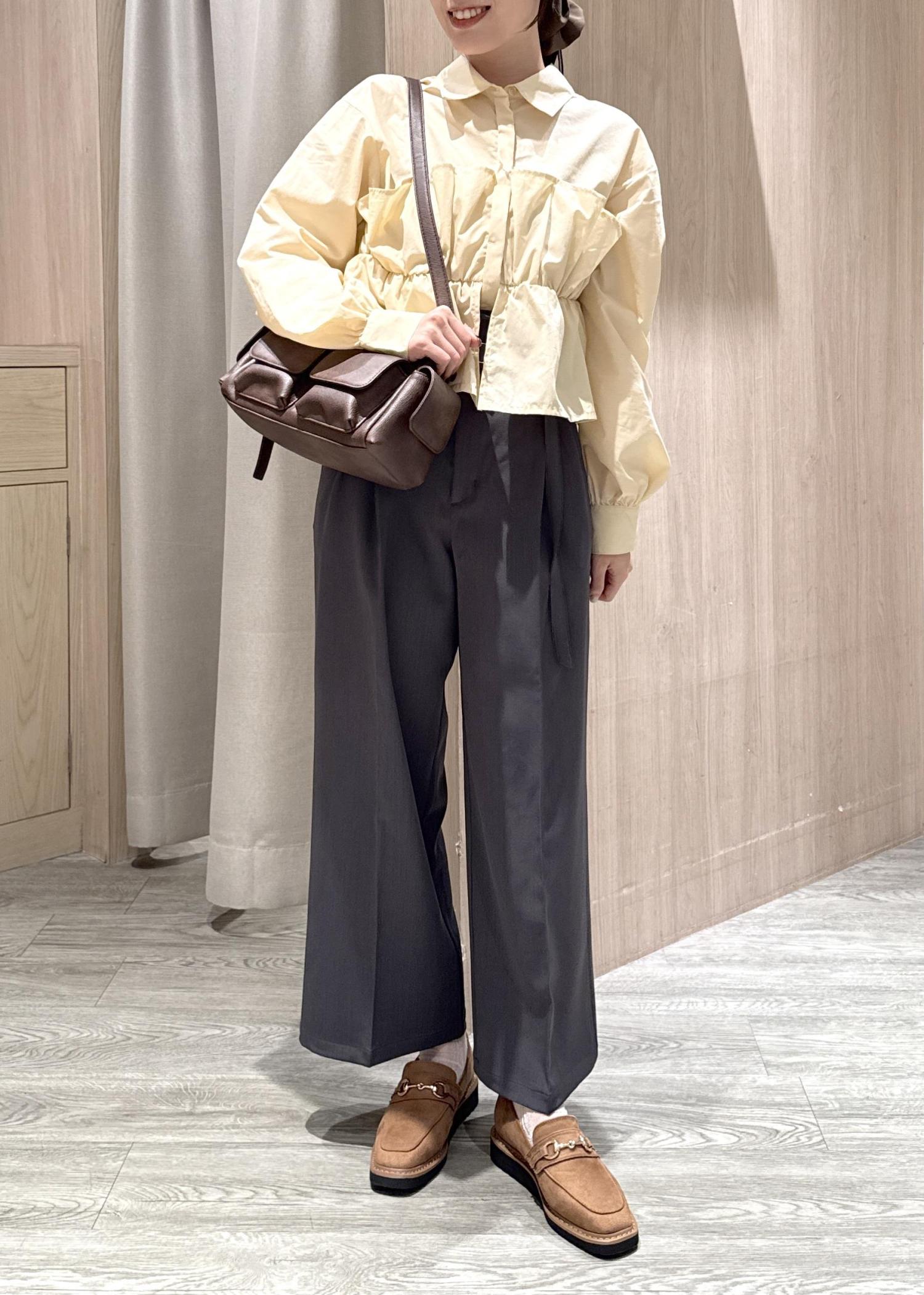 秋に絶対にしたい、イエロー(クリーム)× グレー × ブラウンの組み合わせでコーディネートをしました!