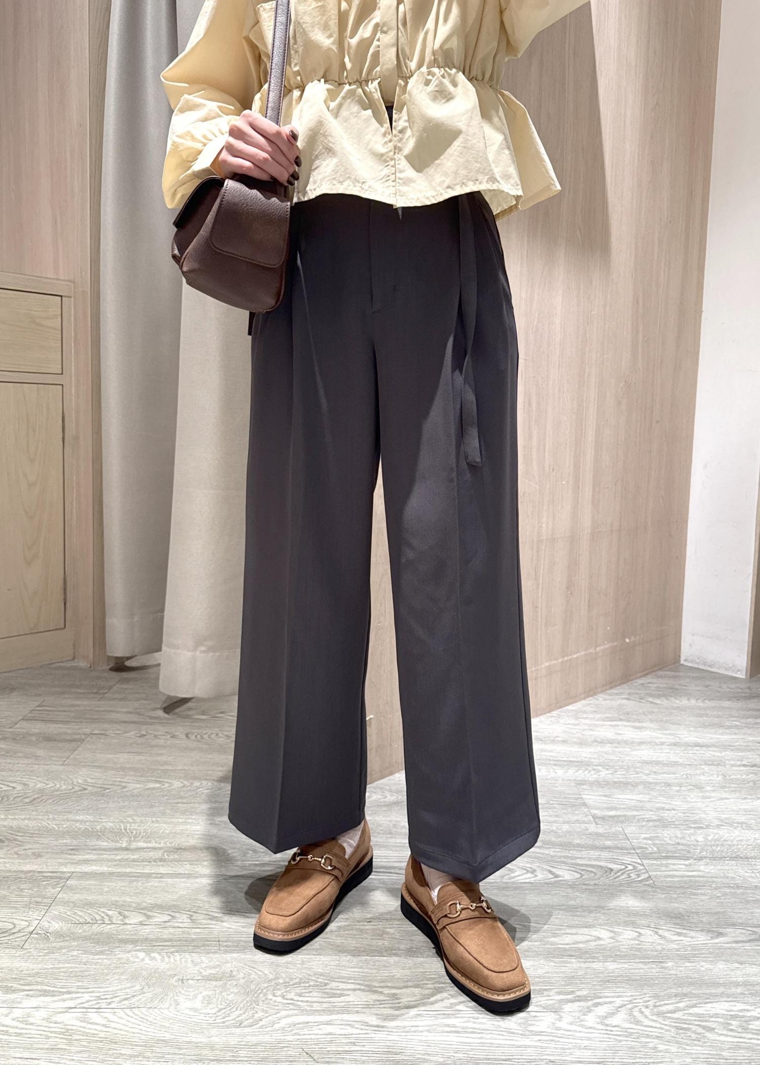 くるぶしが隠れる丈感でした!ハイウェストで、タックも入っているため、かなり脚長に見せてくれます!!ベルト付きでシンプル過ぎないデザインなのも推しポイントです!♡