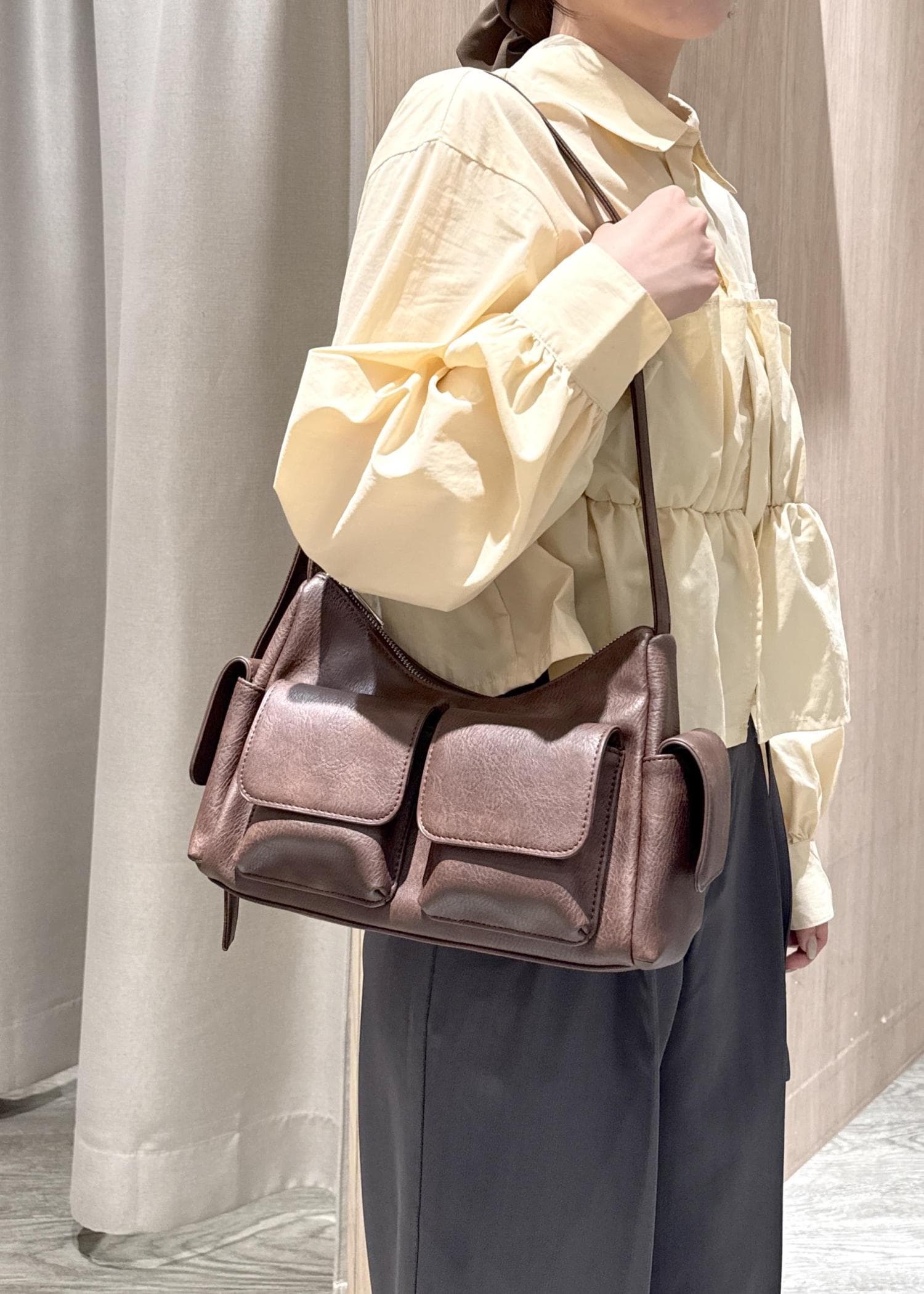 【2WAY】ビンテージ合皮クアトロポケットショルダーバッグ