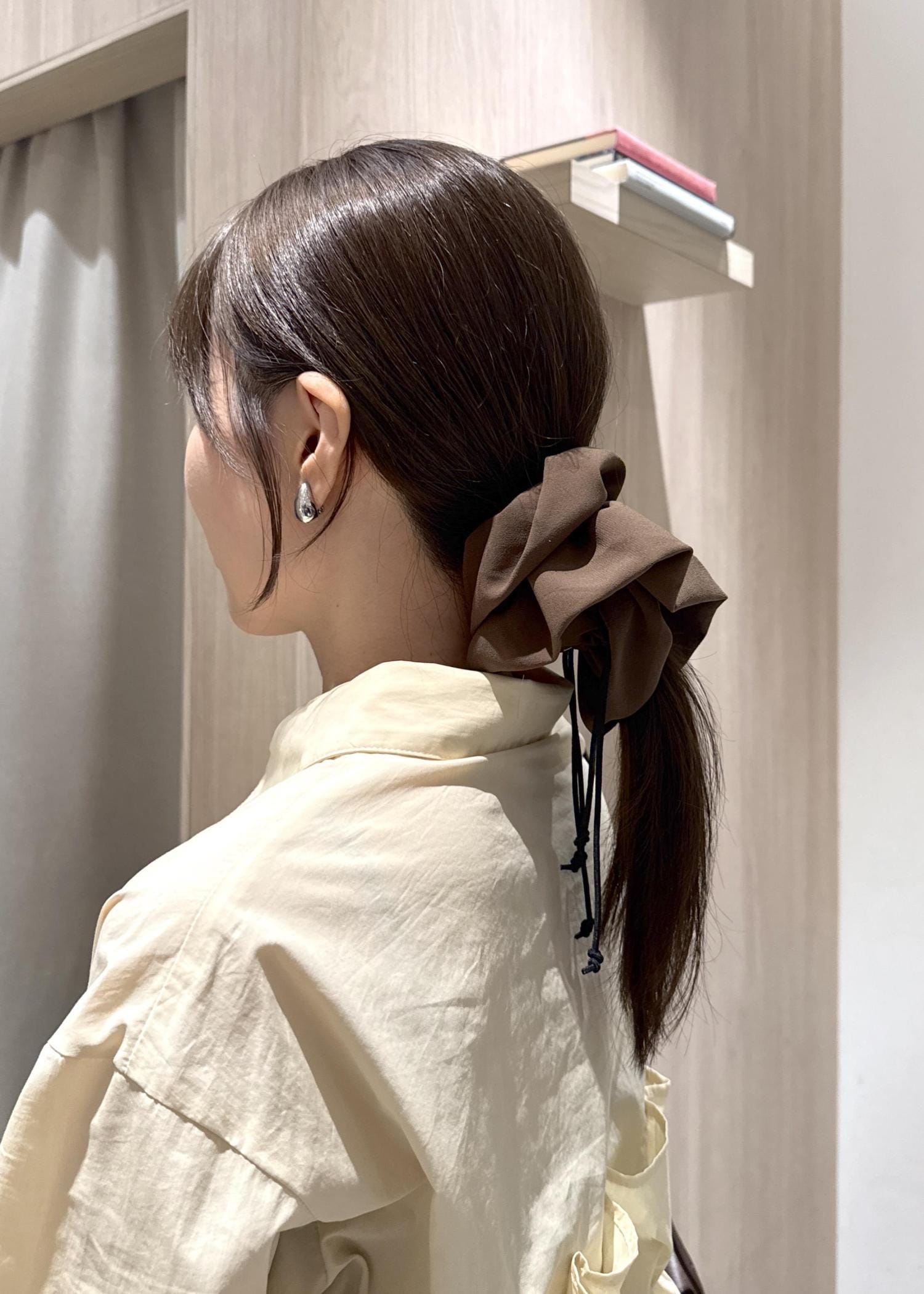 ゴムの長さを調節できるため、好きな形にカスタマイズでき、色んなヘアスタイルに合わせていただけます!また、ゴムを垂らすことでこなれ感も出せますよ!