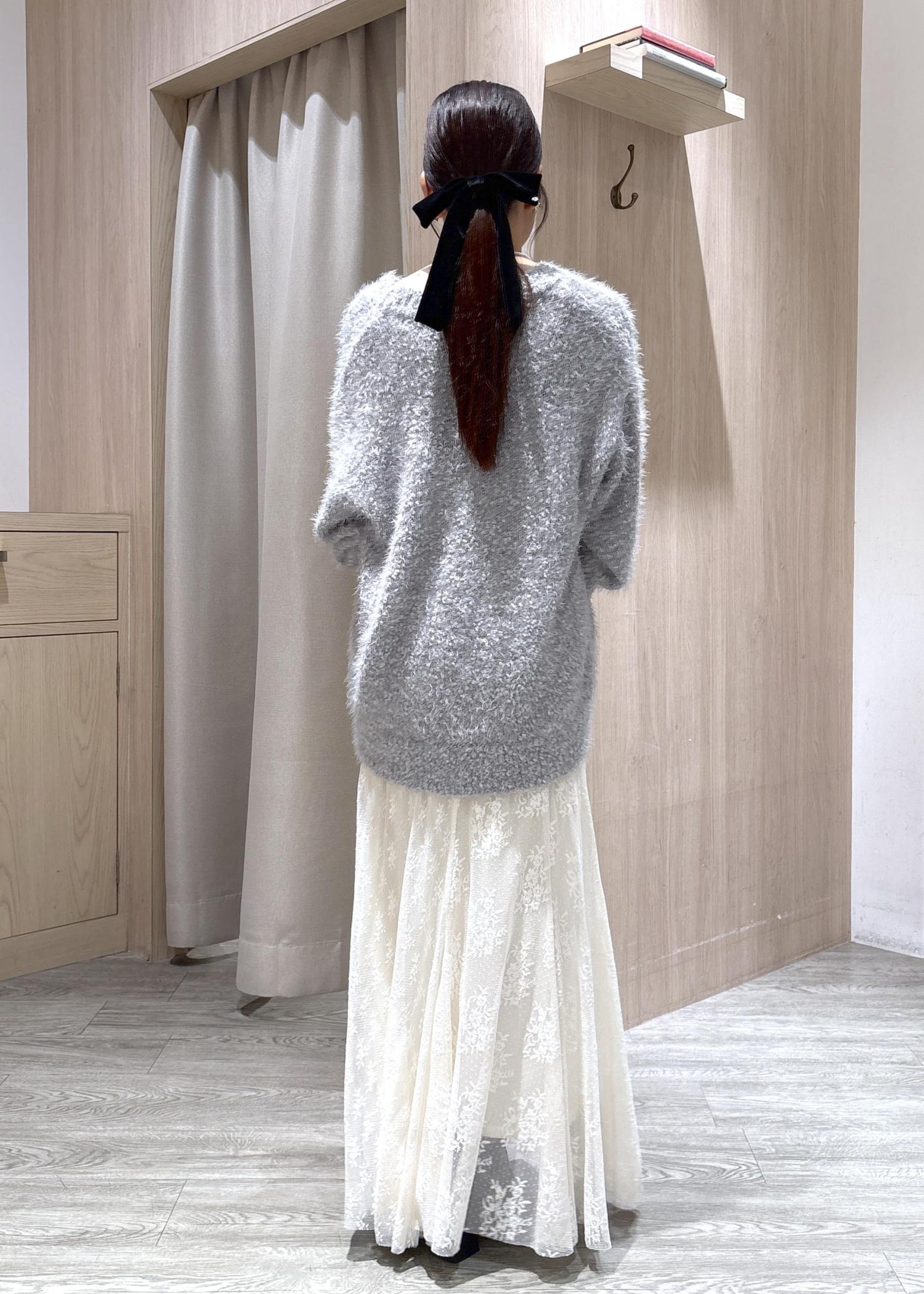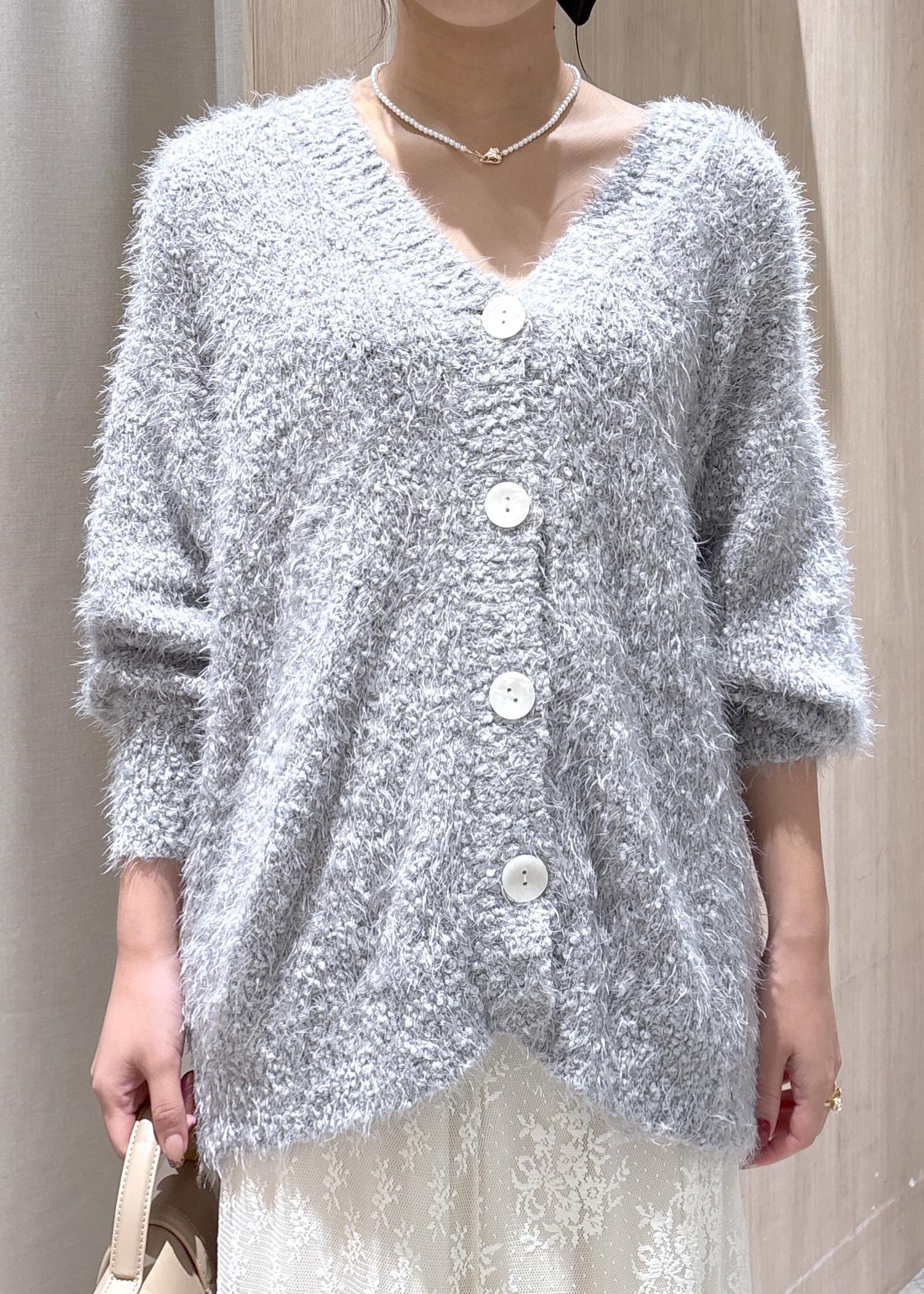 VISポップコーンヤーンラメフェザーニットカーディガン/WEB限定FSサイズライトグレー / F¥5,271レビューお尻が隠れるくらいの丈感で袖にボリュームがありますが、全体的落ち感があるデザインなので着膨れせず着やすくなっています。