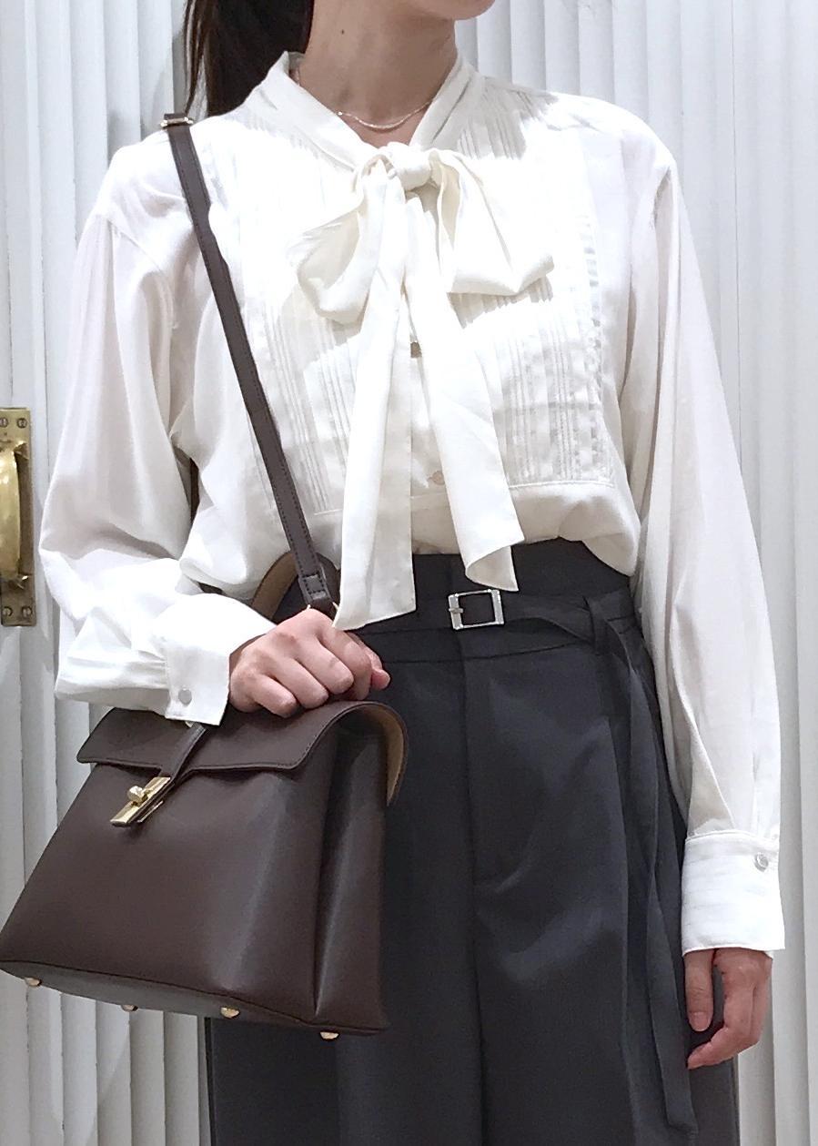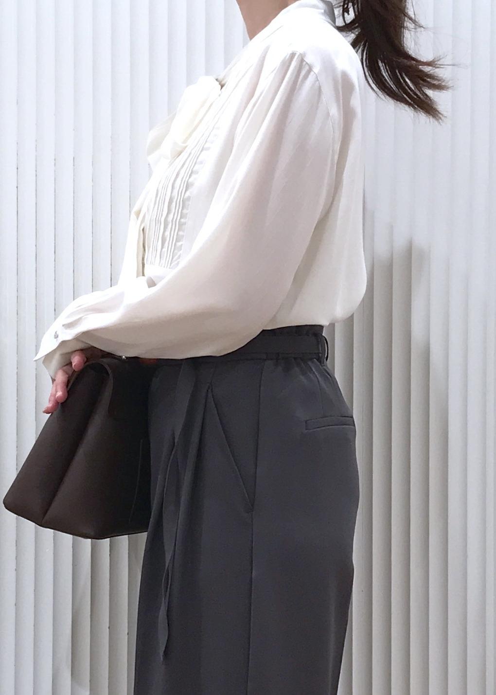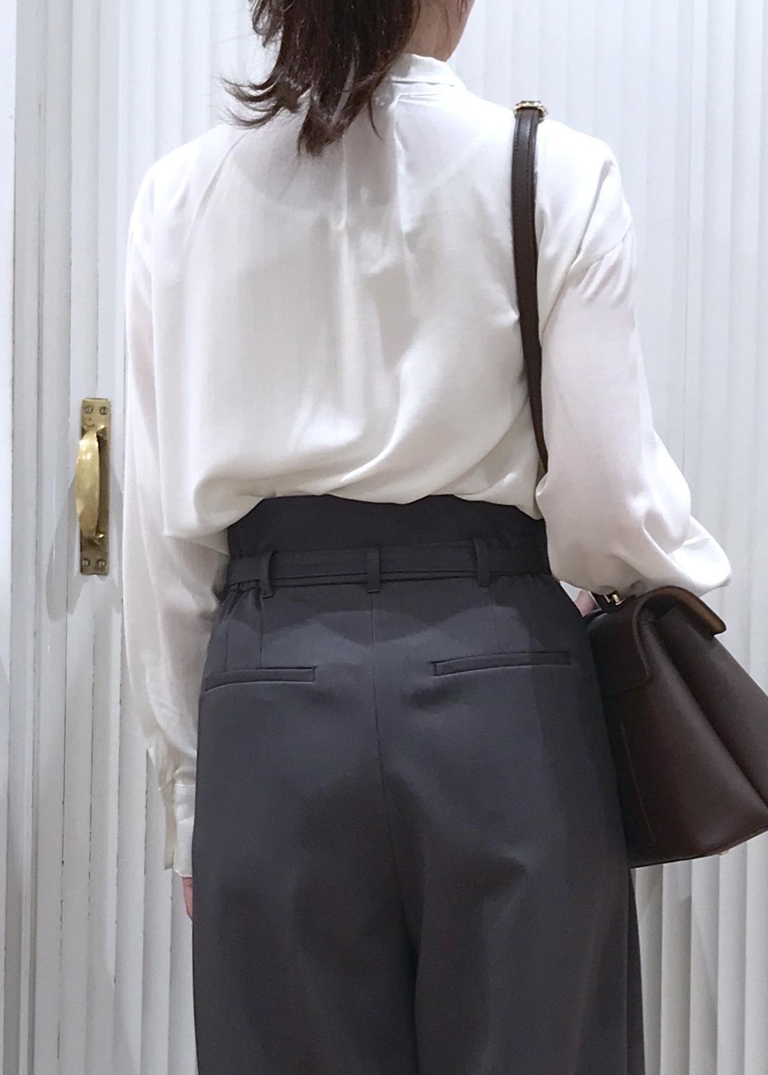 身幅や腕周りはゆったりしていて身体のラインは拾わないですが、厚さがないブラウスなので、カーディガンやジャケットのインナーに着ても嵩張りにくいです。 -