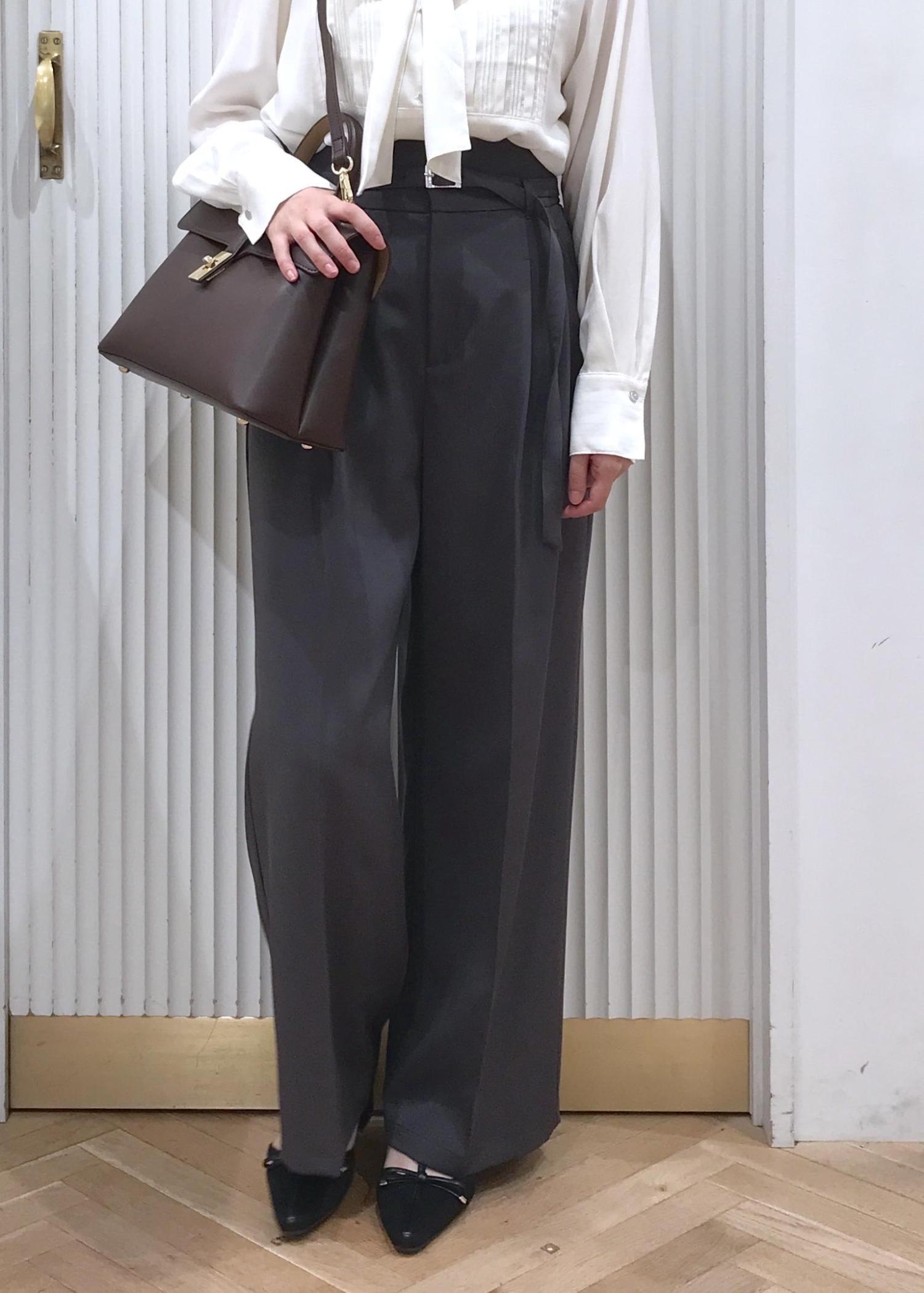 VISベルトディテールタックワイドパンツ/イージーケアチャコール / M¥6,589レビュー私の身長で足首がしっかり隠れる着丈感です。