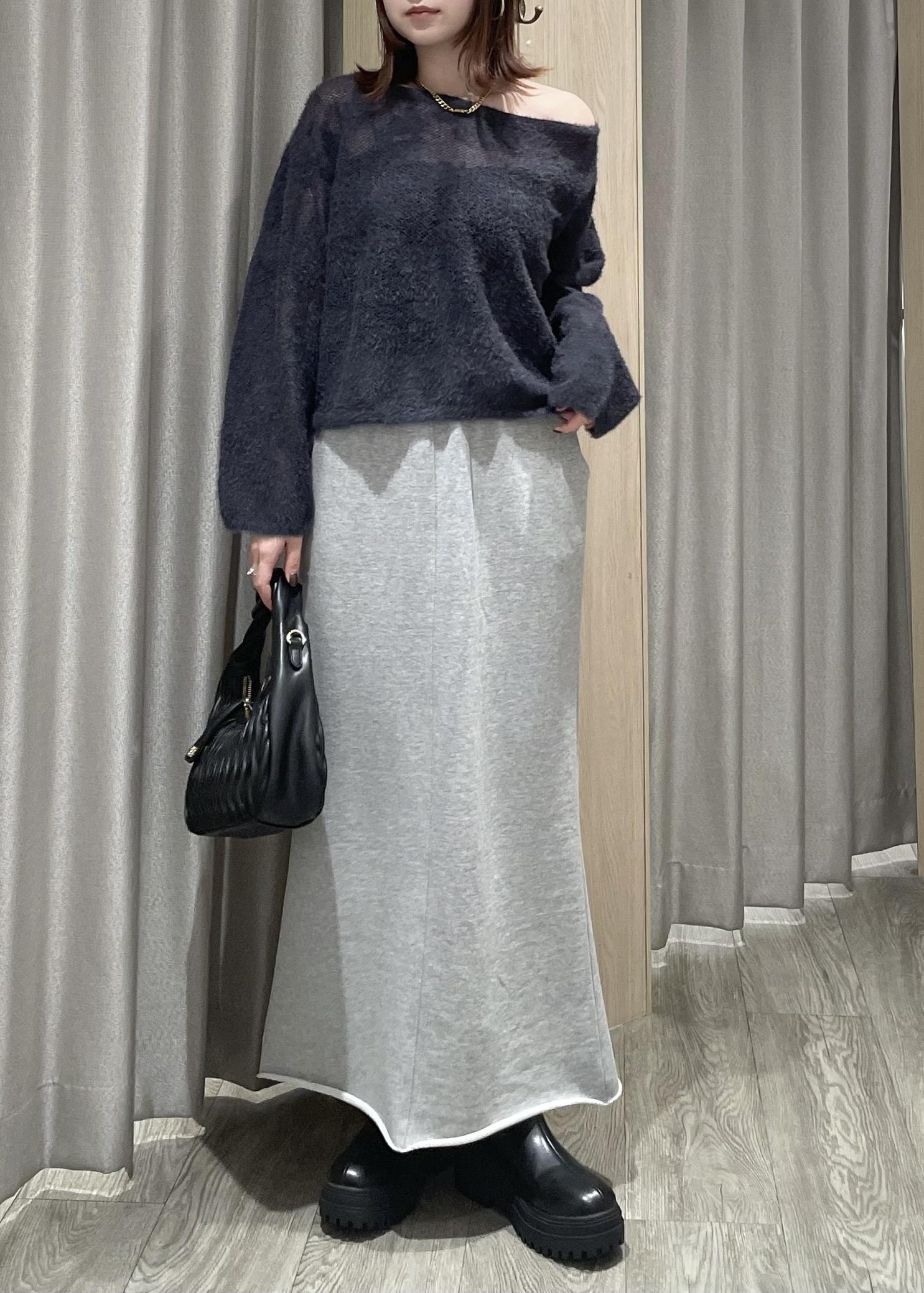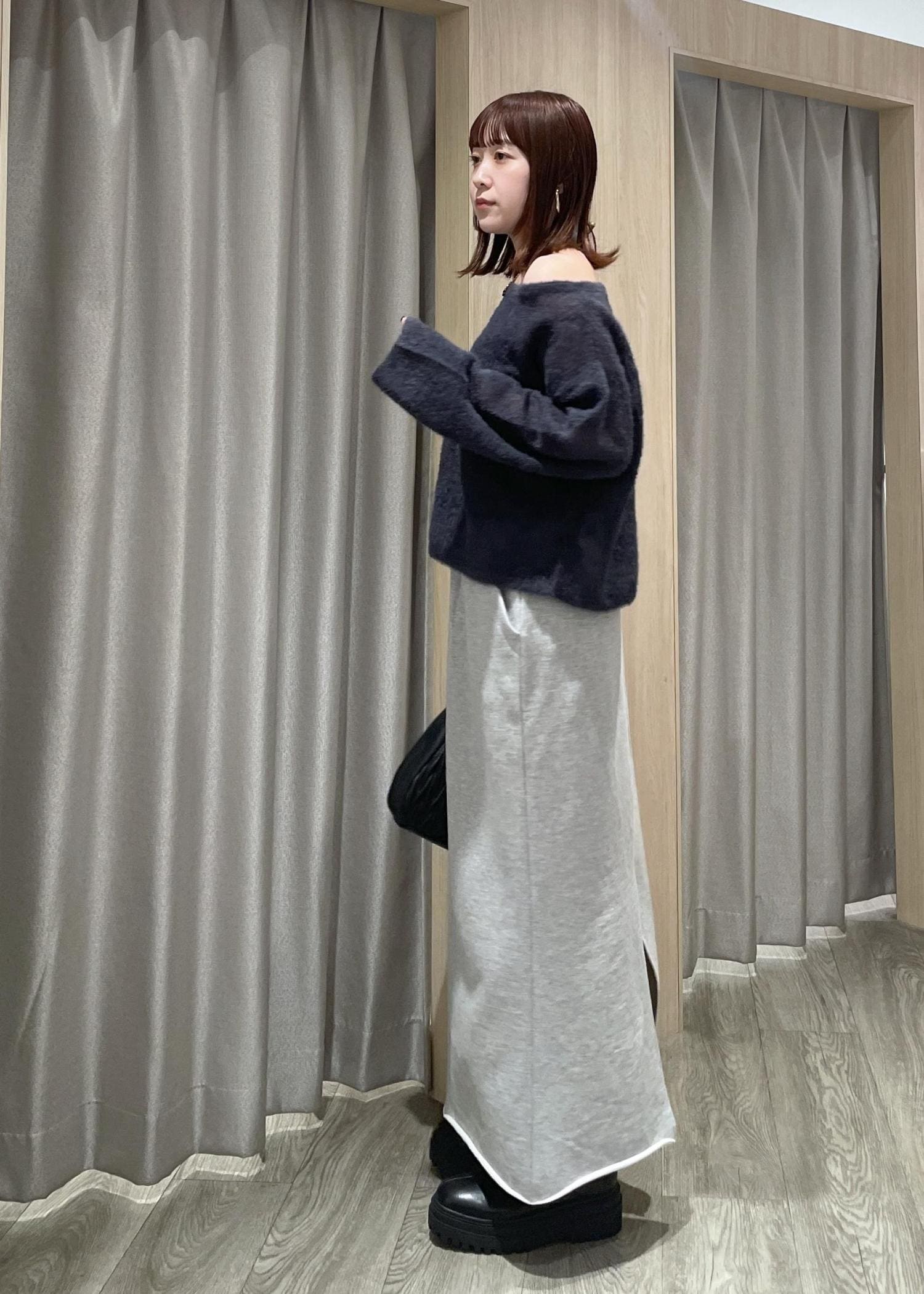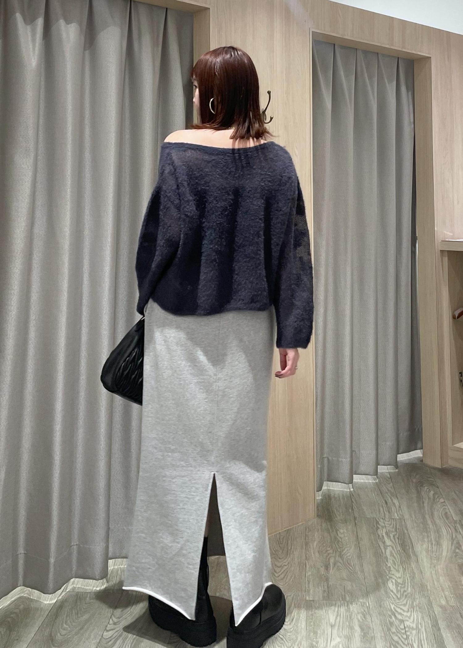 リラックス感のあるスウェットスカート♡ボディラインを拾わないのでラフに、Iラインで女性らしさもあります。バックスリットなので足捌きも◎