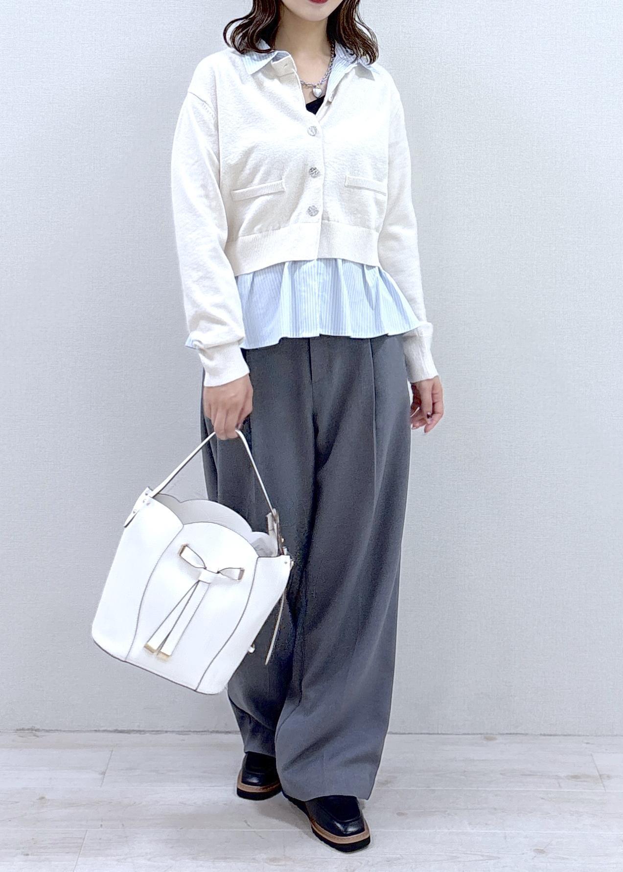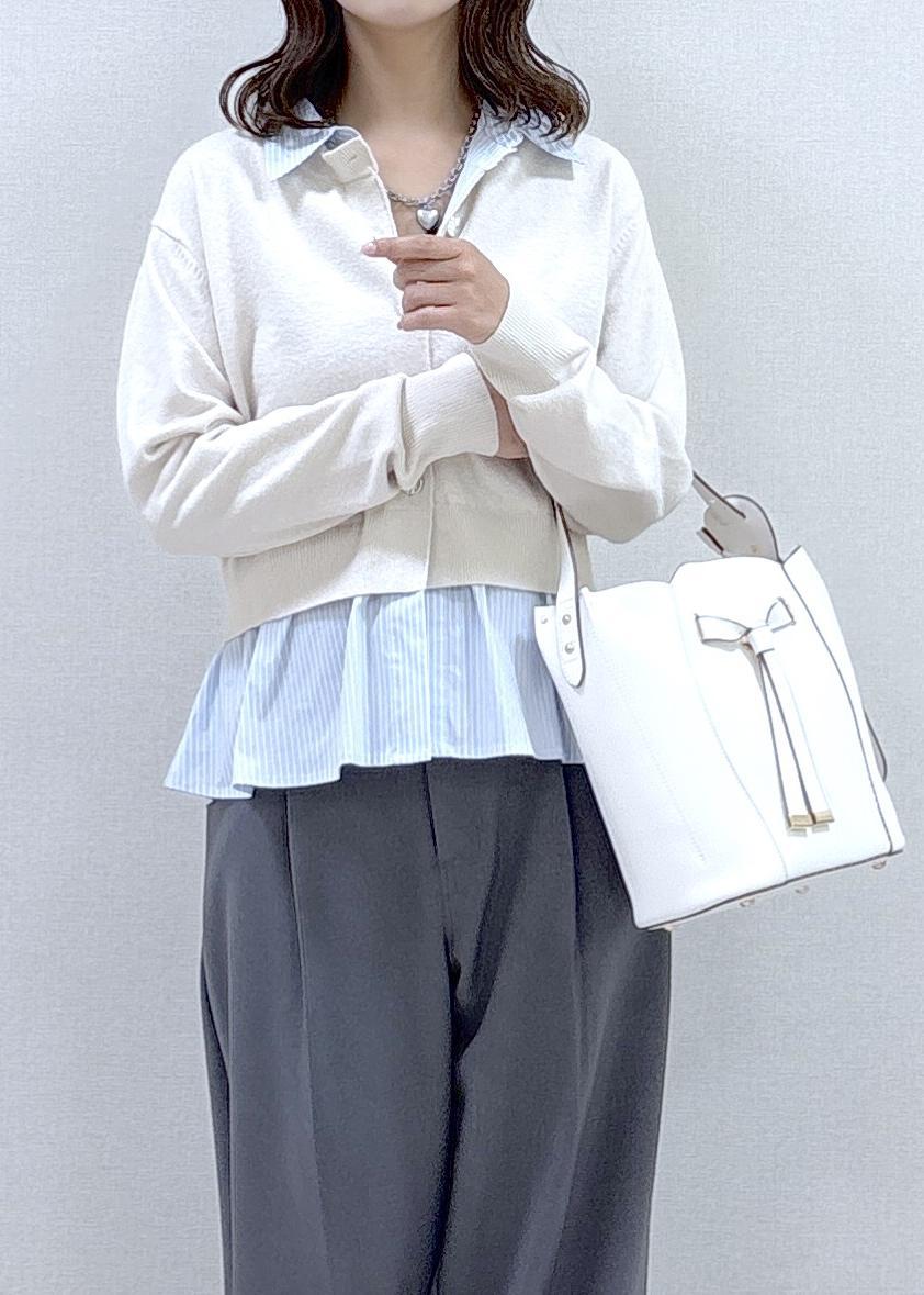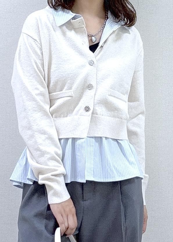 VISシャツレイヤード風メタルボタンカーディガンキナリ / F¥6,589レビュー重ね着風なので、着た感じは薄手のカーデを一枚羽織っているような感覚です。