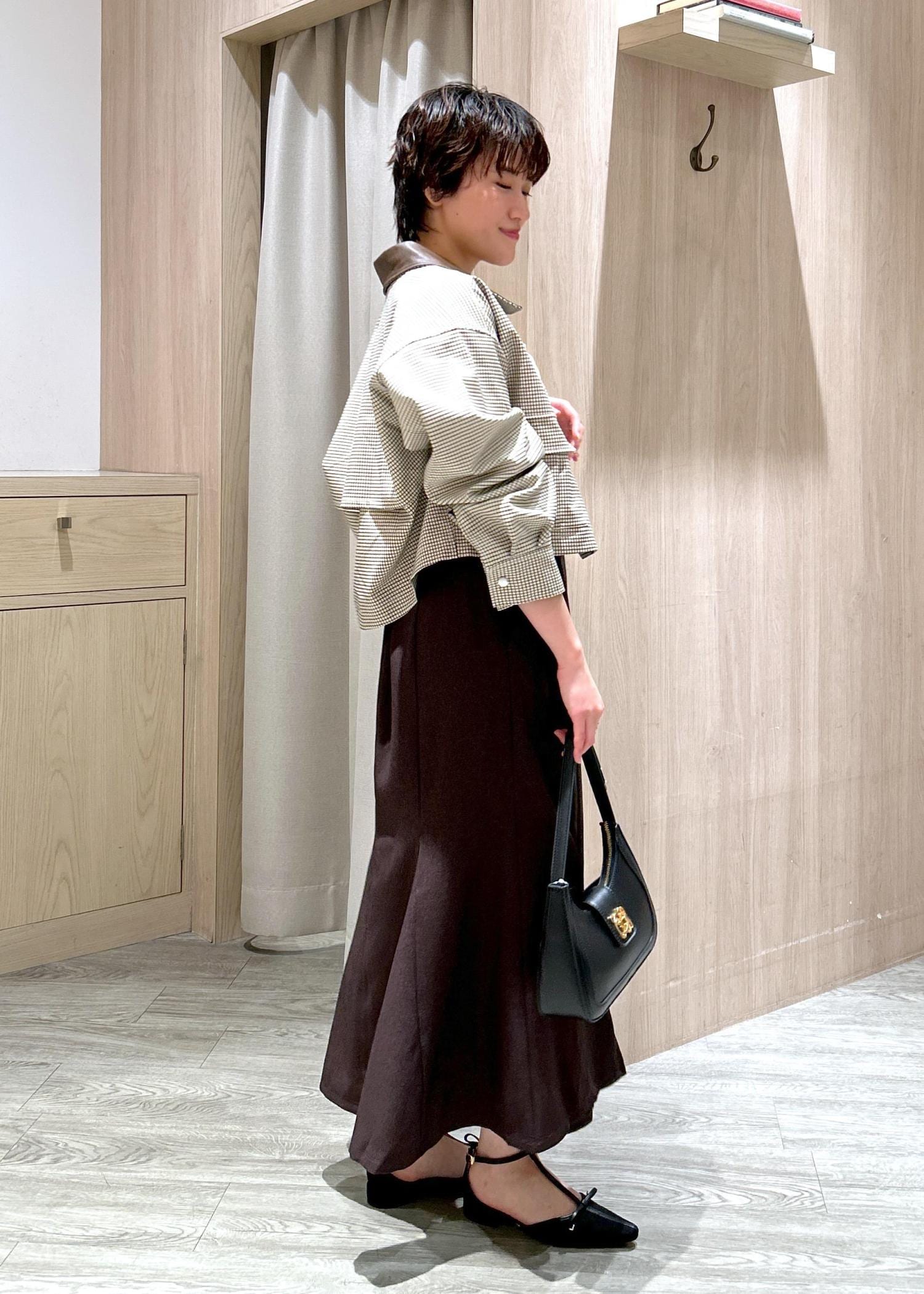1枚でも着映えしますが軽めの素材なので、ジャケットのインナーとしても着られます! -