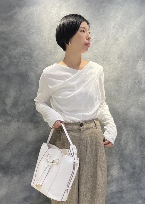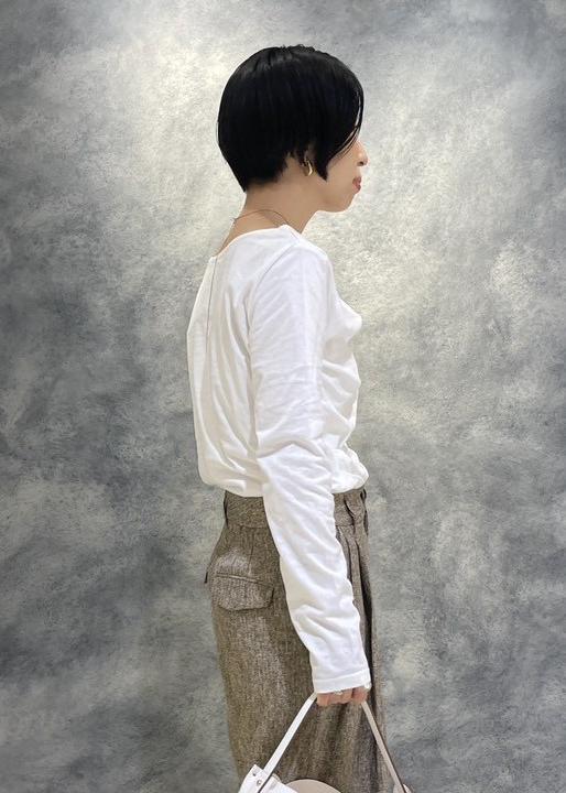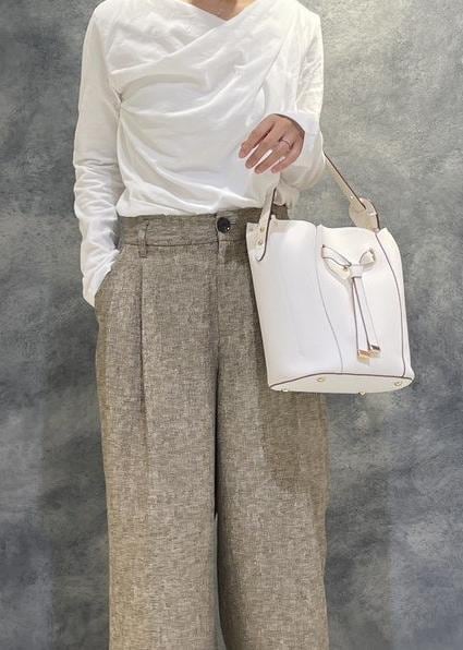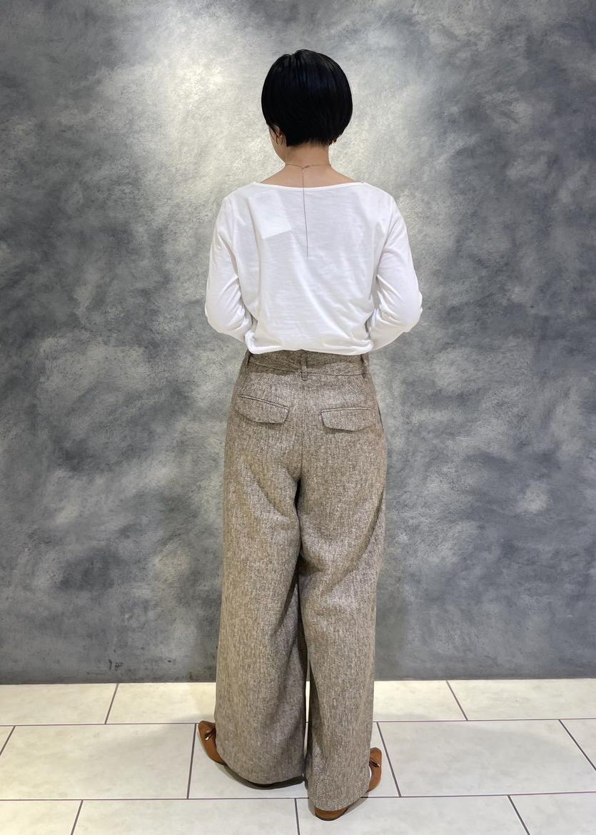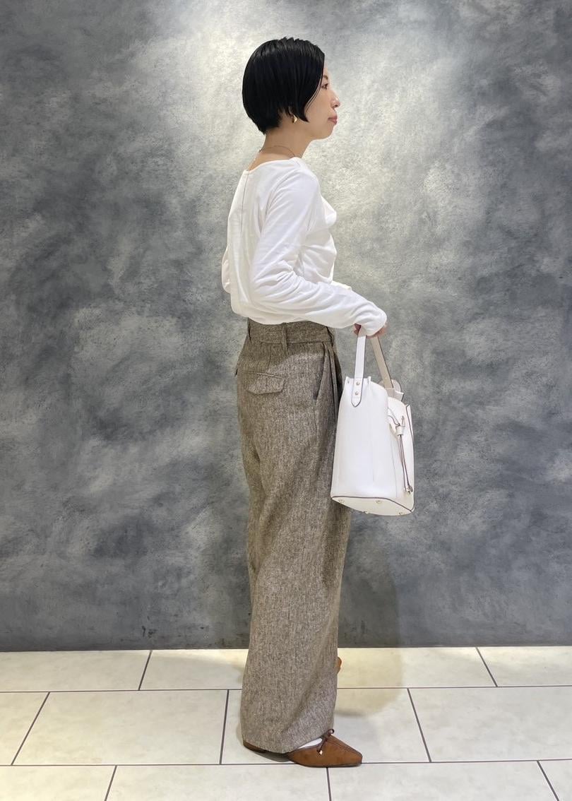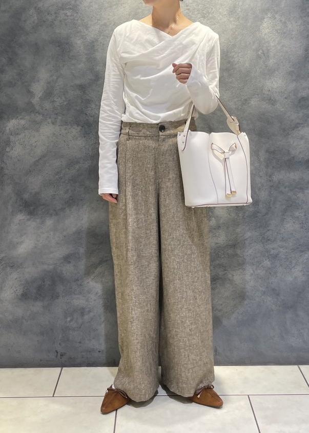 ドレープカットソーを合わせたレディライクなパンツコーデです。