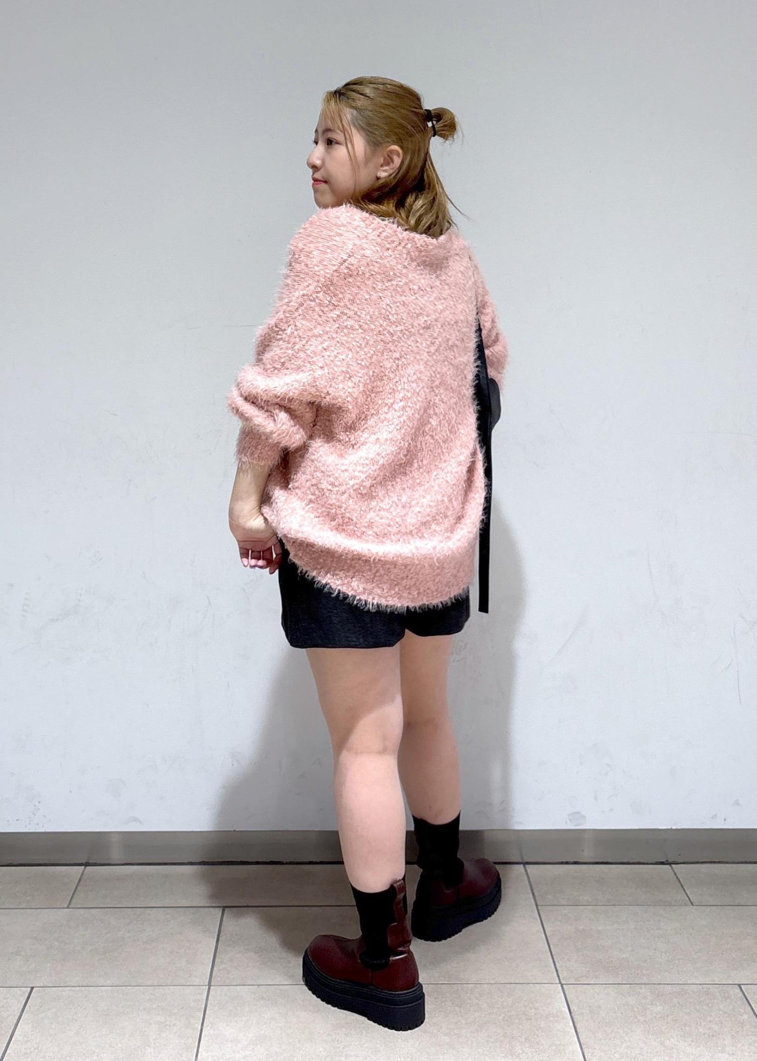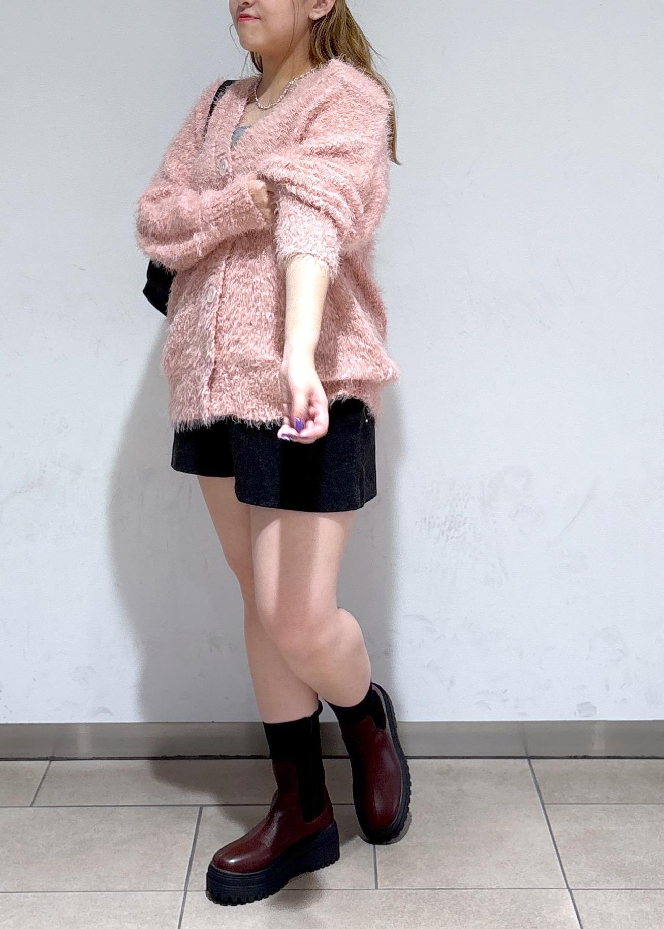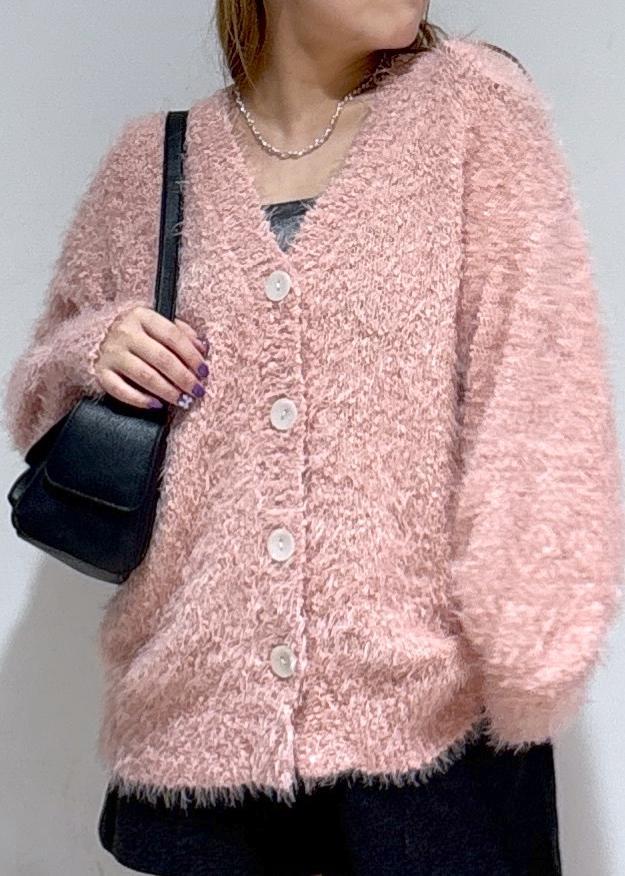 VISポップコーンヤーンラメフェザーニットカーディガン/WEB限定FSサイズピンク / F¥5,271レビュー153cmでおしりがすっぽり隠れる丈感です!