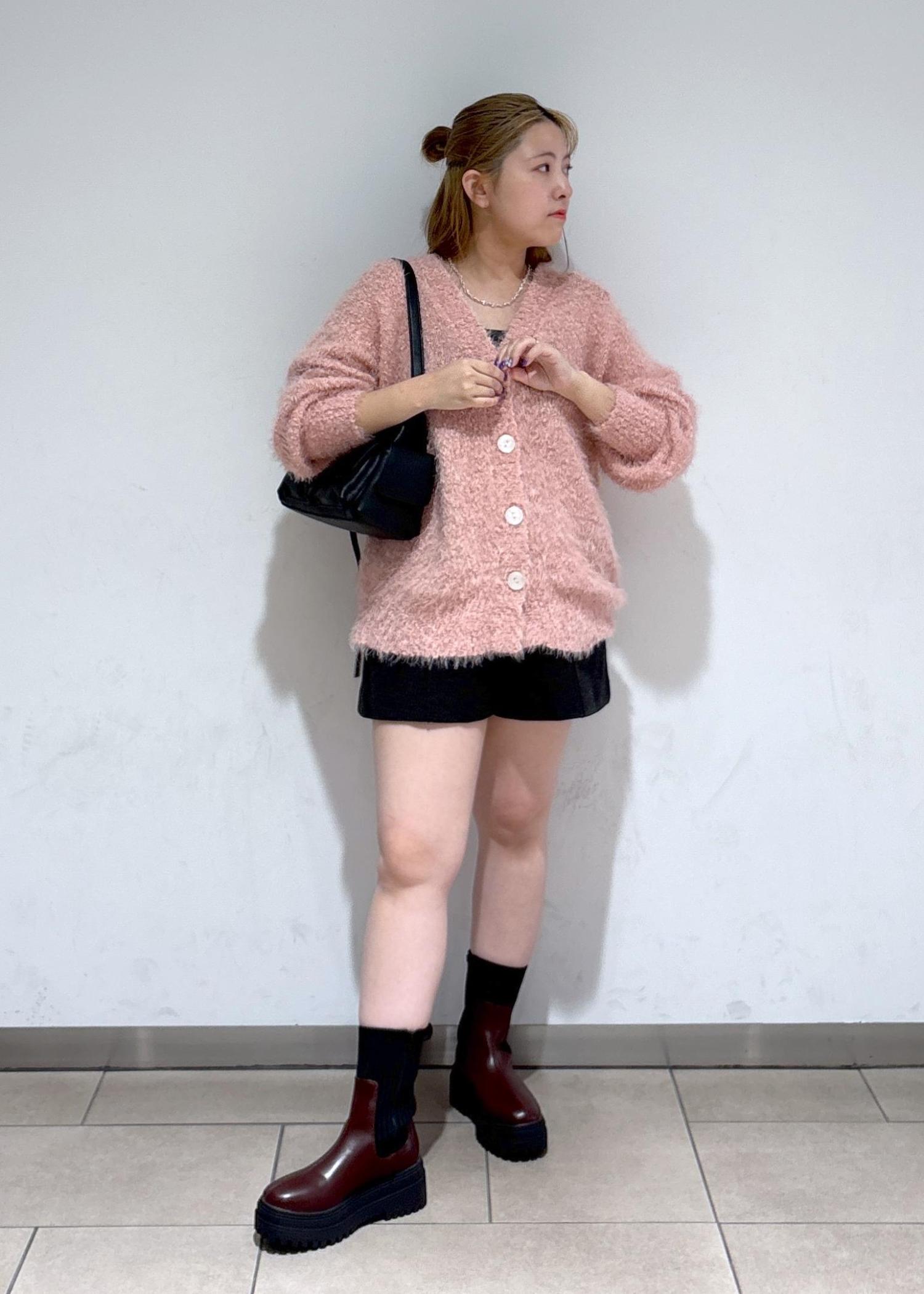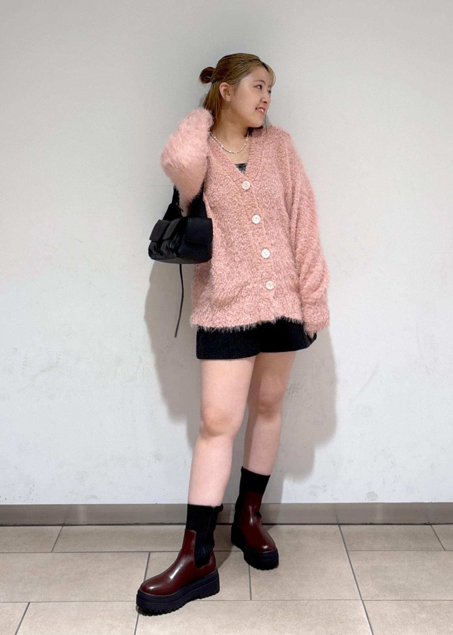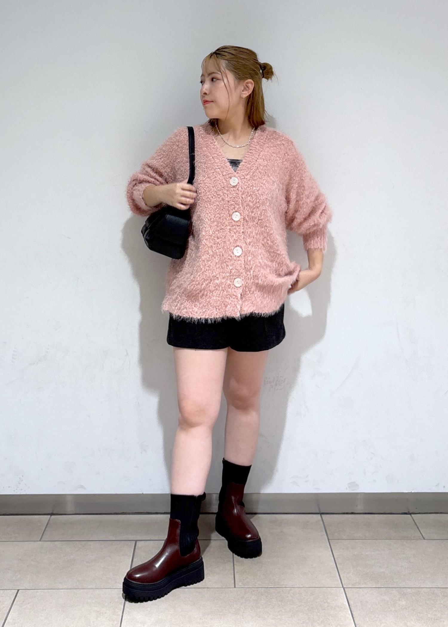 VISポップコーンヤーンラメフェザーニットカーディガン/WEB限定FSサイズピンク / F¥5,271レビュー153cmでおしりがすっぽり隠れる丈感です!
