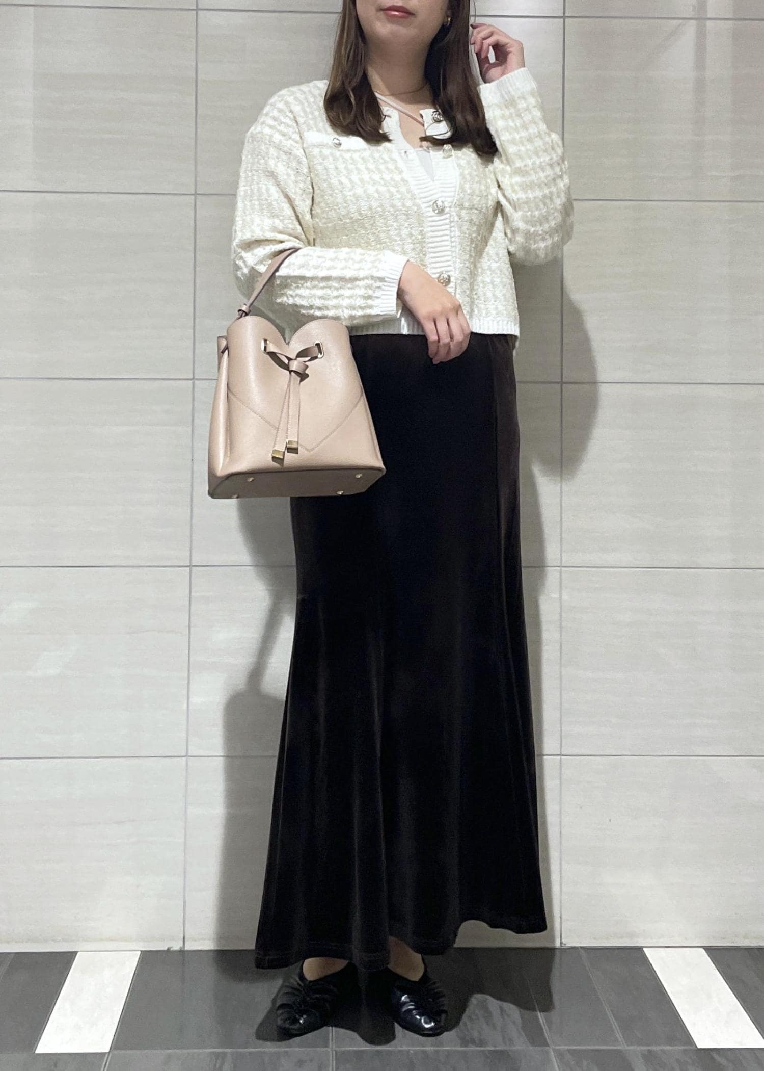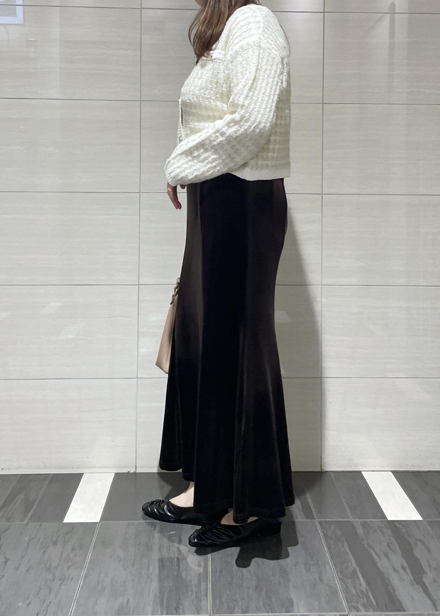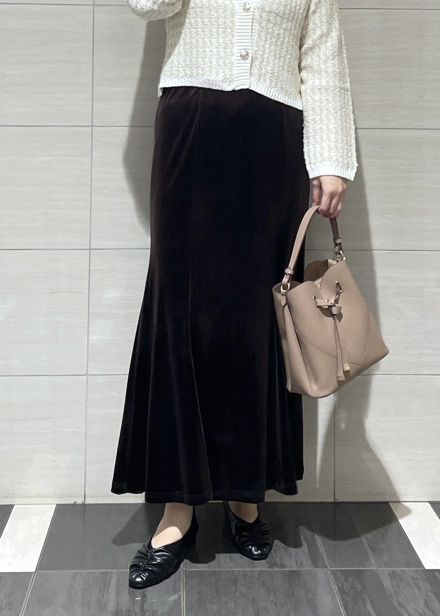 VISベロアナロースカートダークブラウン / M¥6,589レビュー163cm Mサイズ着用でウエスト折り返しせずでくるぶしくらいの丈感です。高身長でも丈感がしっかりあるのでバランスが取りやすいです。柔らかい厚めのベロア生地なので身体のラインを拾わずに気になる腰回りもカバーしてくれます◎