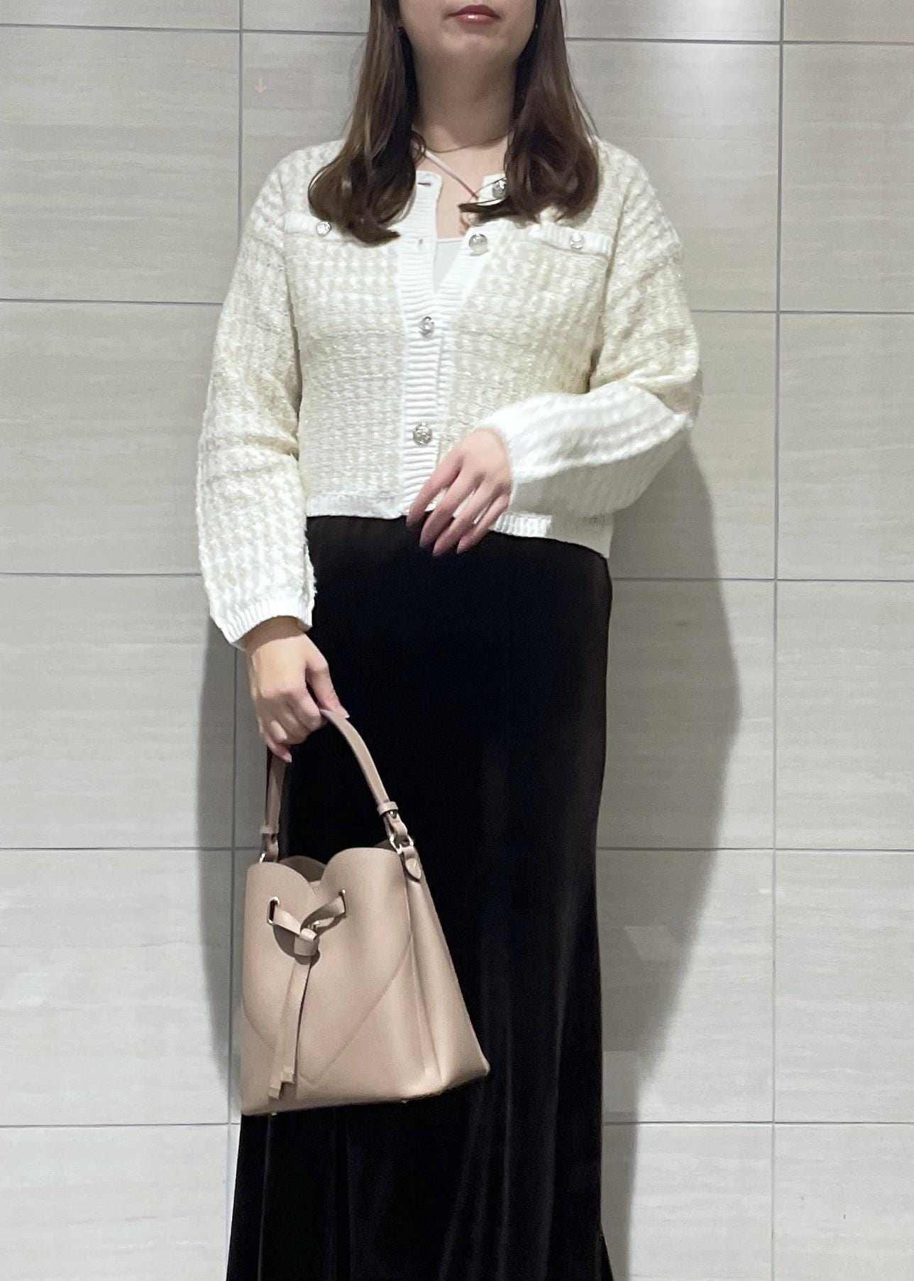 VISファンシーツイードメタルボタンカーディガンオフホワイト / F¥6,589レビュー163cmで腰に少しかかる丈感です。