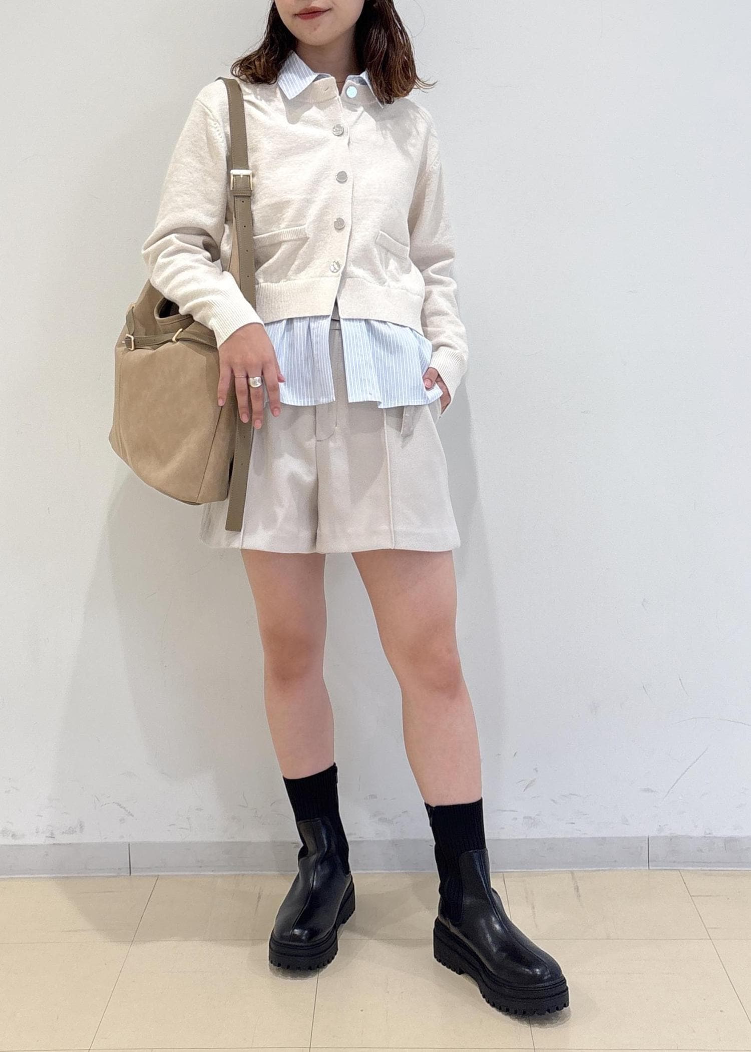 ショートパンツと合わせてトレンドライクなコーデにしました◎