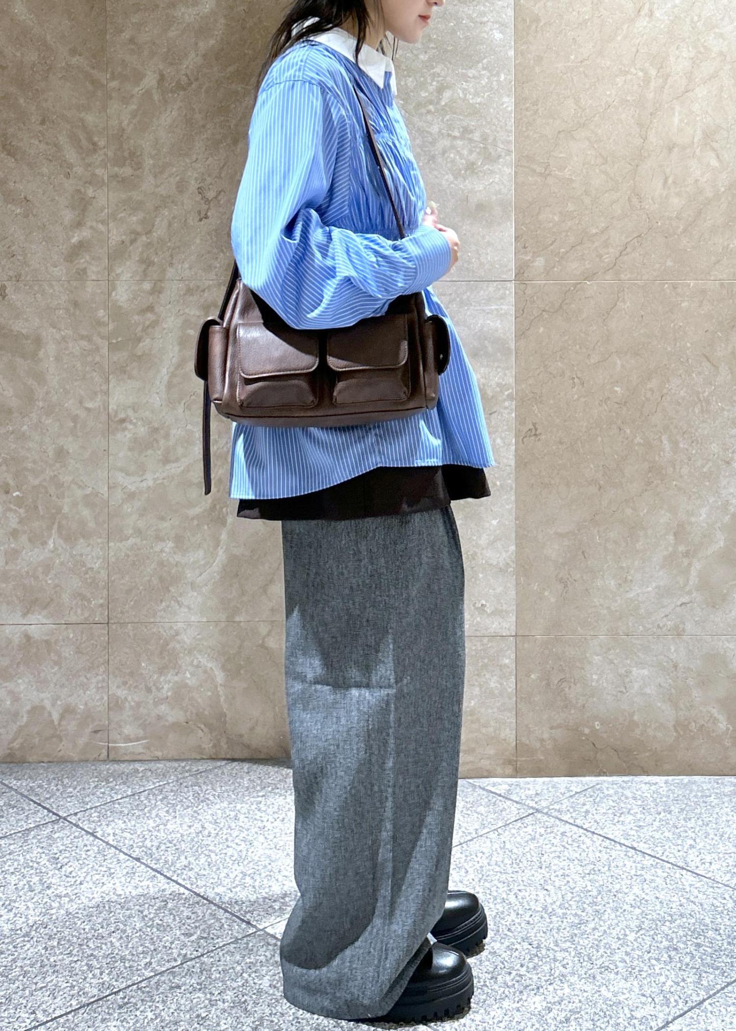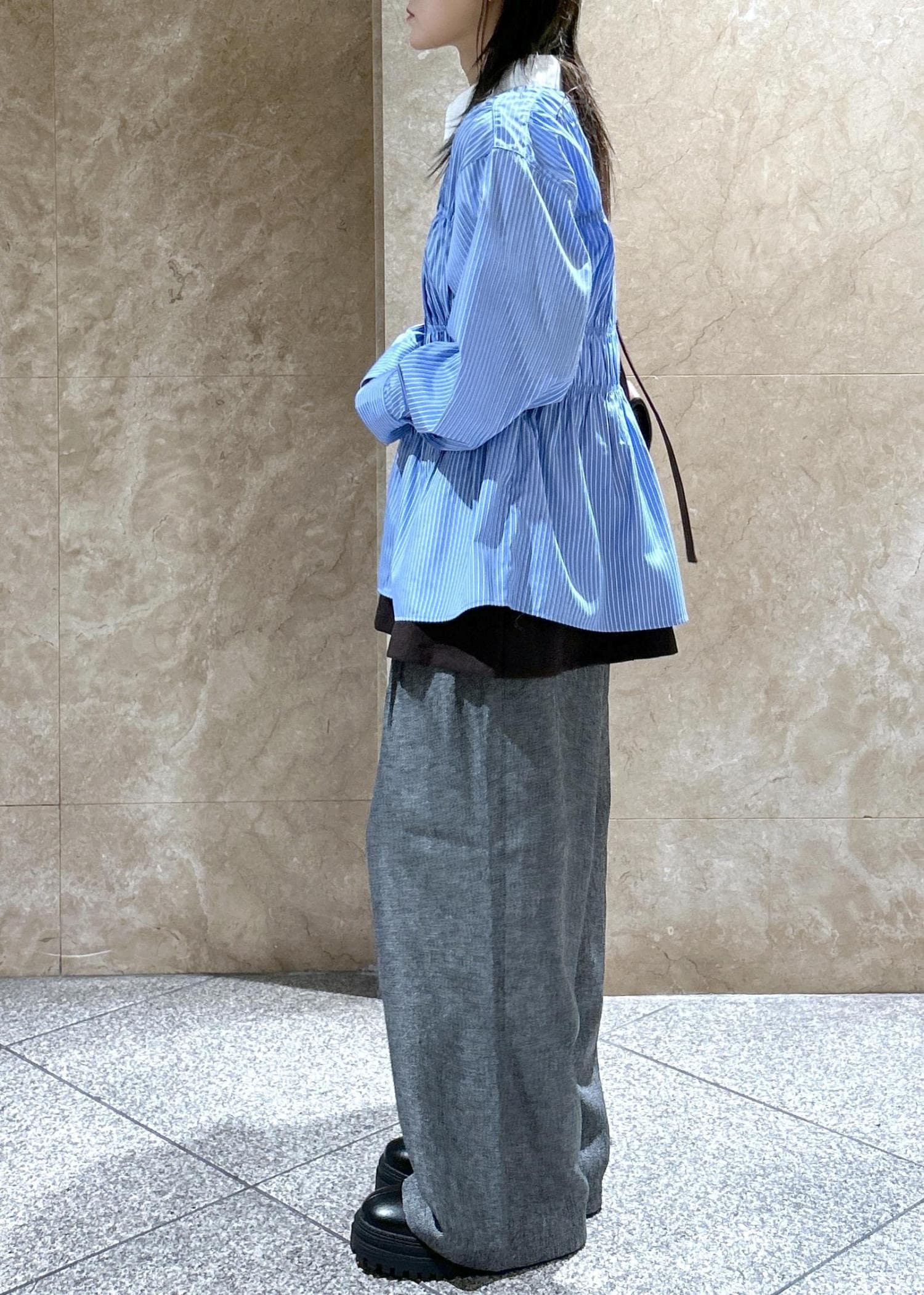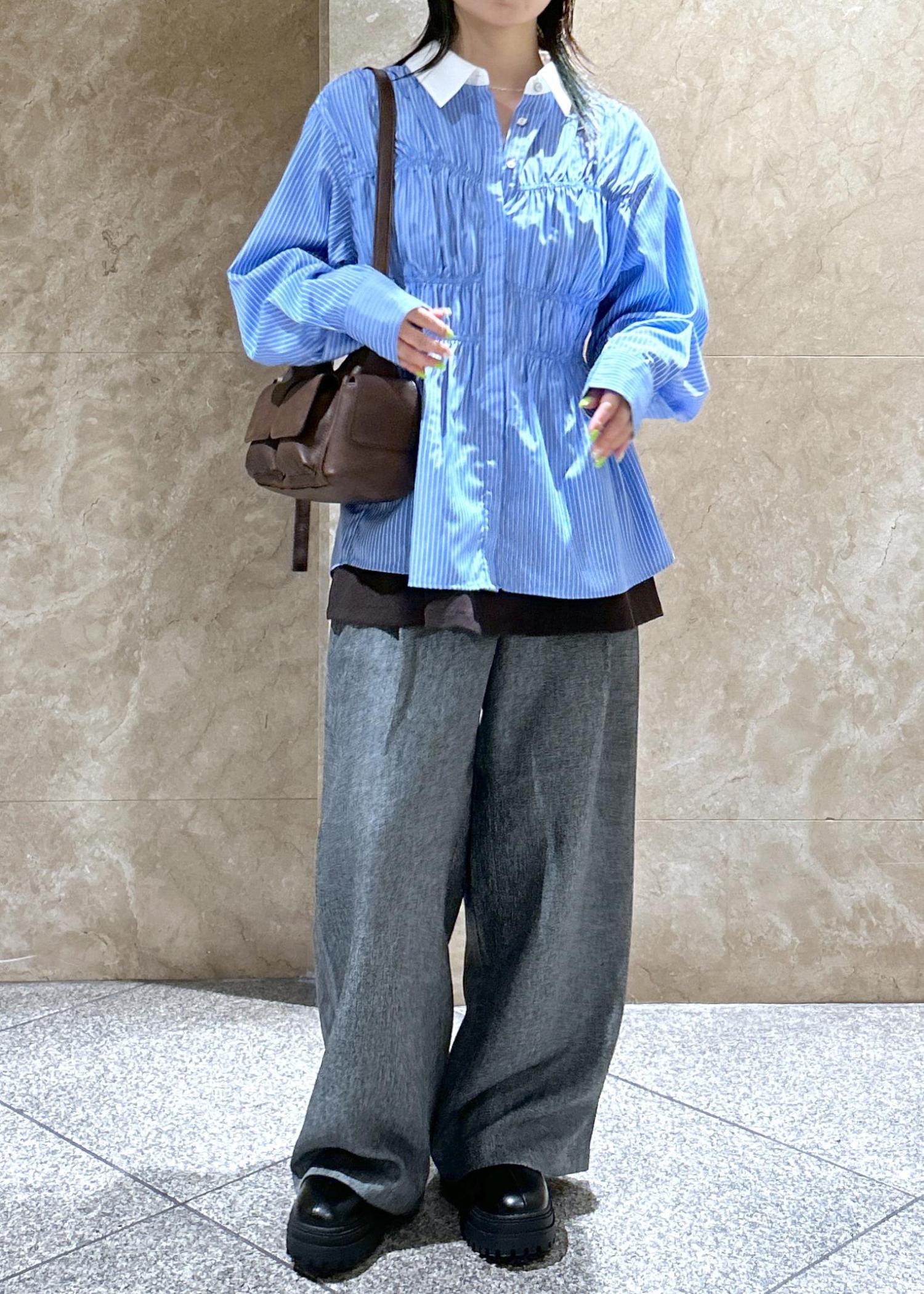 全体的にワイドなシルエットですが、センターにタックが入っているので立体感を出してくれます。