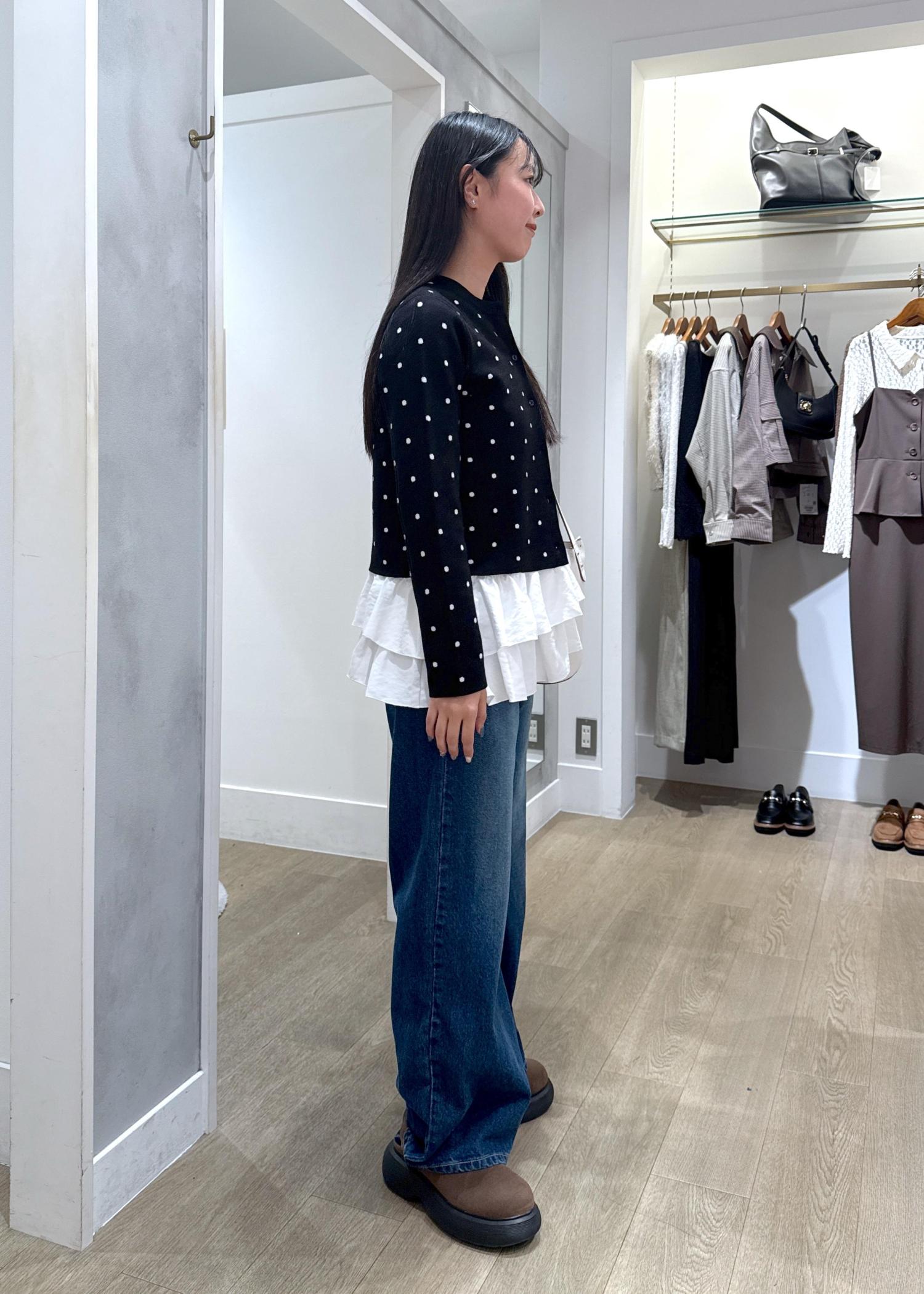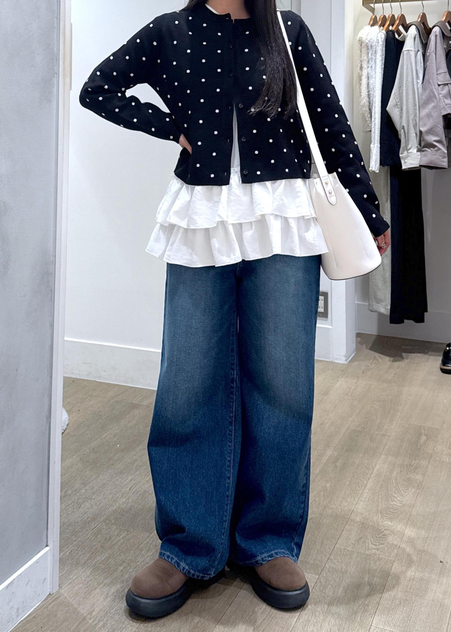 短めのカーディガンと合わせるだけで、シンプルコーデが一気にオシャレ上級者コーデになります♪