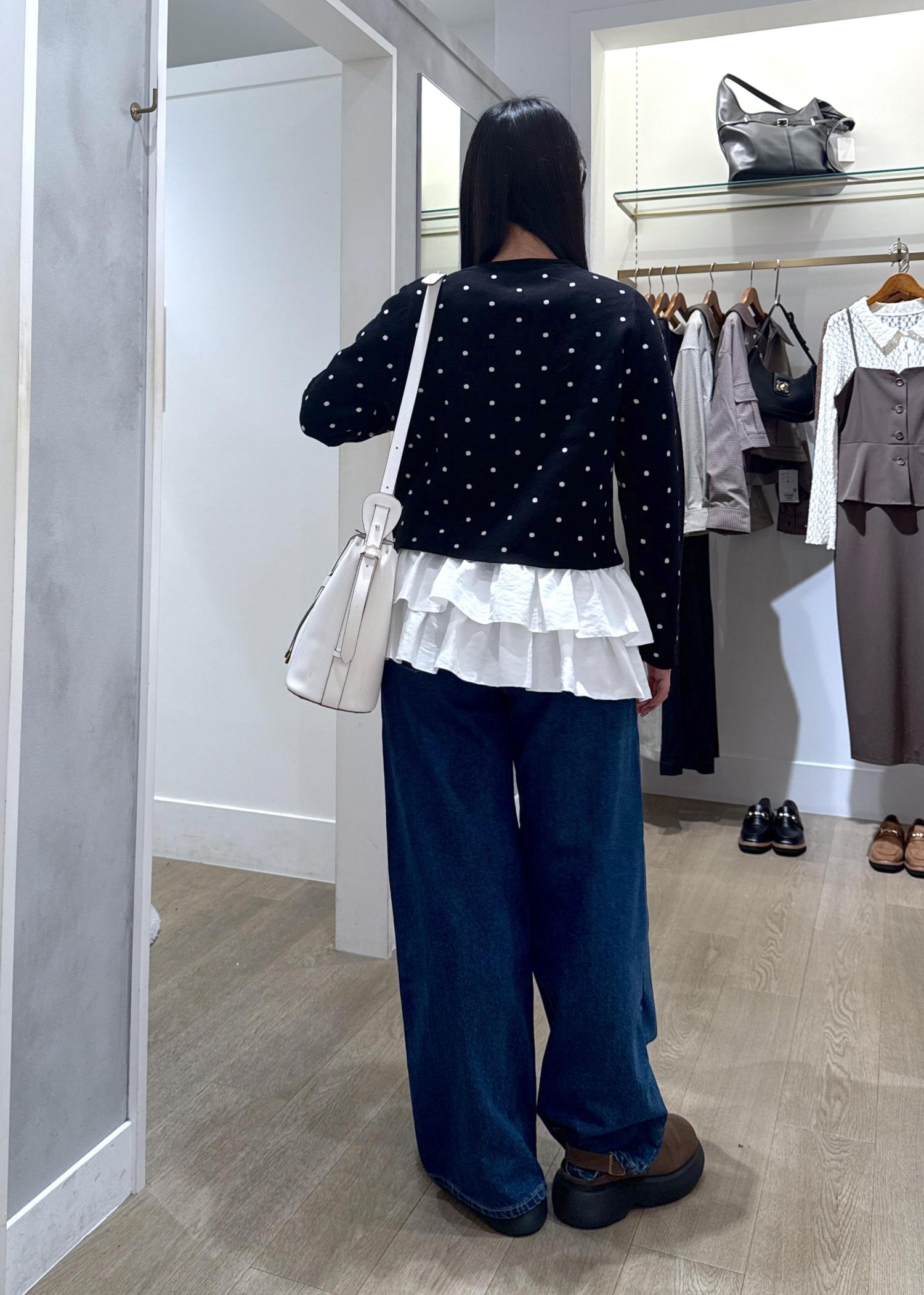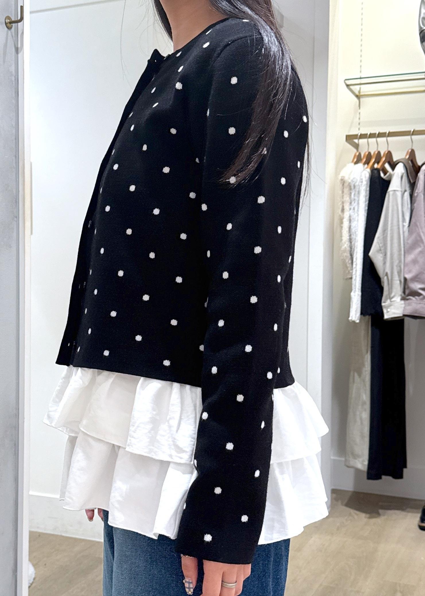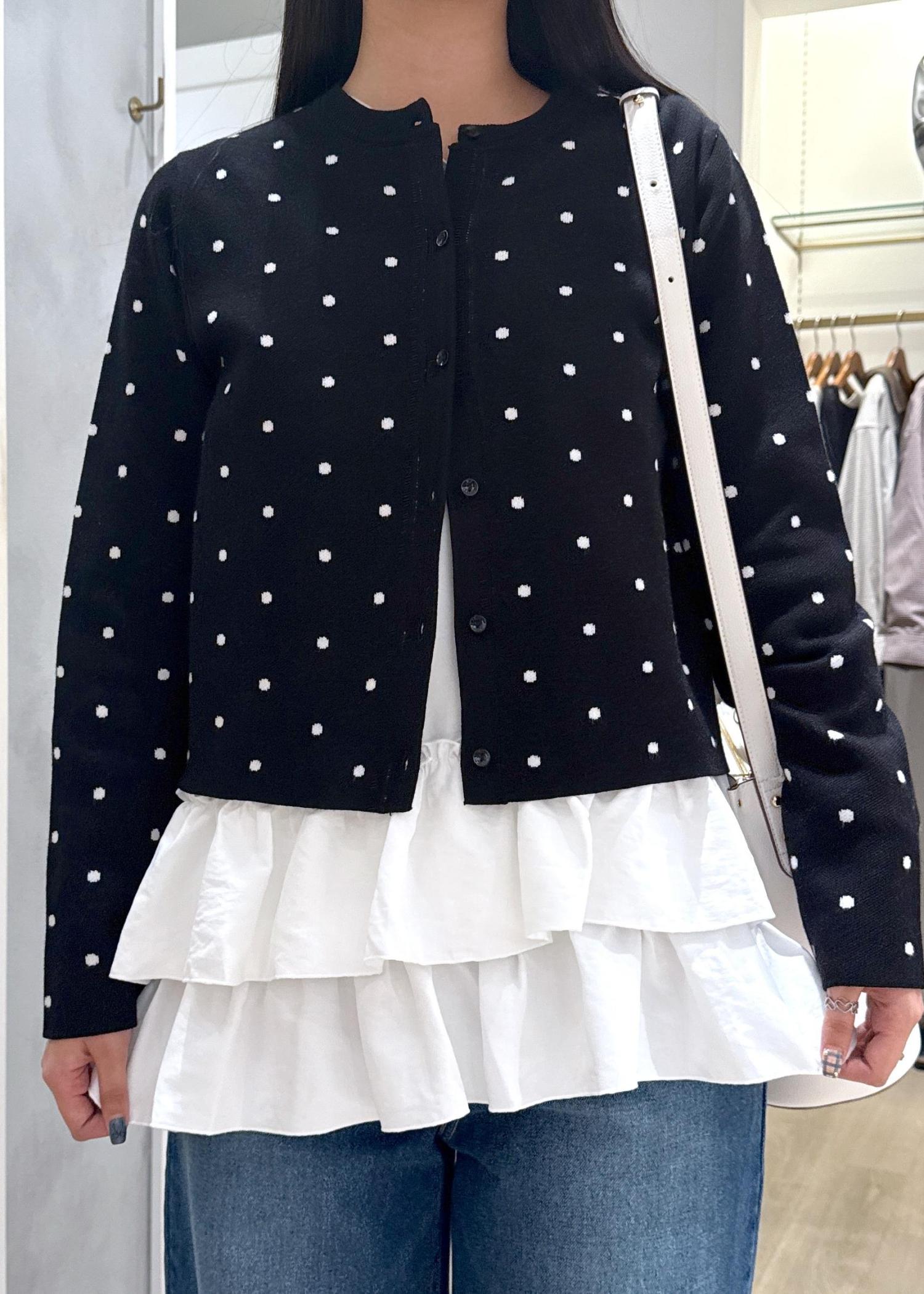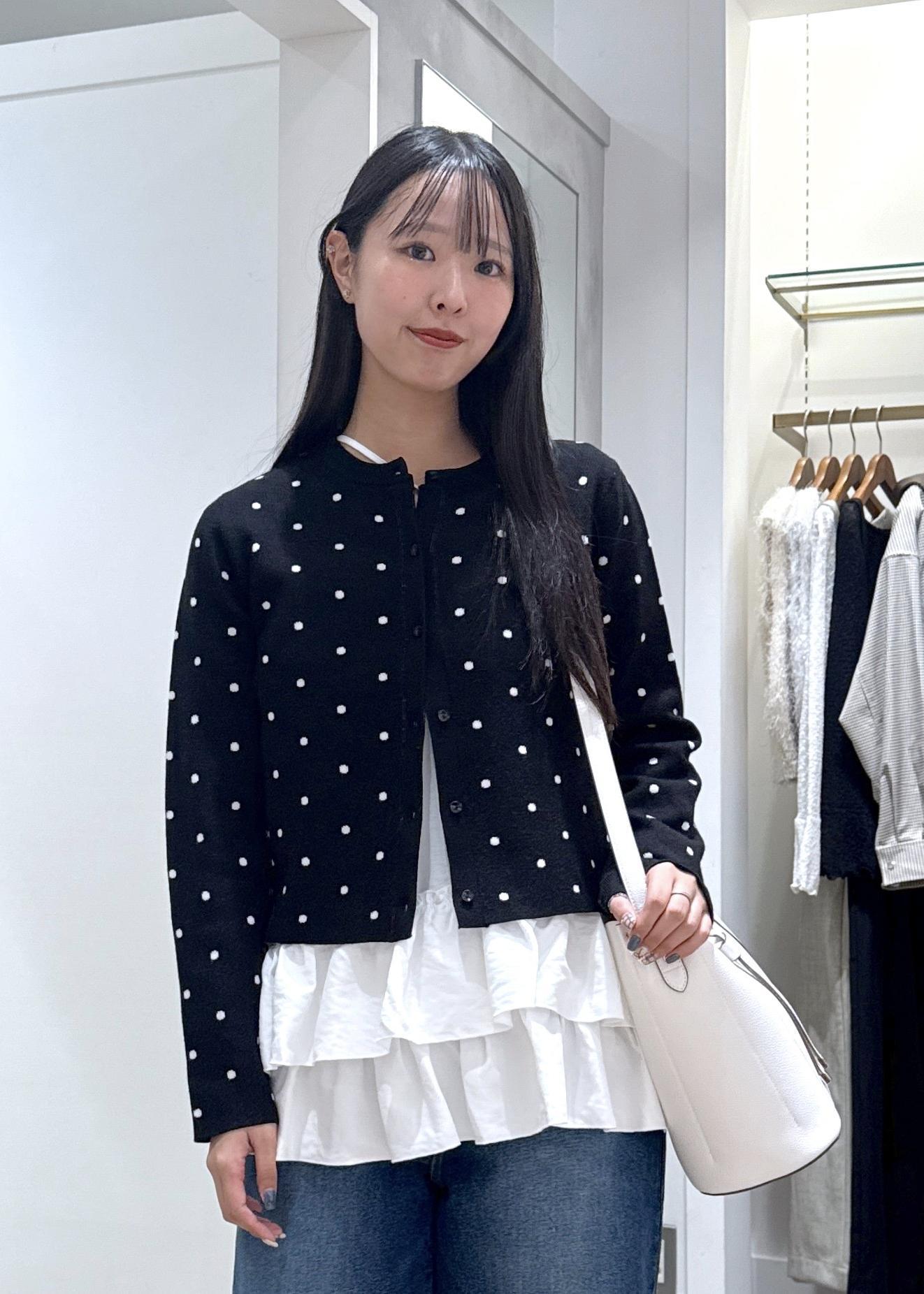 VISドットジャガードカーディガンブラック系 / F¥5,929レビュー縫い目が細かく、肌触りがかなり柔らかいです。丈は少し短めで、お腹がギリギリ見えないくらいです。そのため、腰が高く見えます。少しゆとりのあるサイズ感なので、寒くなっても中に着込むことが出来ます