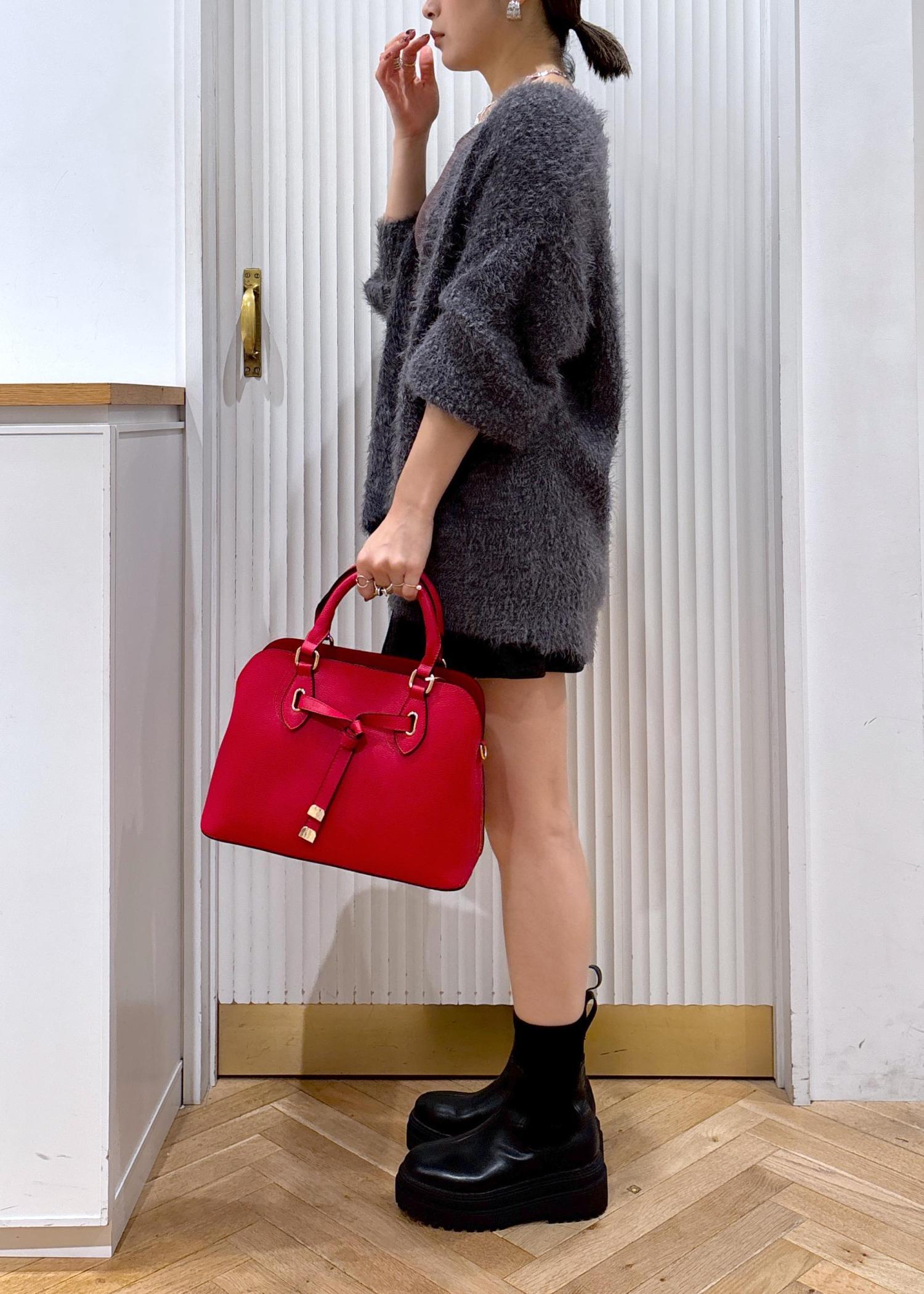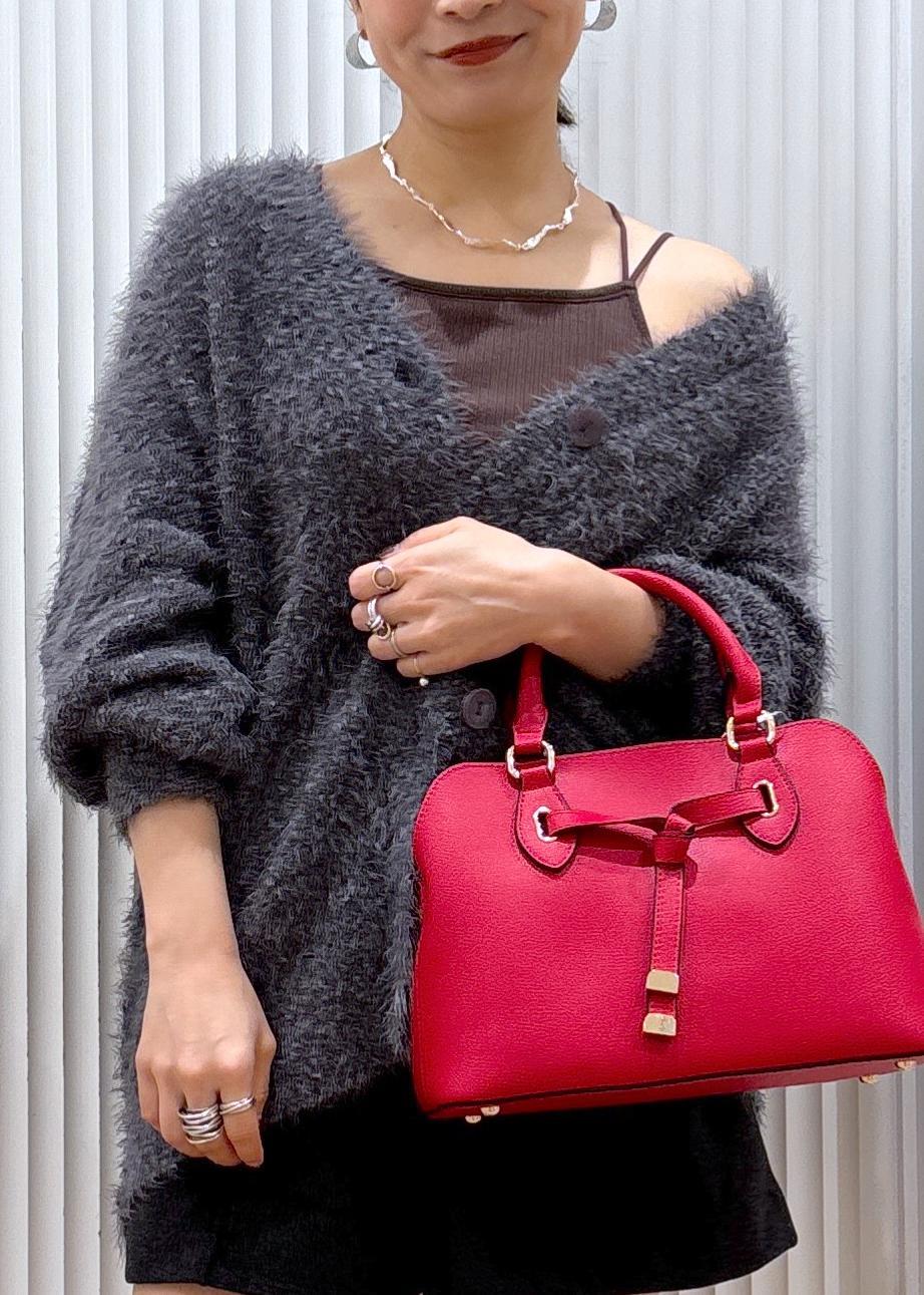 VISフロントタイ ブガッティ型ボストンバッグ/2WAYレッド / F¥7,909レビューフロントのリボンが可愛い高見えバッグ。長財布や500mlのペットボトルまで入る安心の容量です。肩掛けのストラップも付属されており、荷物が増えた際は両手が使えてとっても便利。ファスナー付きで安心感があり、リアルレザーのような見た目が高級感がありオフィスにも◎また、セレモニーシーンにもお勧め。