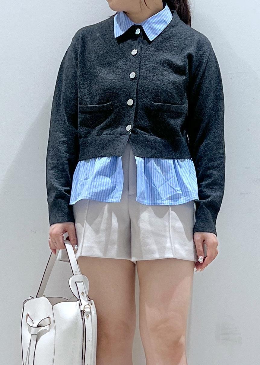 VISシャツレイヤード風メタルボタンカーディガンチャコール / F¥6,589レビューカーディガンデザインに、襟と裾部分のみシャツ素材がドッキングされている1枚でおしゃれなトップスです!