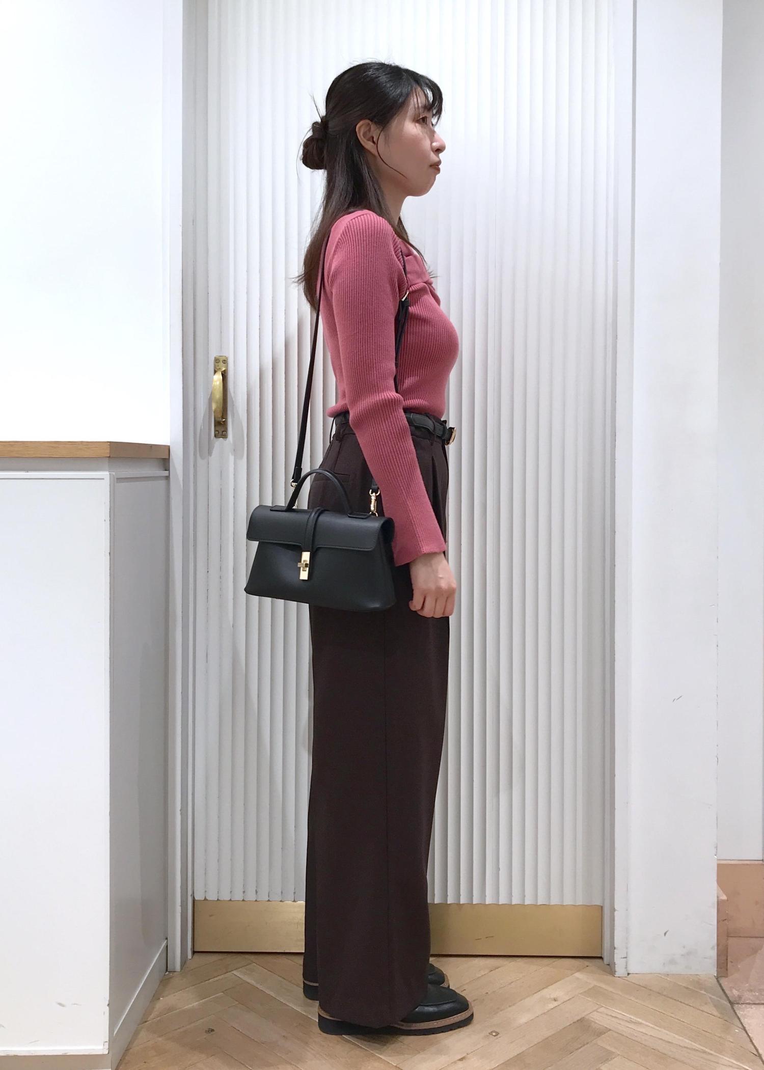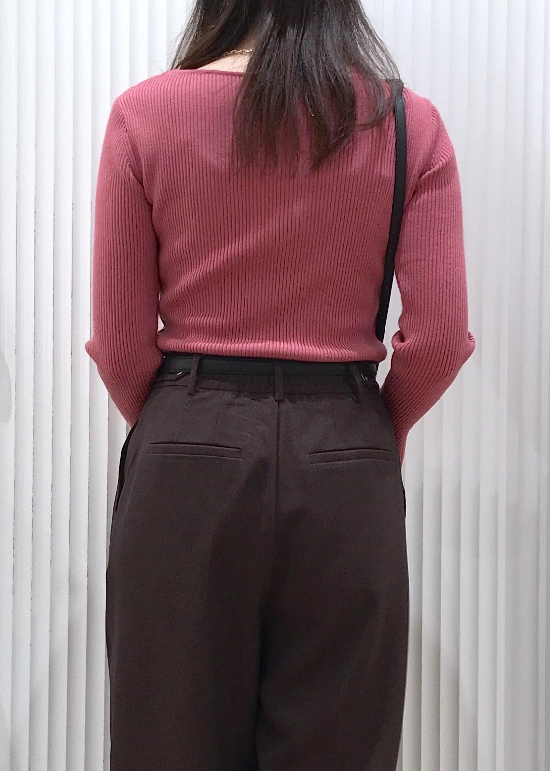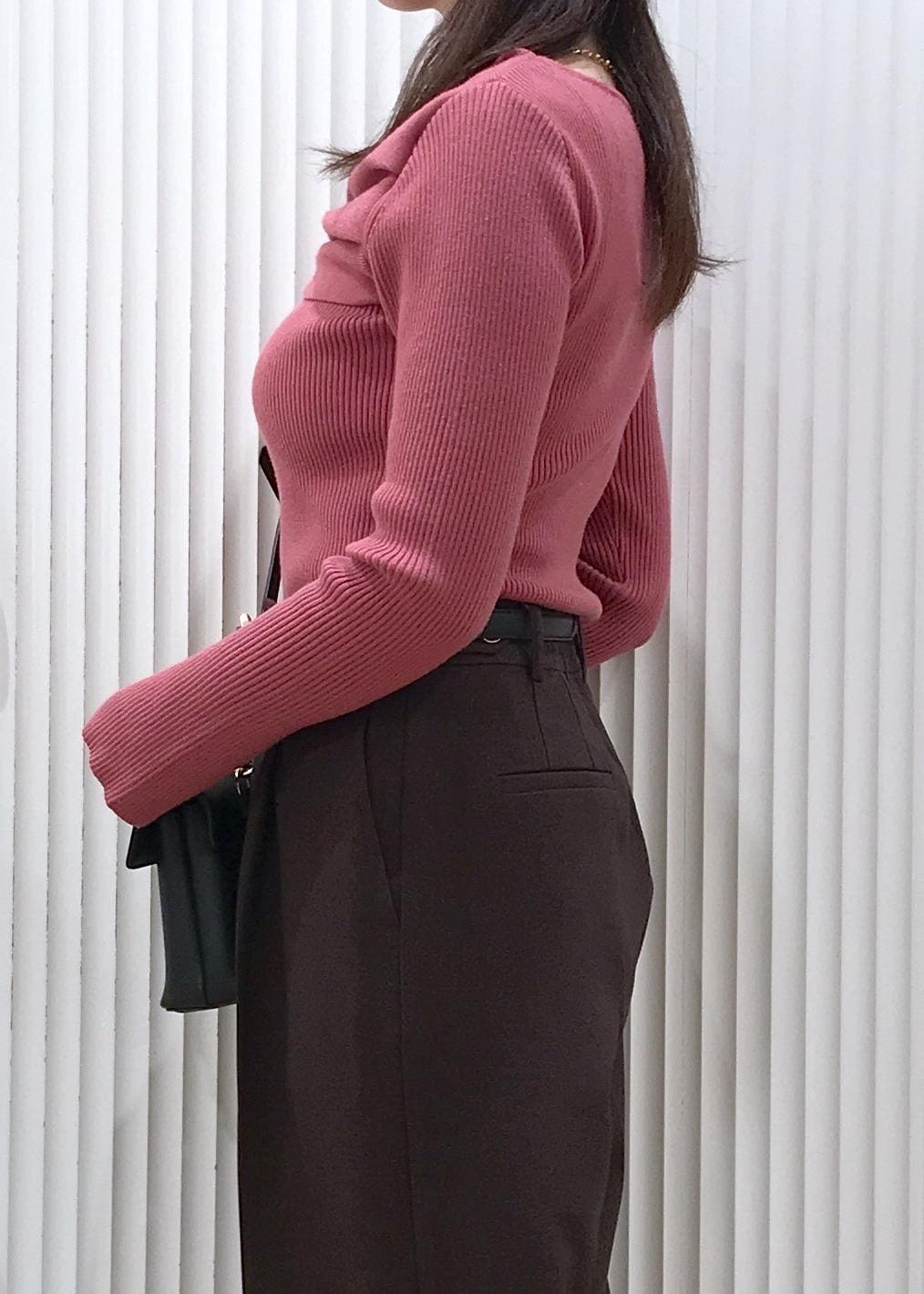 身体のラインは拾いますが、伸縮性があるニットなので苦しくなく、スッキリしたシルエットで着用出来ます。 -