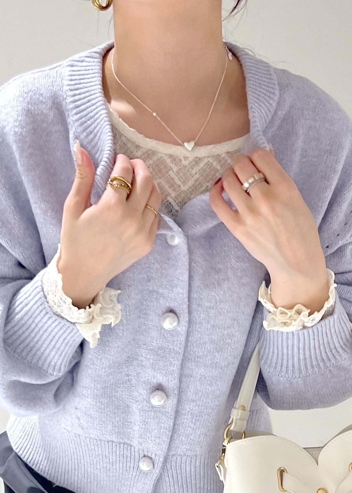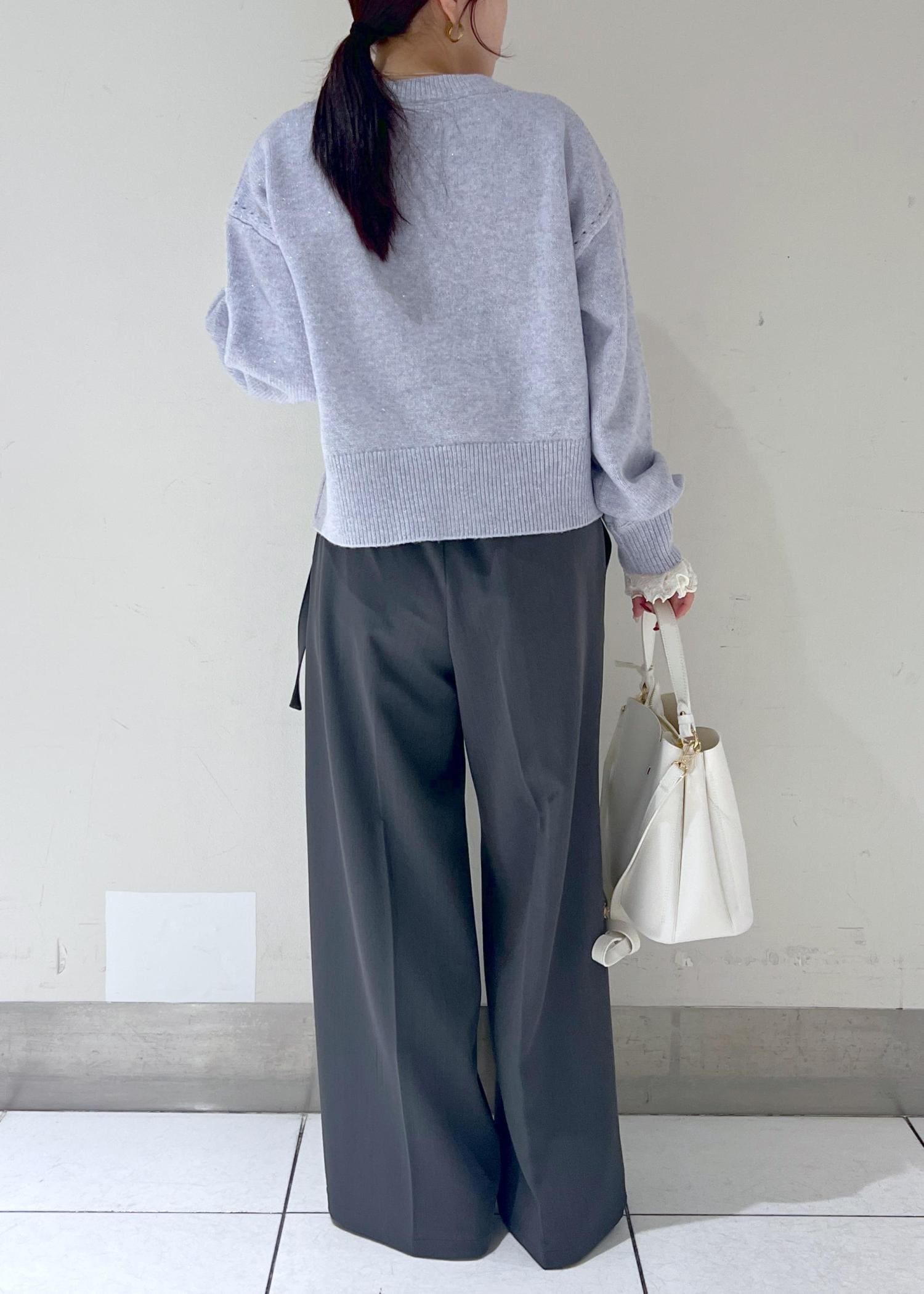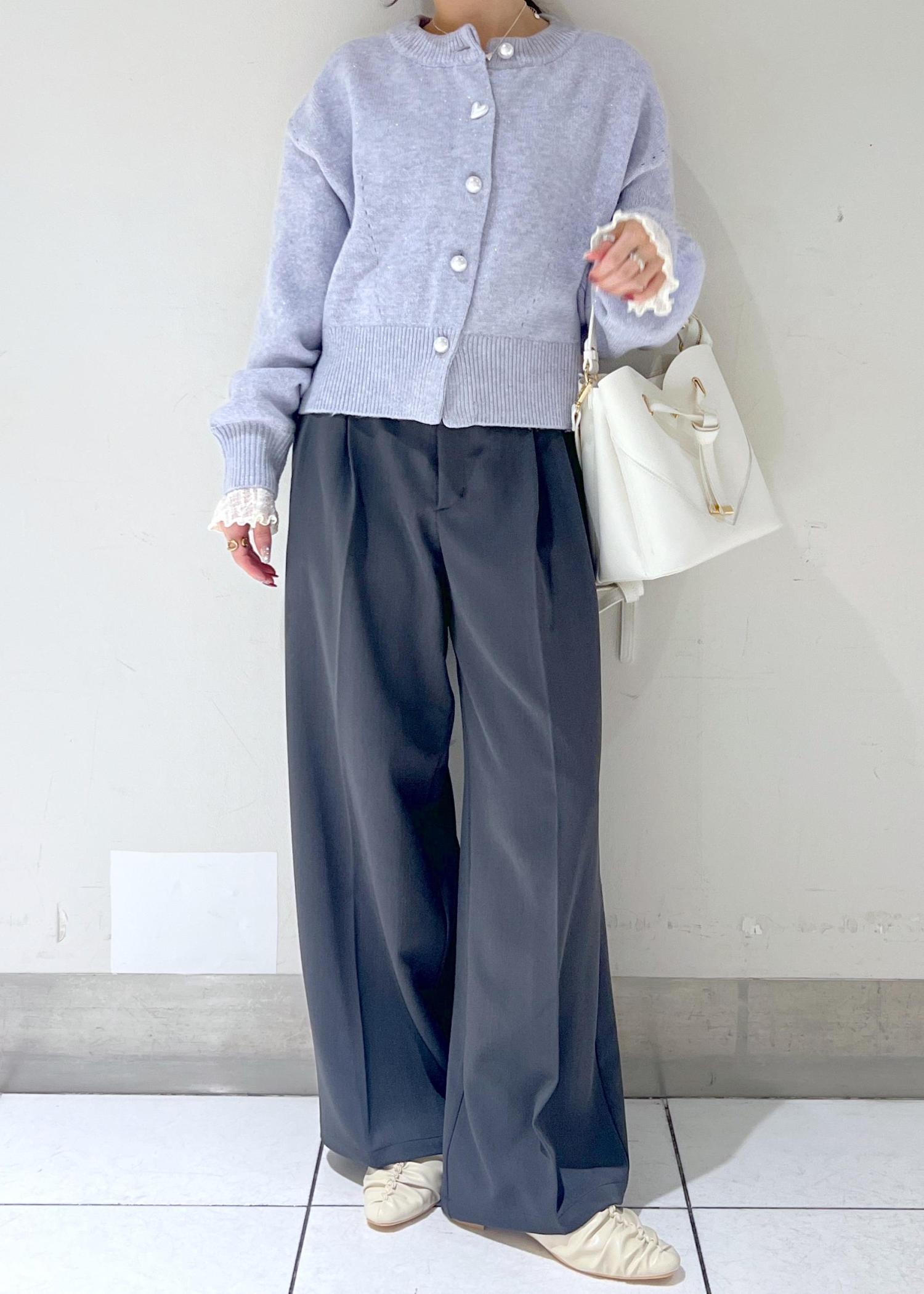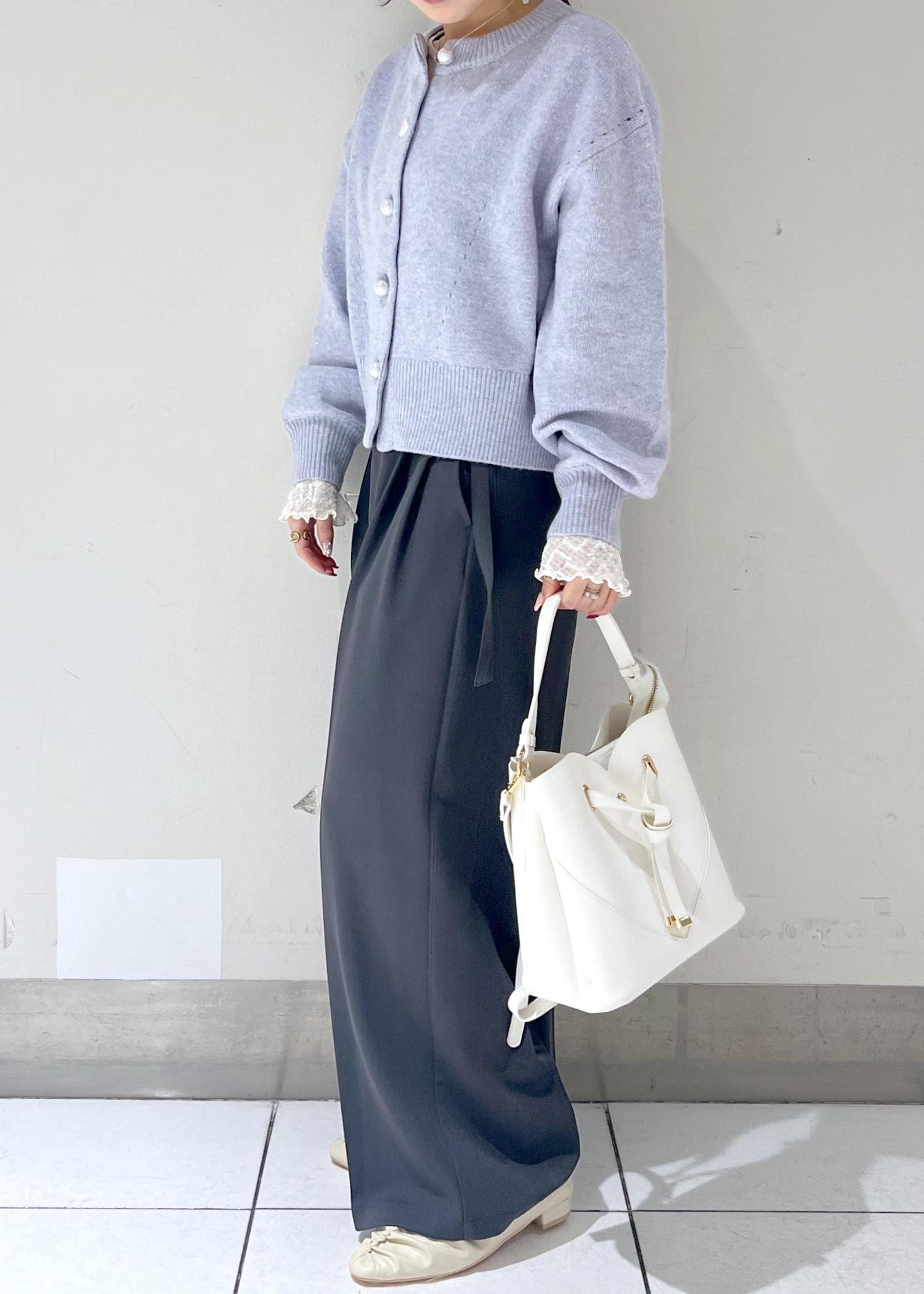 レースのインナーを入れるとプライベート感も出せて、レースを抜いてカーディガンを一枚で着るとオフィスにも着れそうです◎