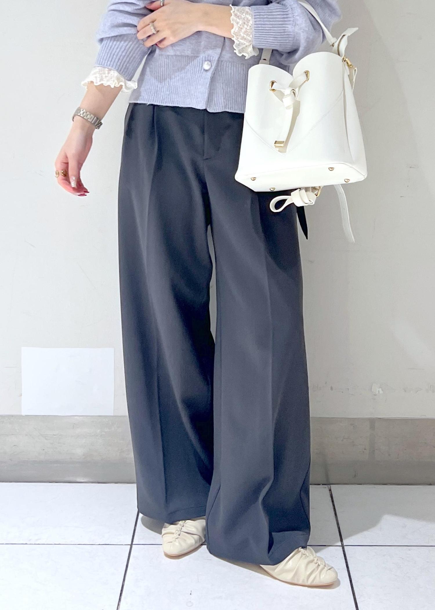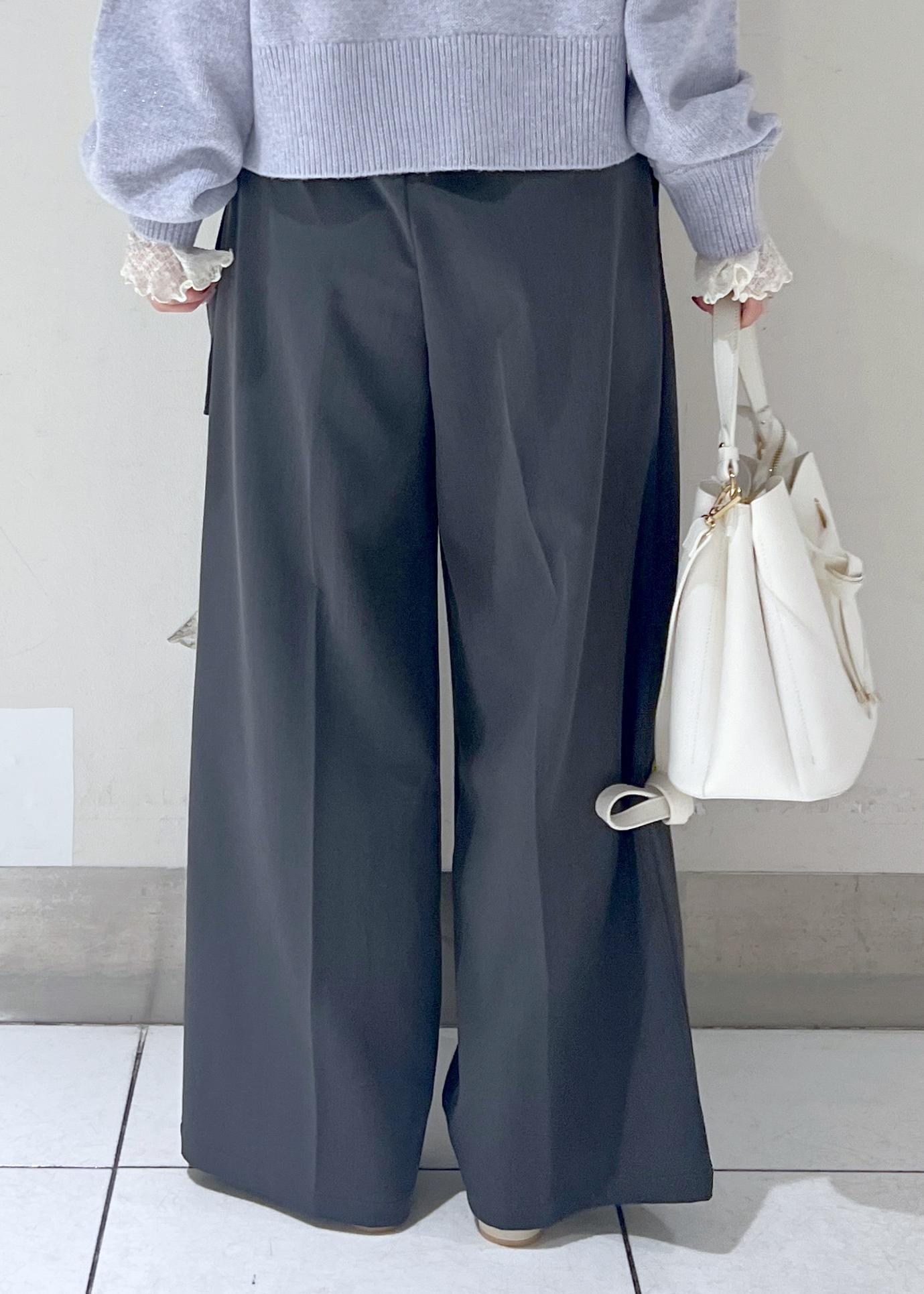 VISベルトディテールタックワイドパンツ/イージーケアチャコール / S¥6,589レビュー152cmでSサイズ着用です!