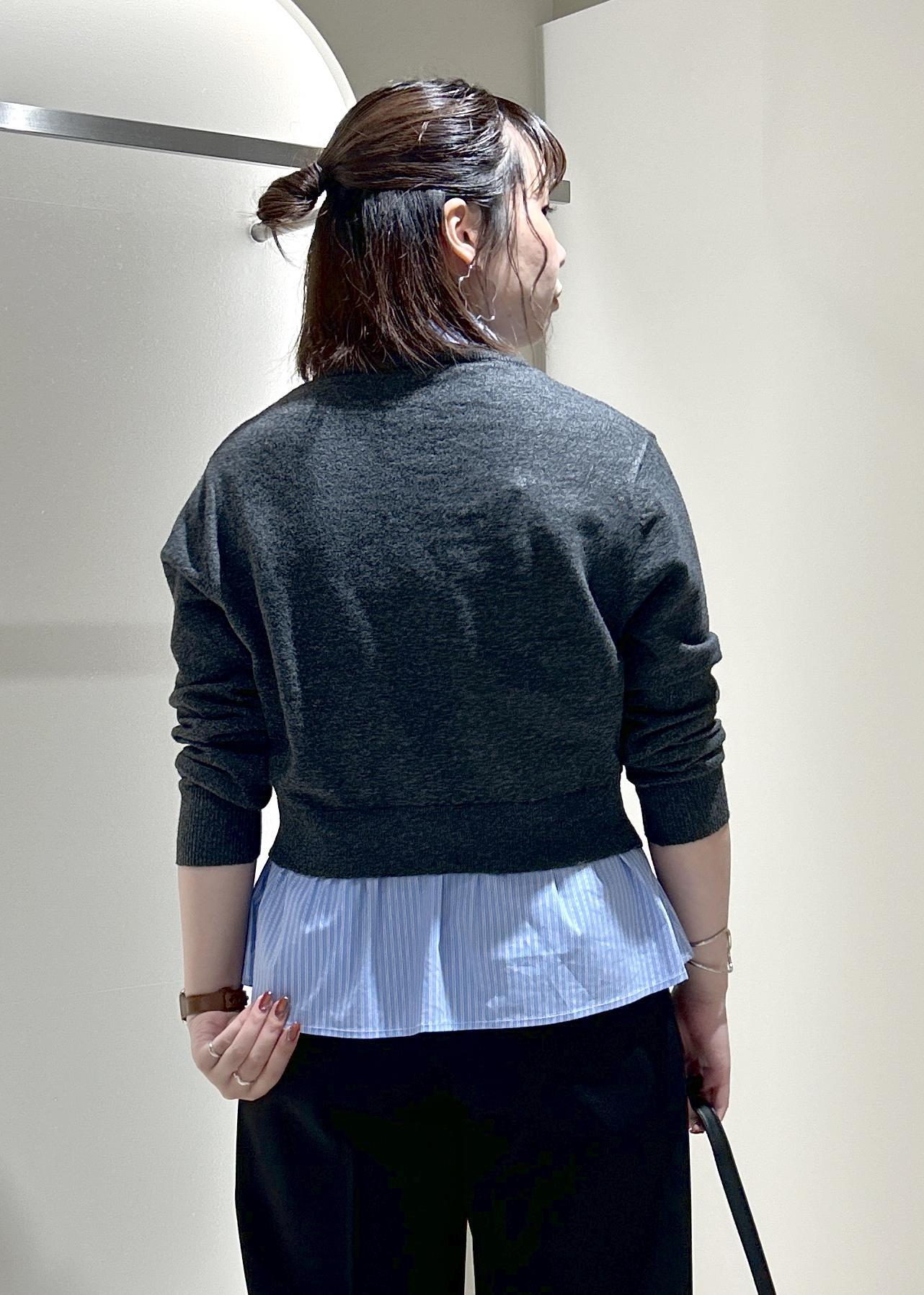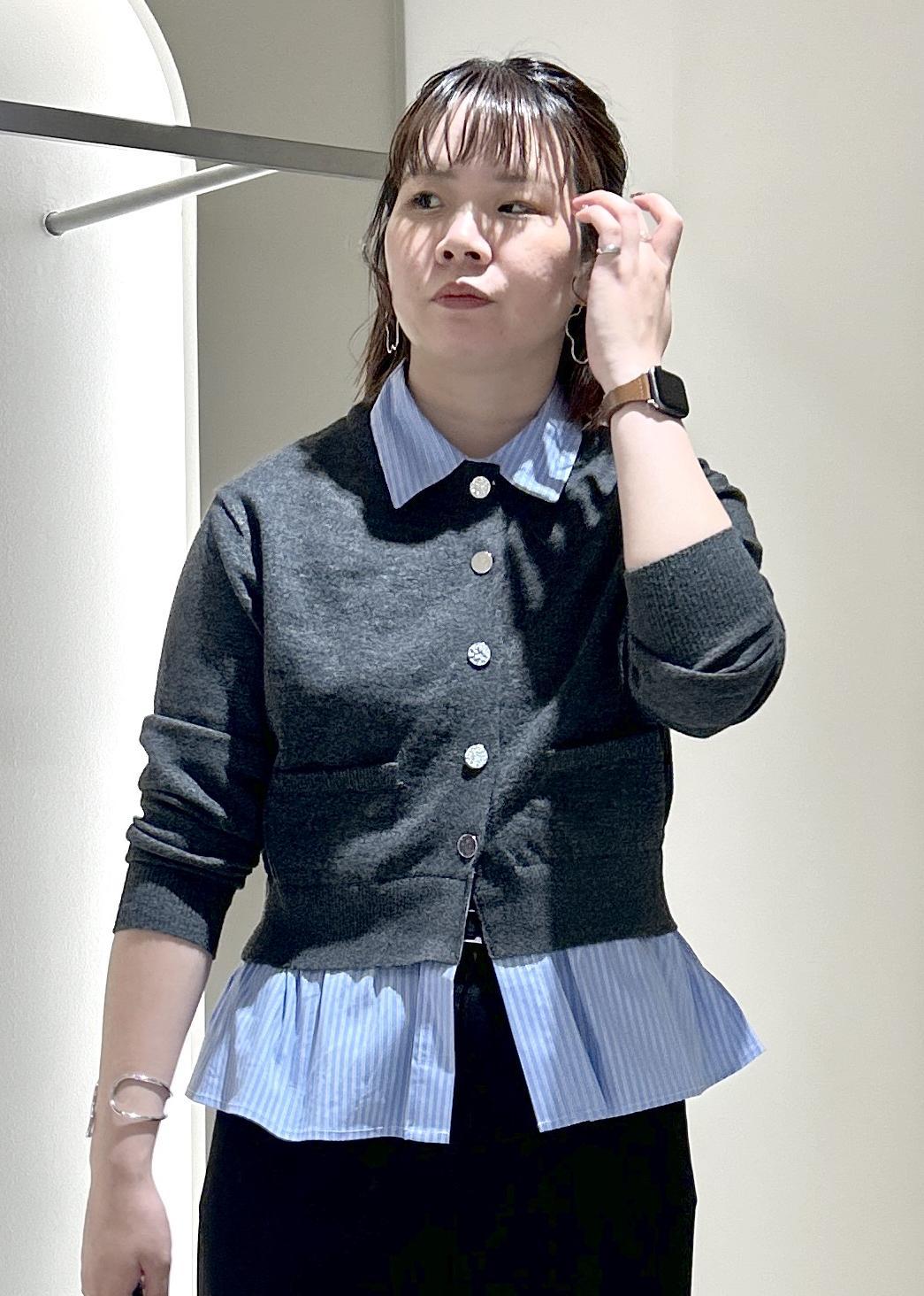 VISシャツレイヤード風メタルボタンカーディガンチャコール / F¥6,589レビュー163cmでシャツ裾がお尻半分くらい隠れる着丈です。
