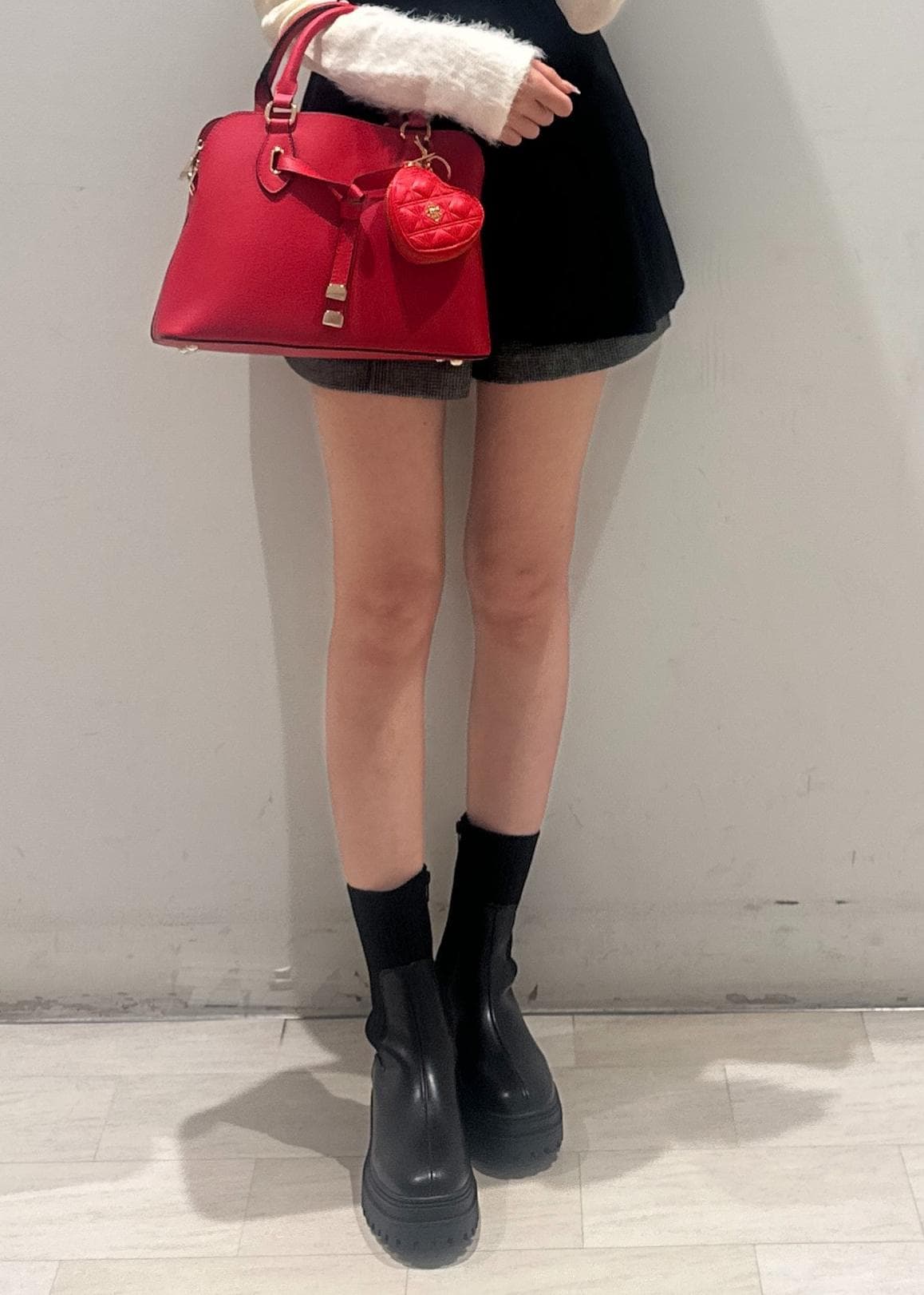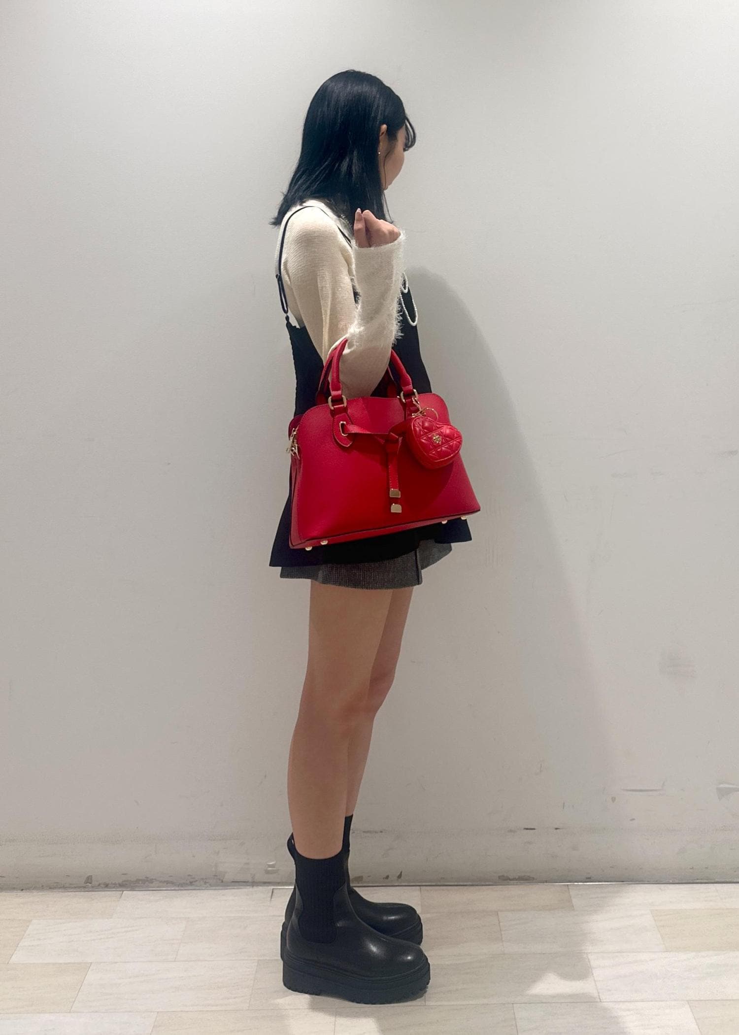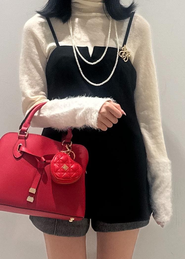 VISハートキルティングポーチチャームレッド / F¥3,949レビュー中心にあるメタルロゴと型押しデザインが魅力的で、高級感を演出。