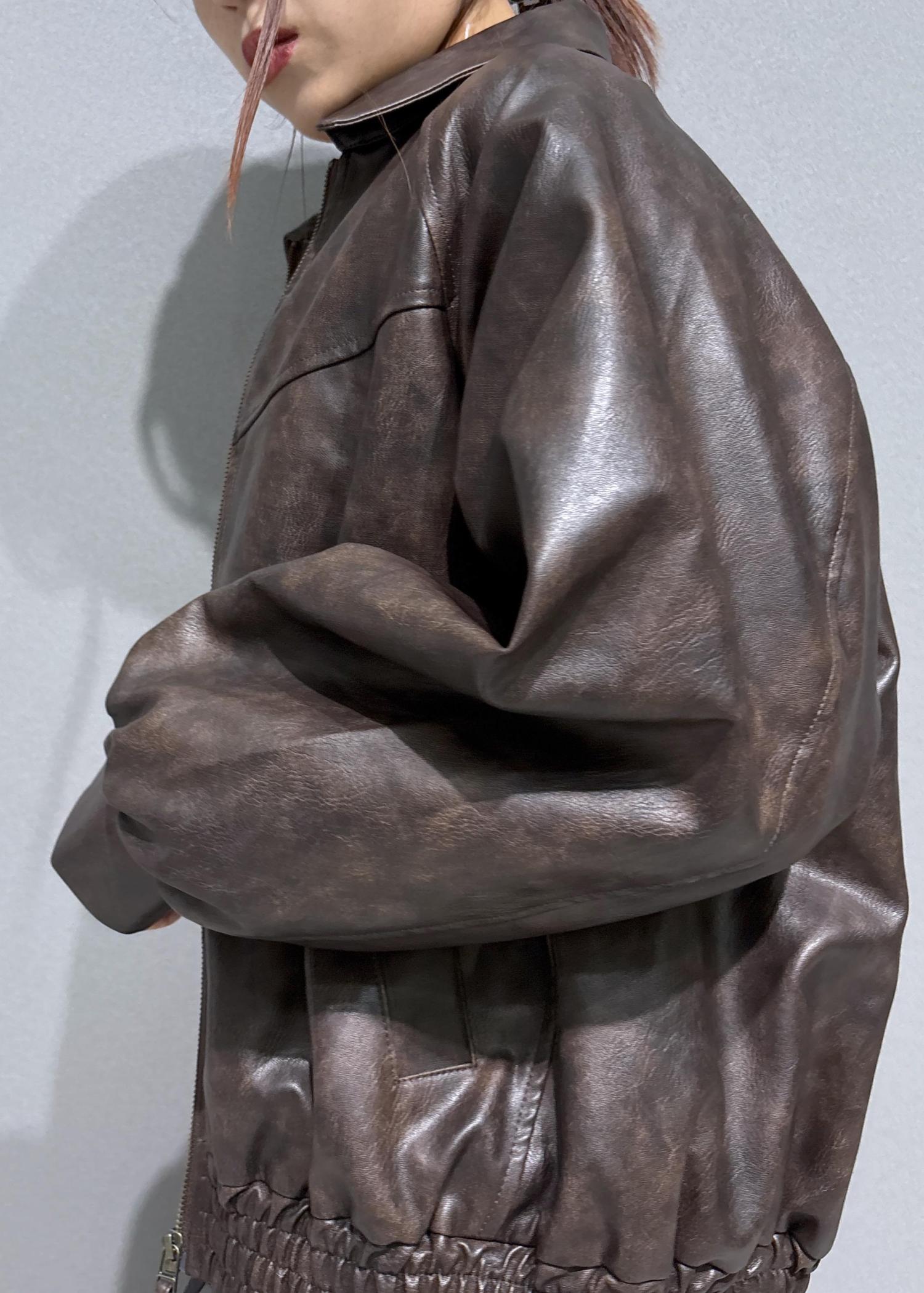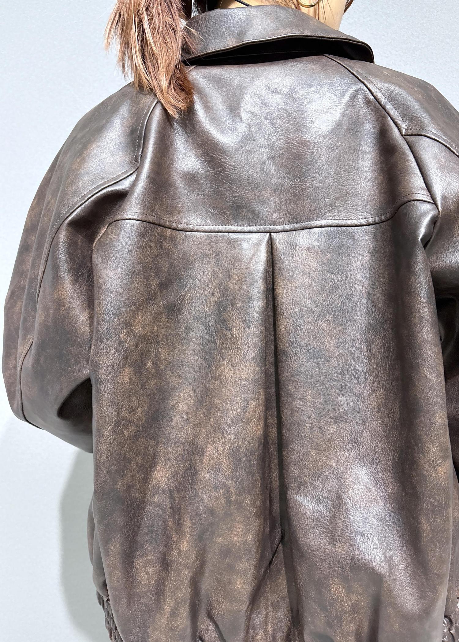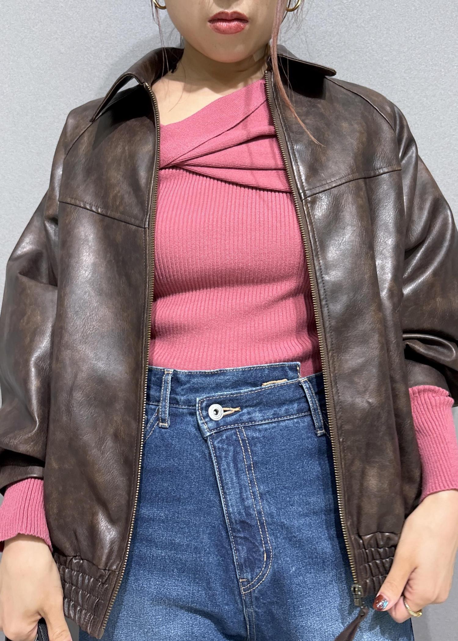 VIS合皮&スエードライクジップアップブルゾンダークブラウン系 / F¥10,989レビューかなりゆったりめのサイズ感。