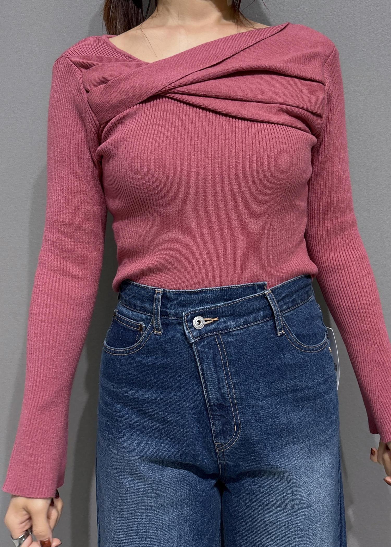 VISアシメねじれデザインリブニットローズピンク / F¥5,489レビュー柔らかくて伸縮性が◎