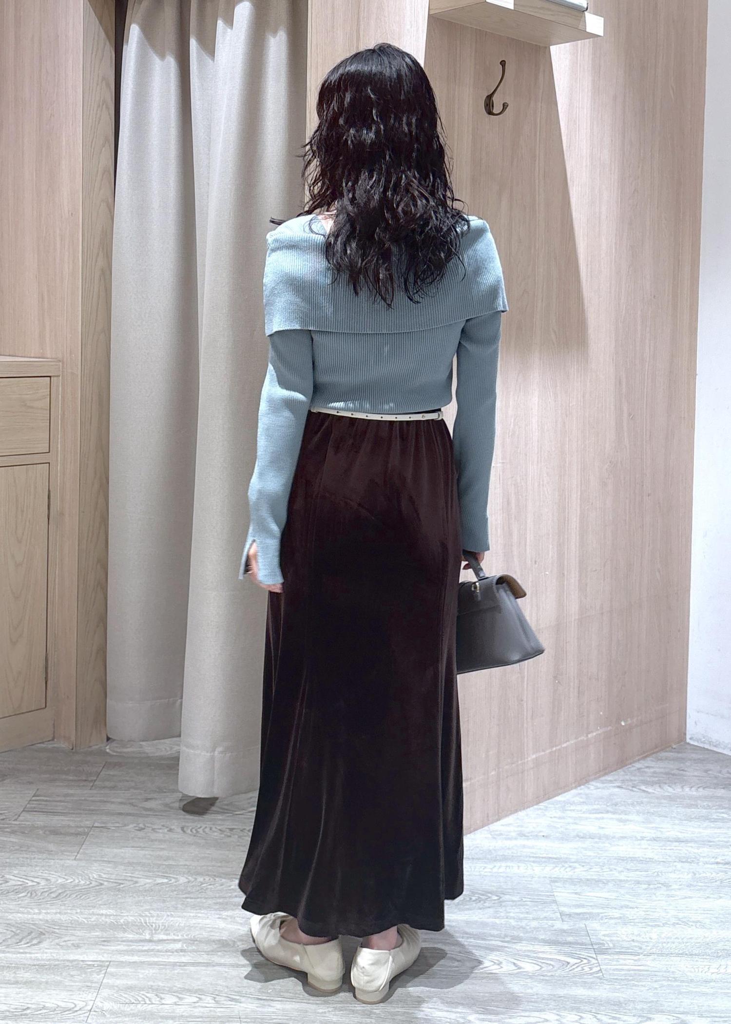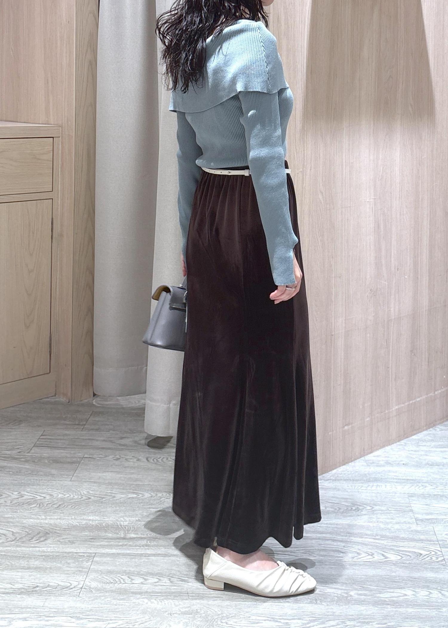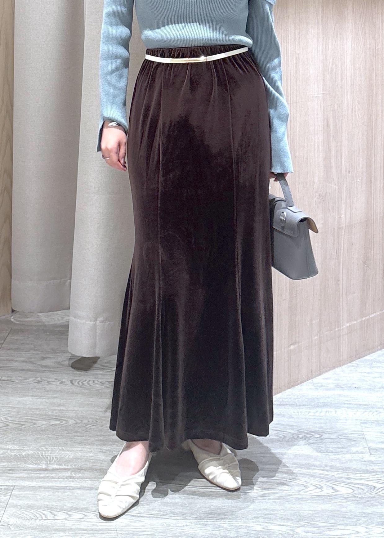 VISベロアナロースカートダークブラウン / S¥6,589レビューベロア素材でマーメイドシルエットが女性らしいシルエットのスカートです。ウエストはぴったり目ですがゴムなので問題なく着用できます◎