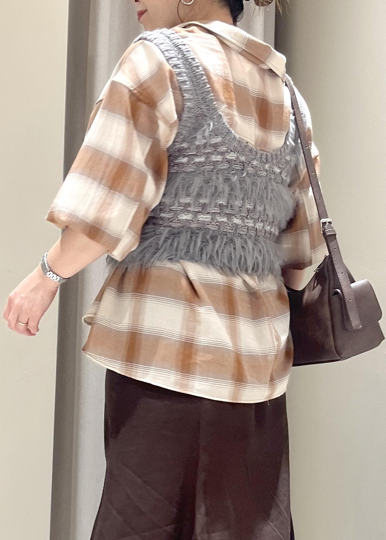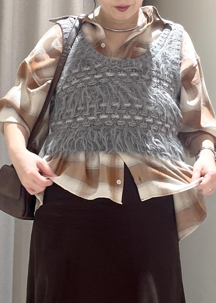 VISフェザーツイードニットビスチェ/2WAYグレー / F¥5,489レビューニット素材なので柔らかく、伸縮するので着脱もラクなベストです。