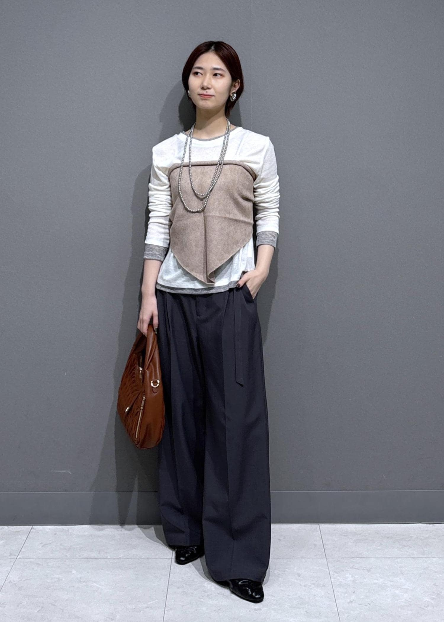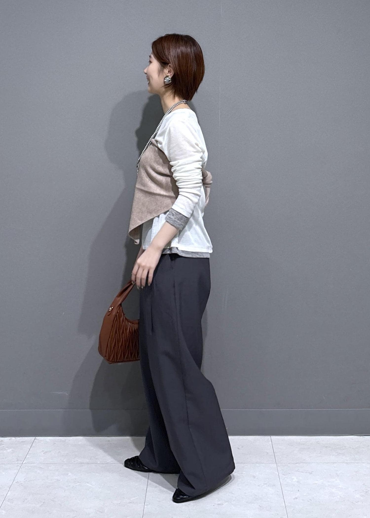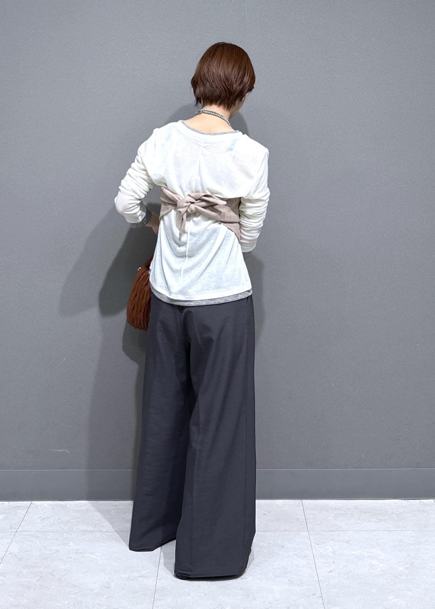 ワイドパンツでも広がりすぎないのでスッキリと見えます。 -