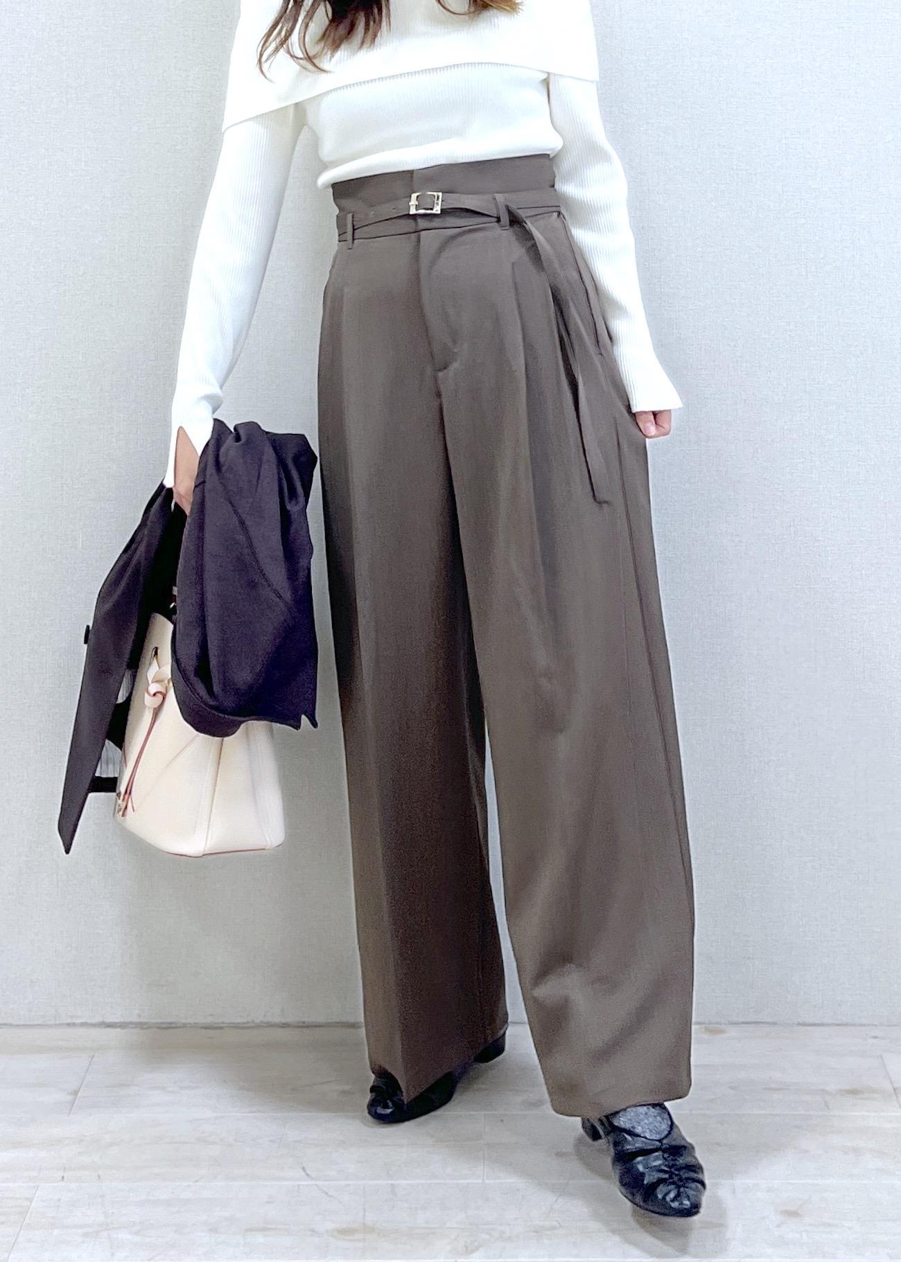 VISベルトディテールタックワイドパンツ/イージーケアブラウン / S¥6,589レビュー152cmでSサイズ着用し、着丈はペタンコ靴でも床につきませんでした。お直しいらずのパンツは低身長さんにはとっても嬉しいポイント。高めのウエスト位置で脚長効果抜群の美脚パンツ。人気アイテムのバージョンUPした秋冬版。やや光沢感のある高見えな素材でシワになりにくい素材も嬉しいです。