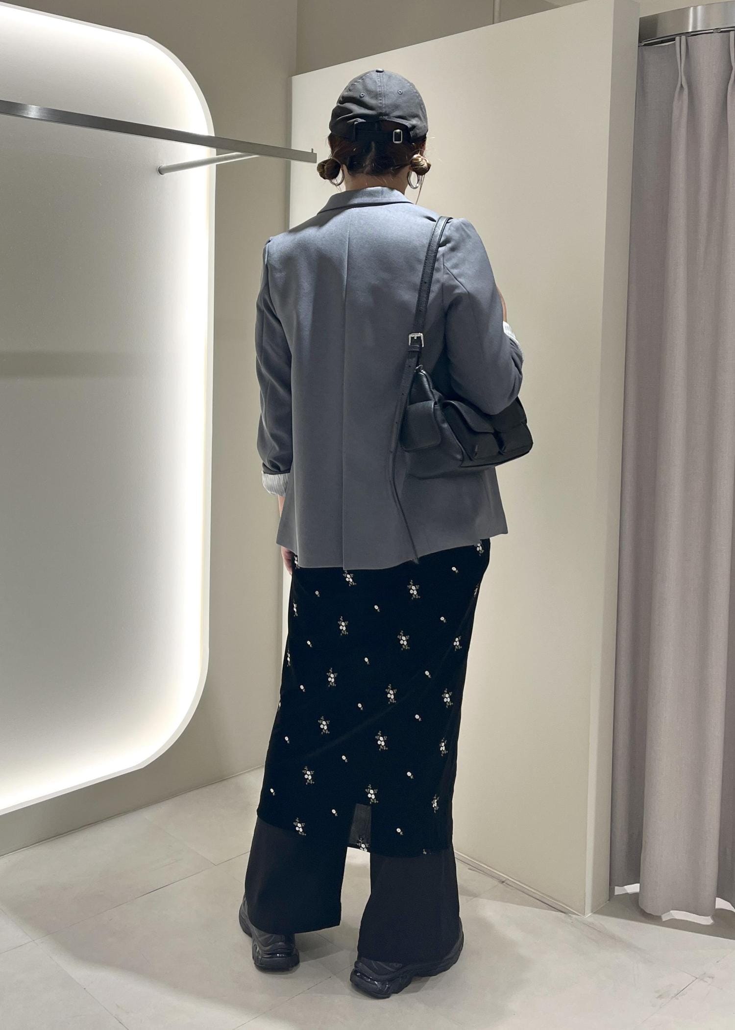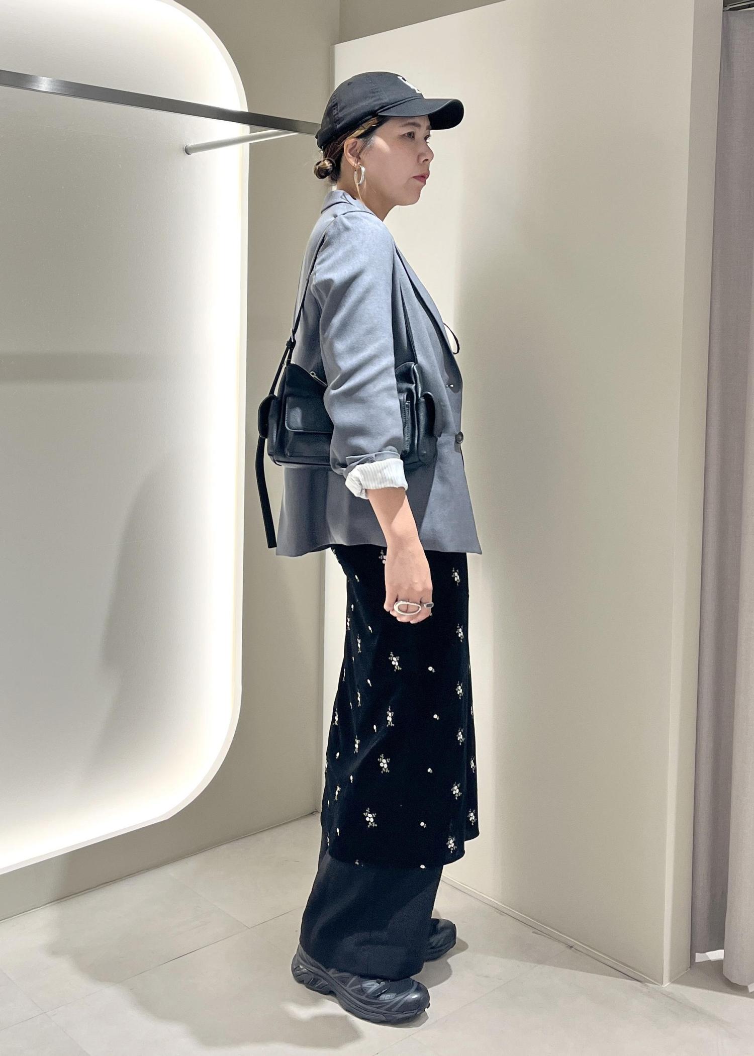 171cm/Lサイズ着用、腰位置での着用で足首が隠れる丈感があり高身長さんでも嬉しい着丈です。