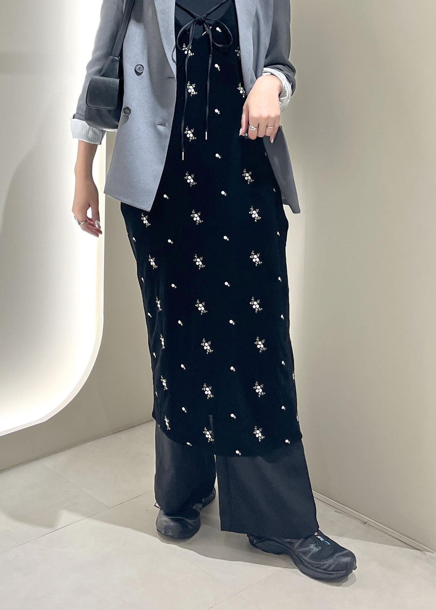 VIS刺繍アソートベロアキャミワンピース/2WAYブラック系 / F¥8,899レビューベロア素材がこの時期にぴったり!