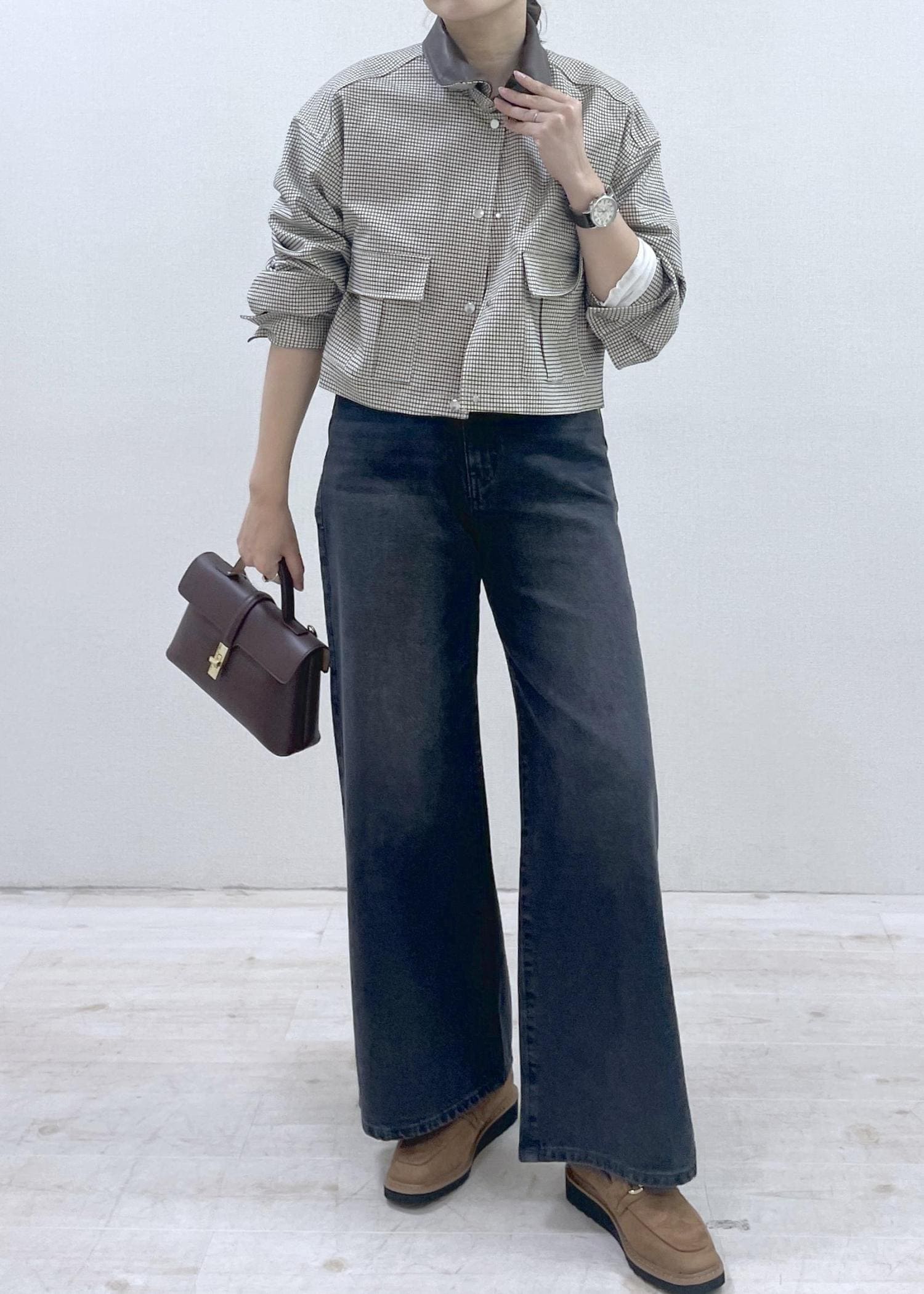 カジュアルときれいめの要素がどちらもあり、様々な系統で合わせやすいです。